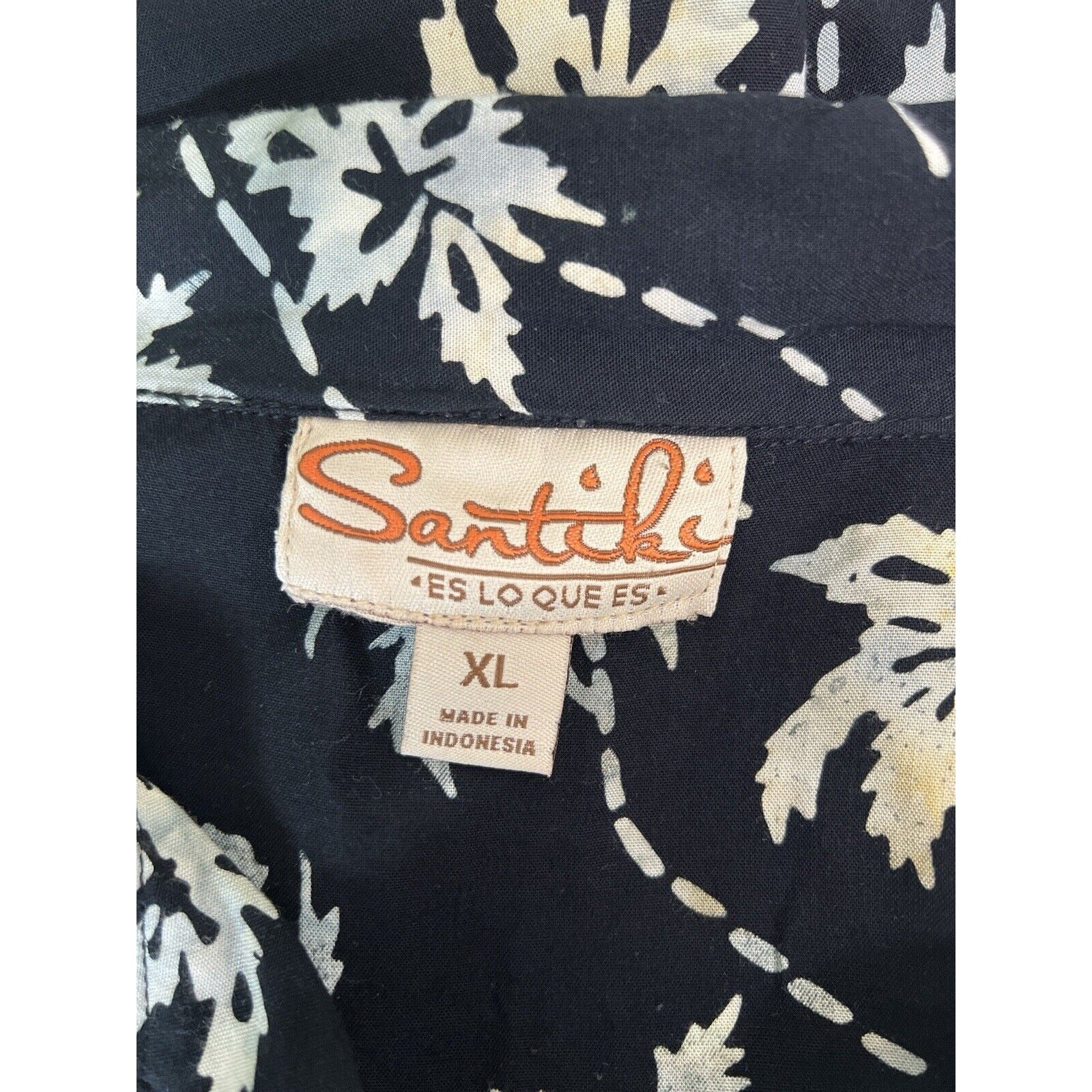 Santiki Es Lo Que Es Blue Hawaiian Tiki Shirt Short Sleeve Button Men’s Size XL