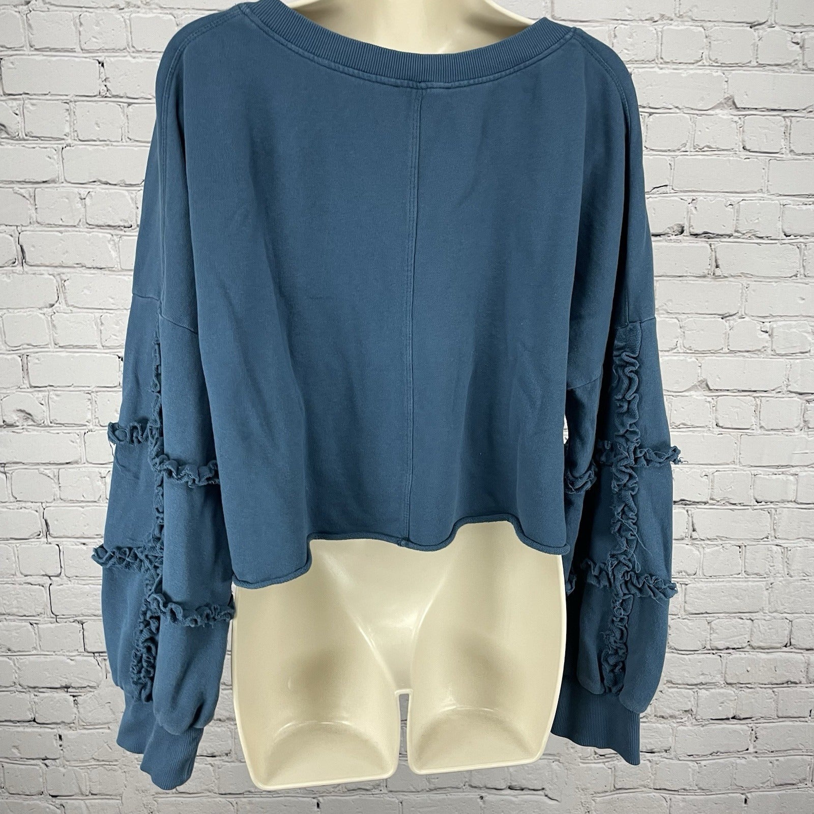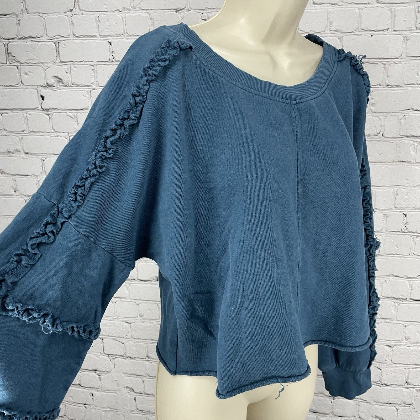 Saturday Sunday Anthropologie Blue Boxy Balloon Sleeve Sweatshirt Size Large L