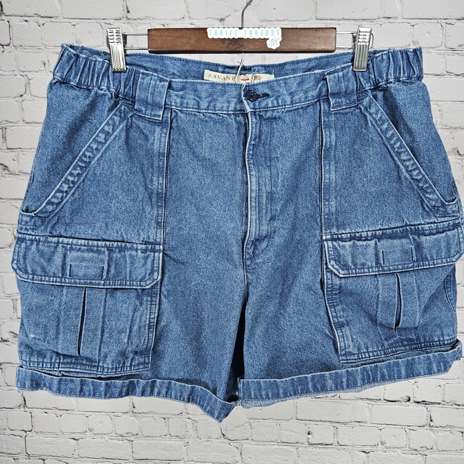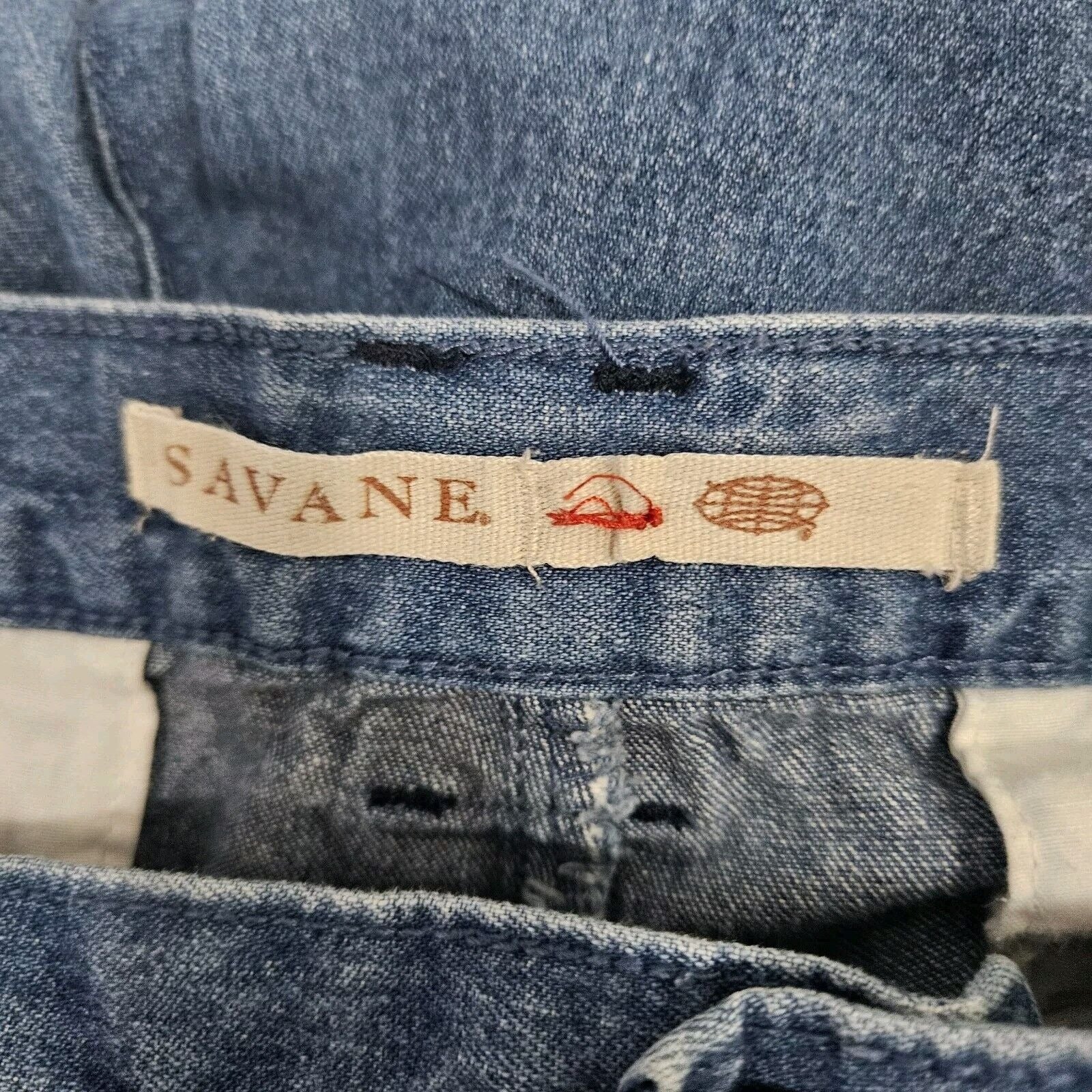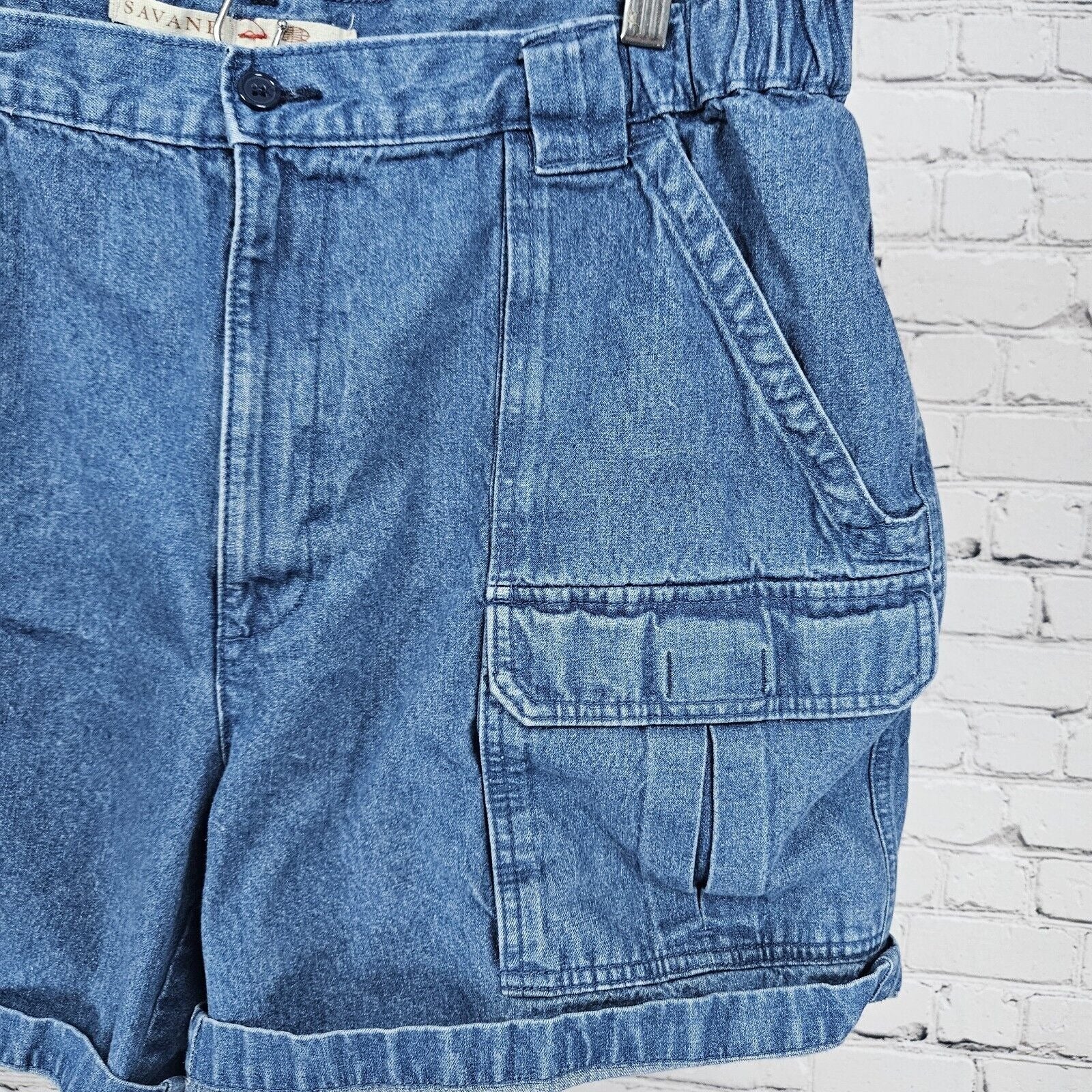 Savane Medium Light Wash High Rise Elastic Waist Wide Leg Mom Shorts Size 38 X 6