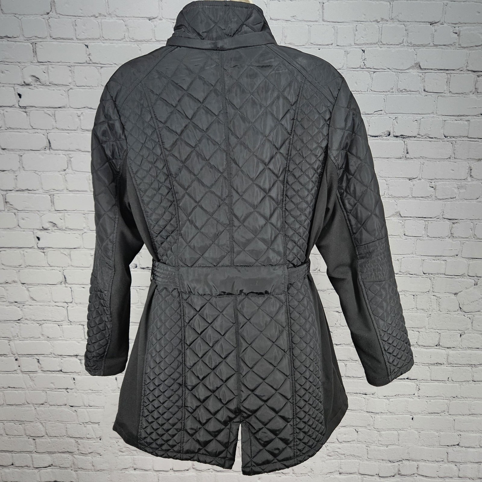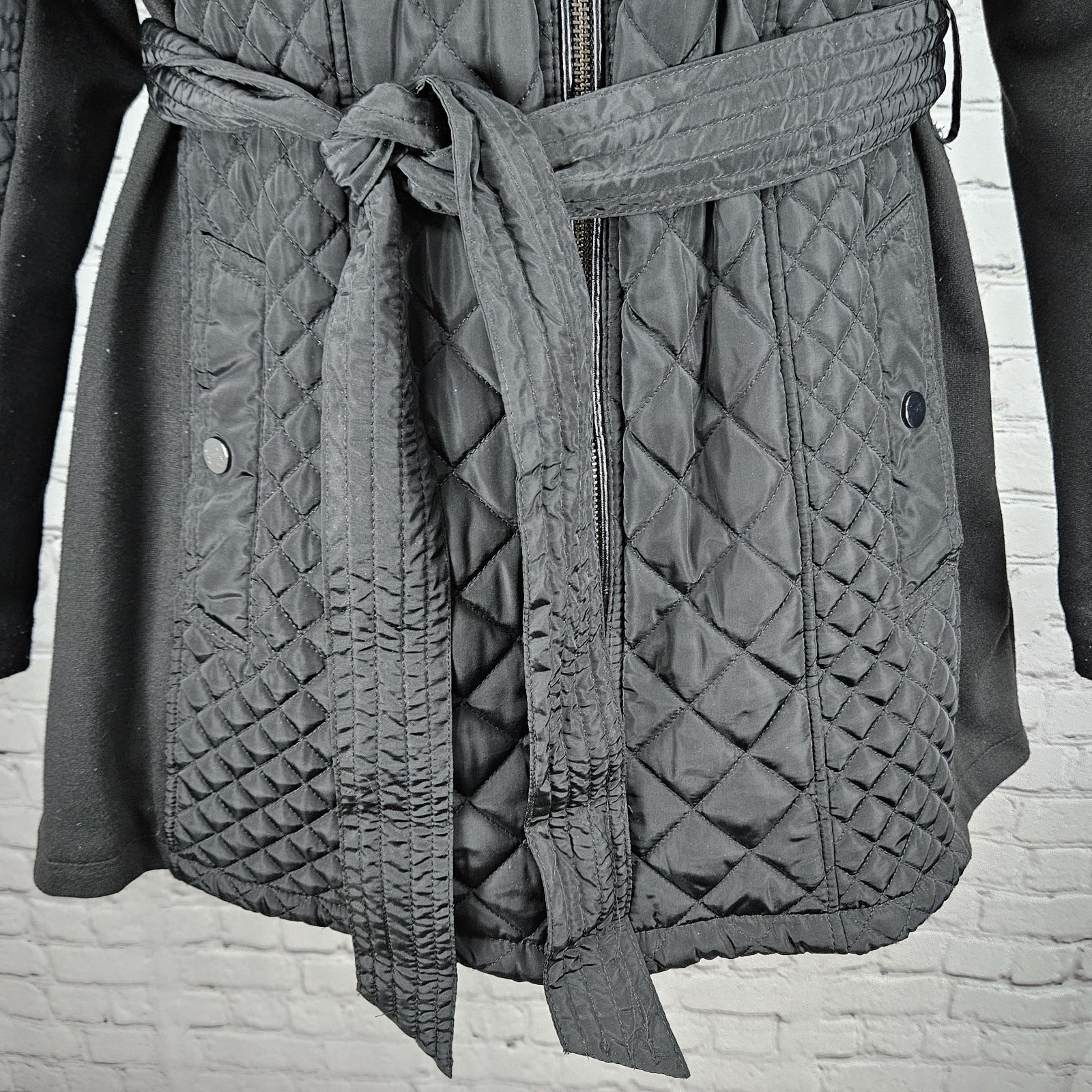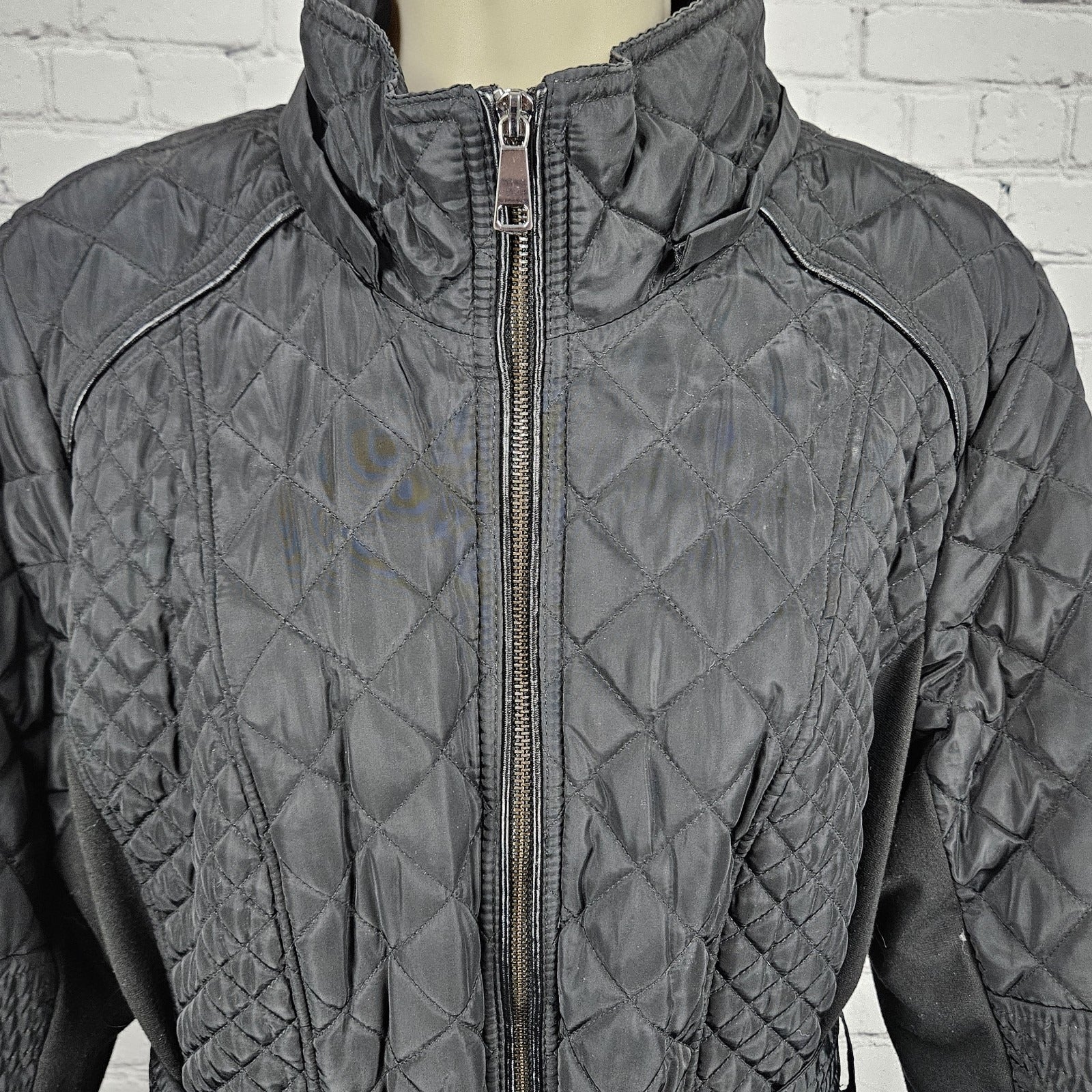 Sebby Collection Black Quilted Belted Stretch Knit Sides Insulated Jacket XL