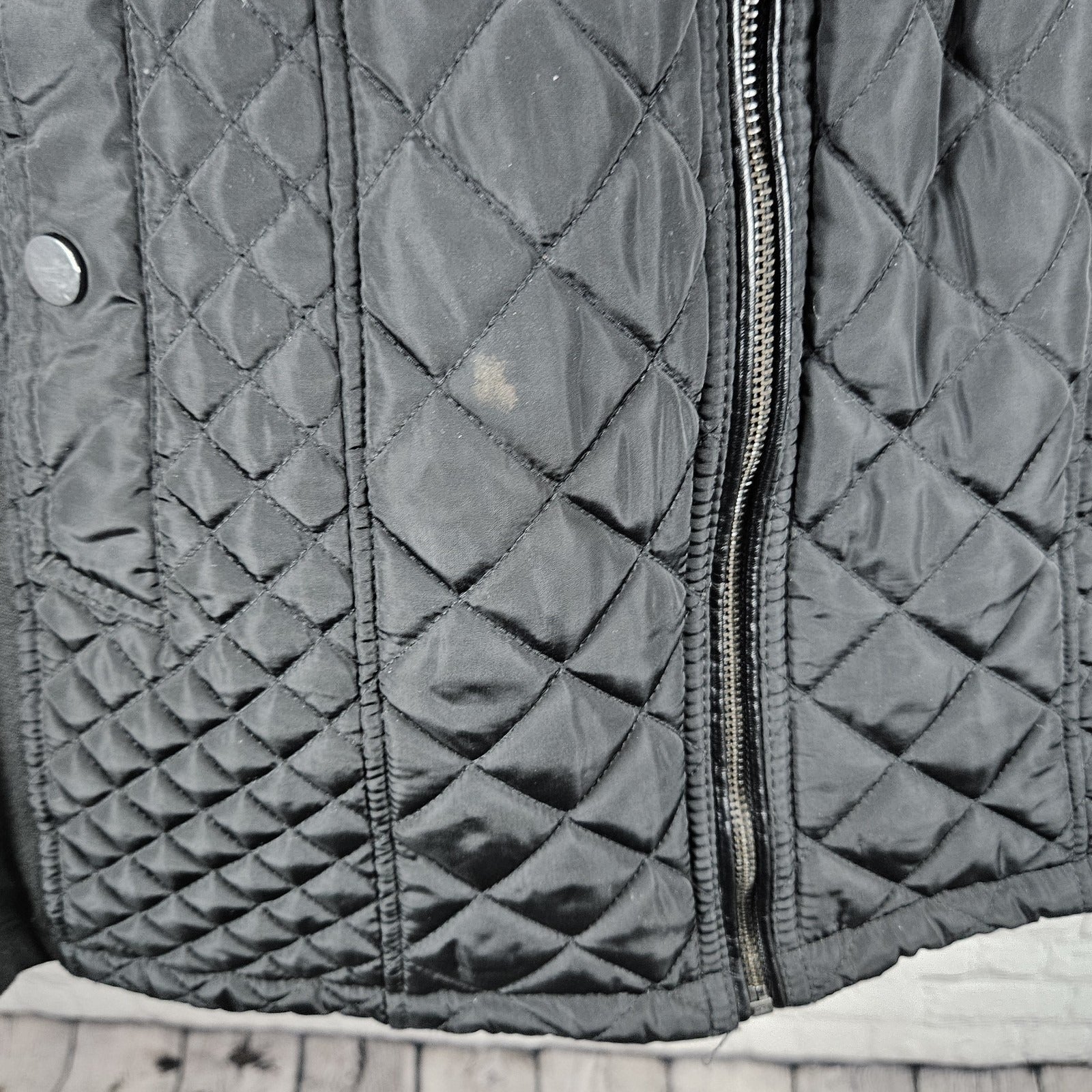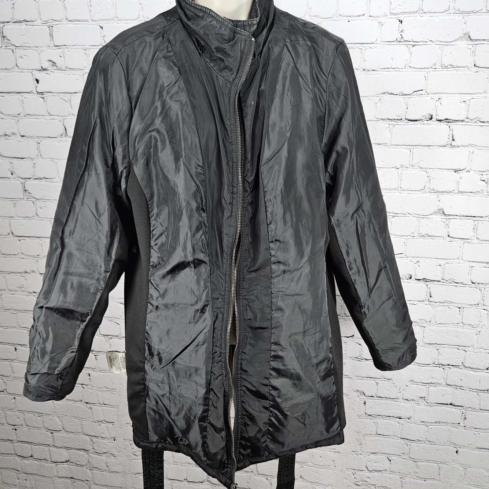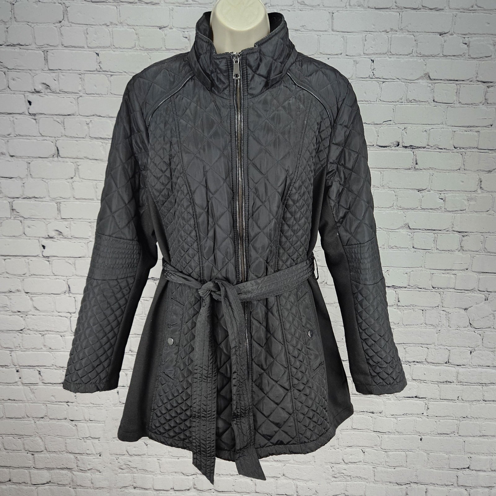 Sebby Collection Black Quilted Belted Stretch Knit Sides Insulated Jacket XL
