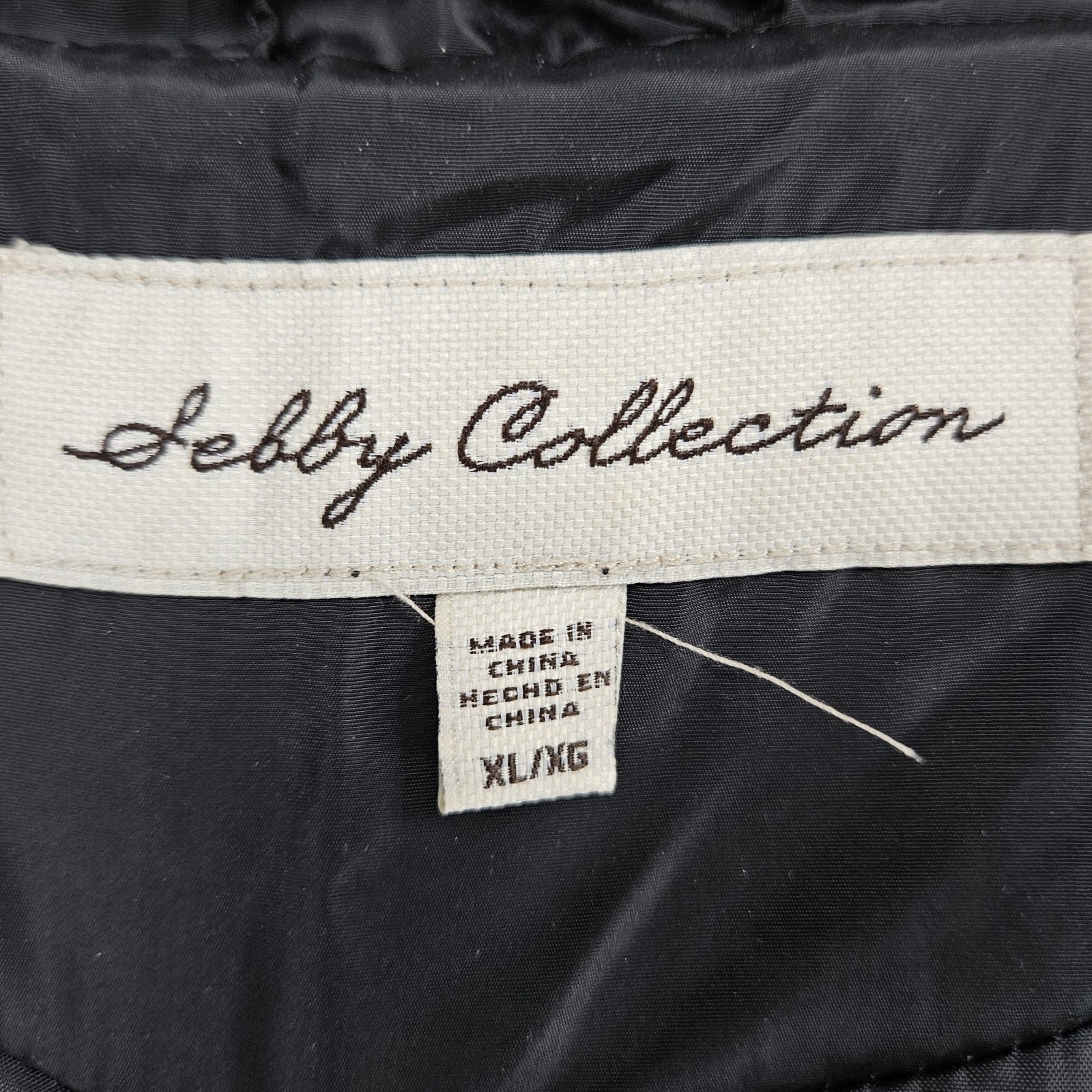 The Sebby Collection Black Quilted Belted Stretch Knit Sides Insulated Jacket in XL size is a stylish and versatile outerwear option for women. Made from polyester with quilted accents, this mid-length jacket features long sleeves, a zip closure, and is machine washable for easy care. Perfect for travel, casual outings, or workwear, this black jacket is lined, collared, belted, and has pockets for added functionality.