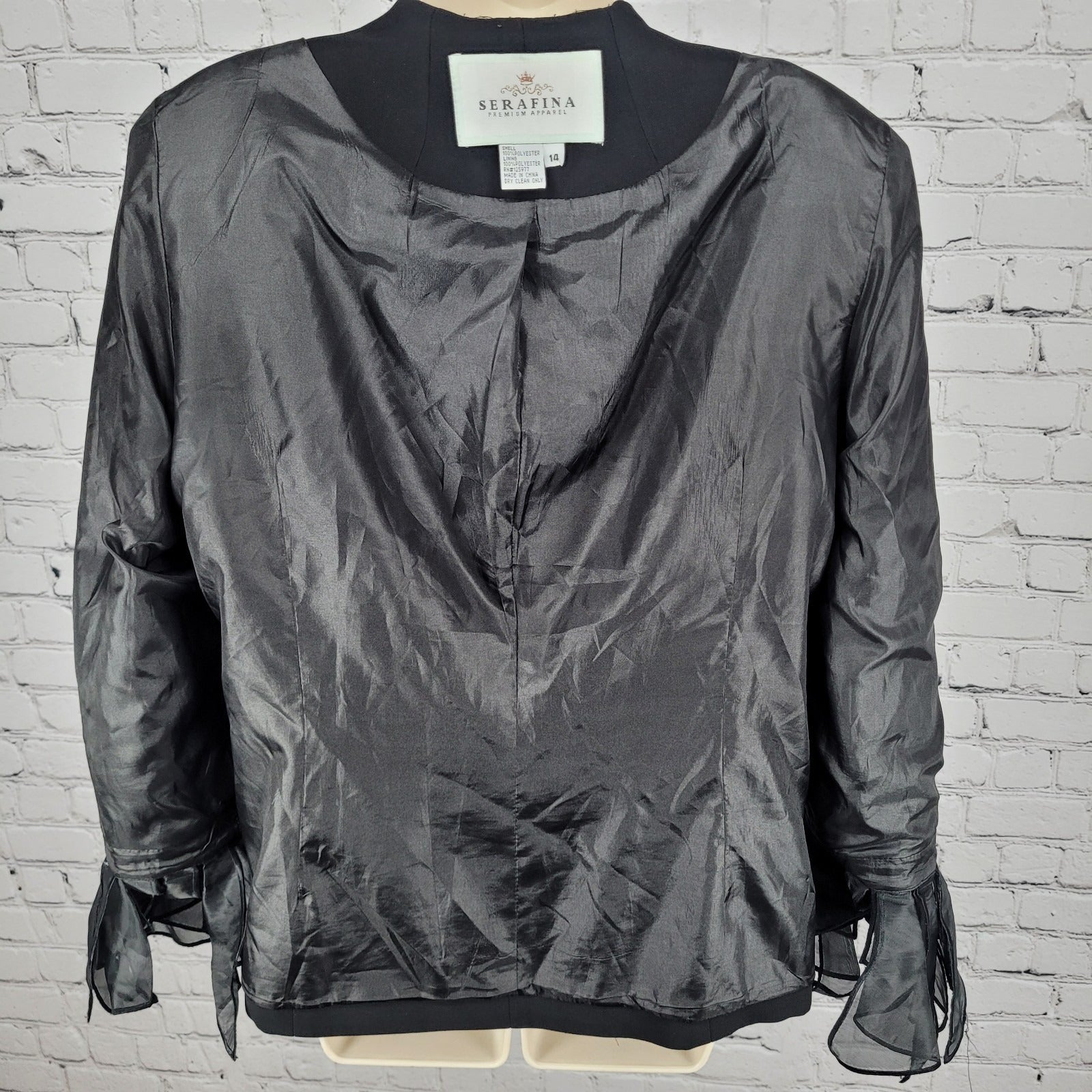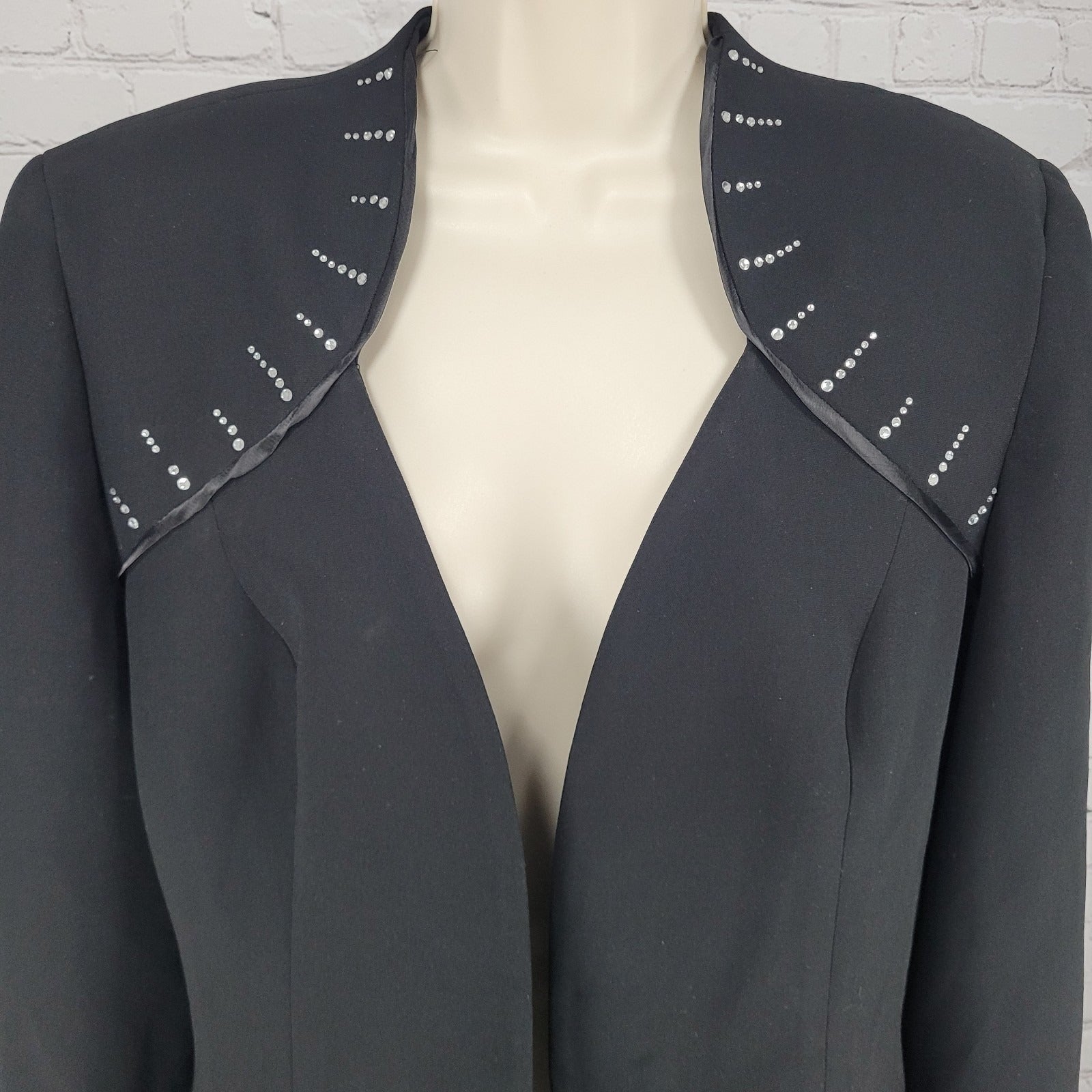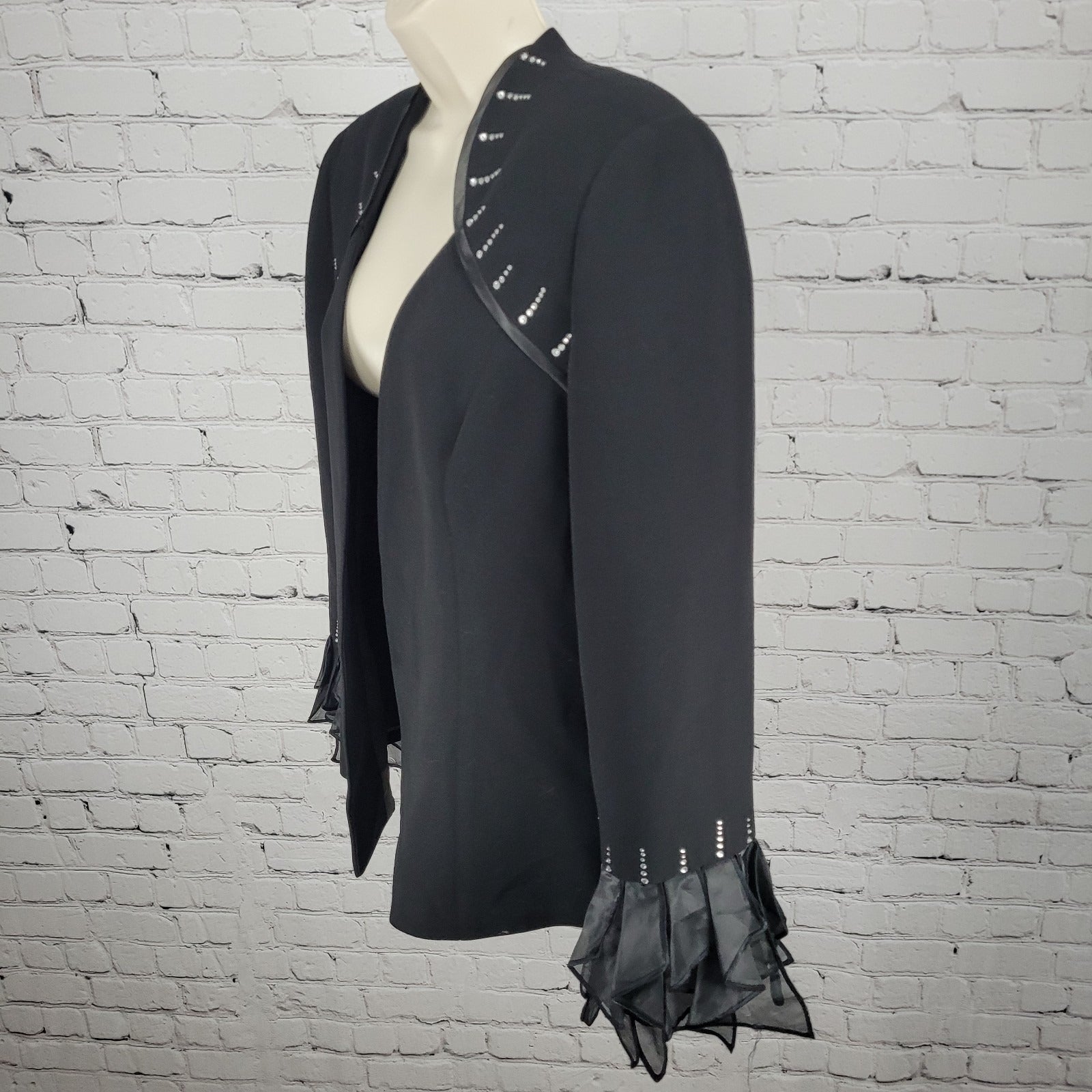 Serafina Black Open Rhinestone Ruffle Cuff Shoulder Pads Lined Jacket Size 14