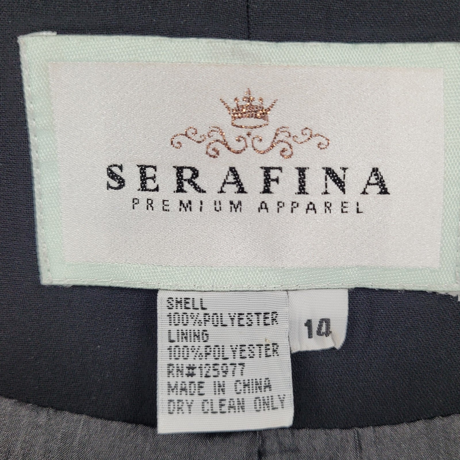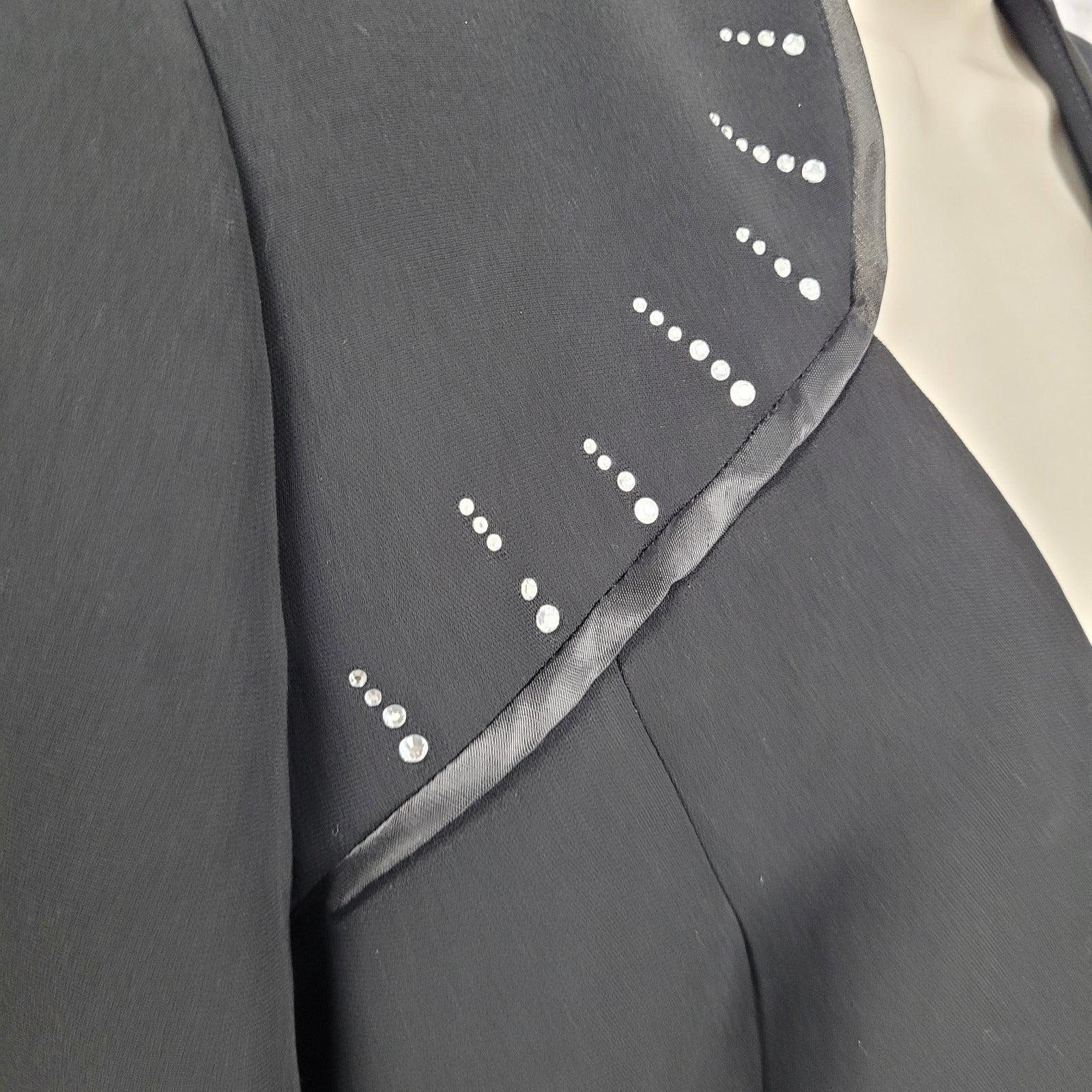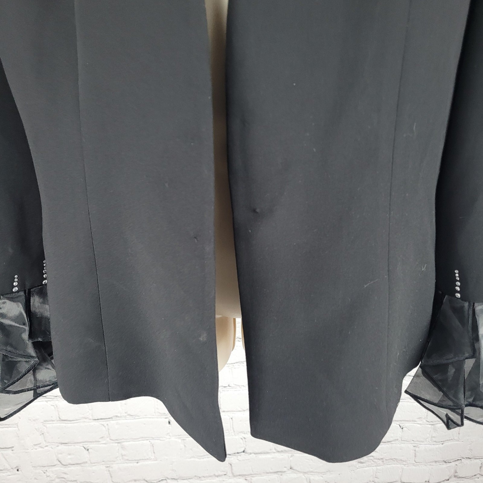 Serafina Black Open Rhinestone Ruffle Cuff Shoulder Pads Lined Jacket Size 14