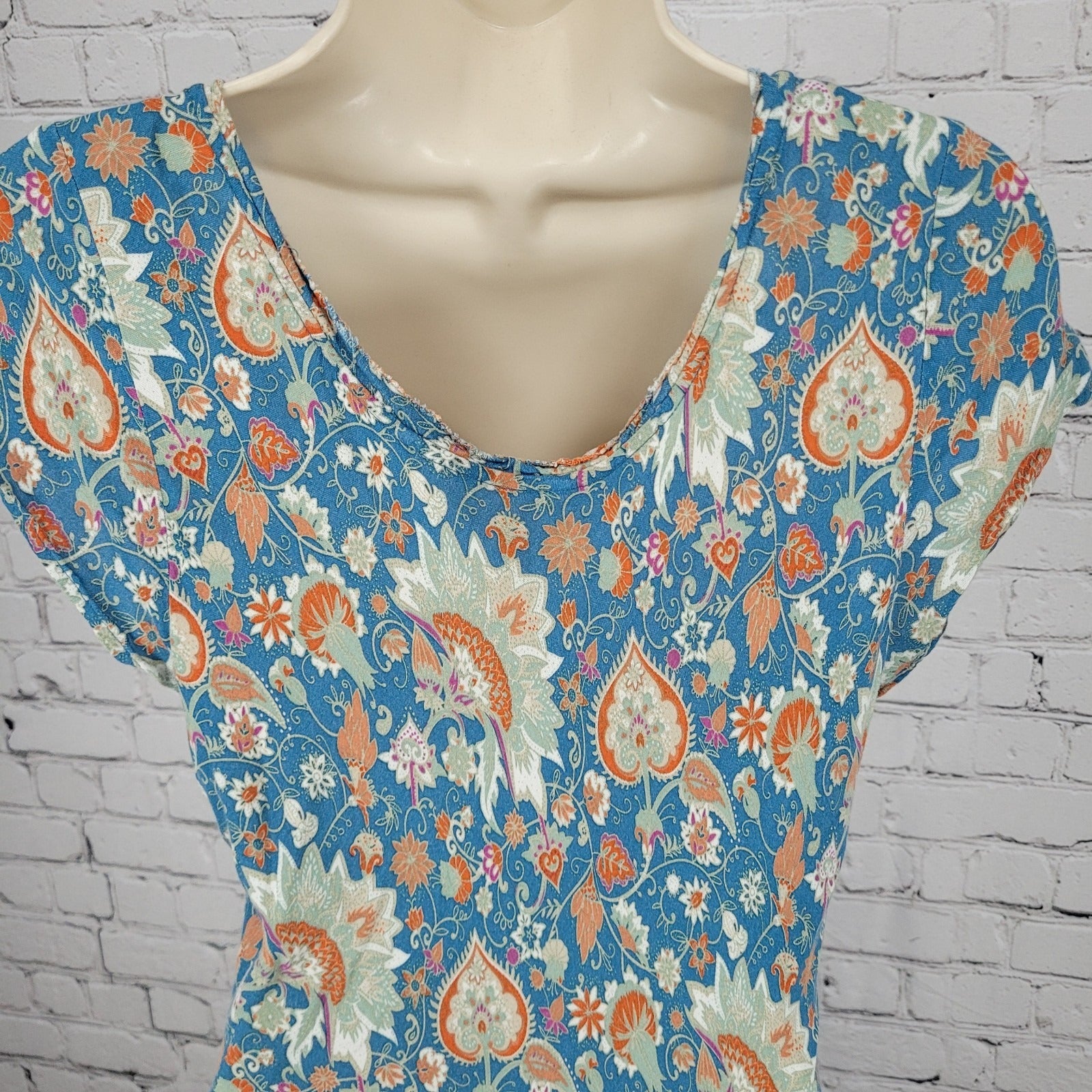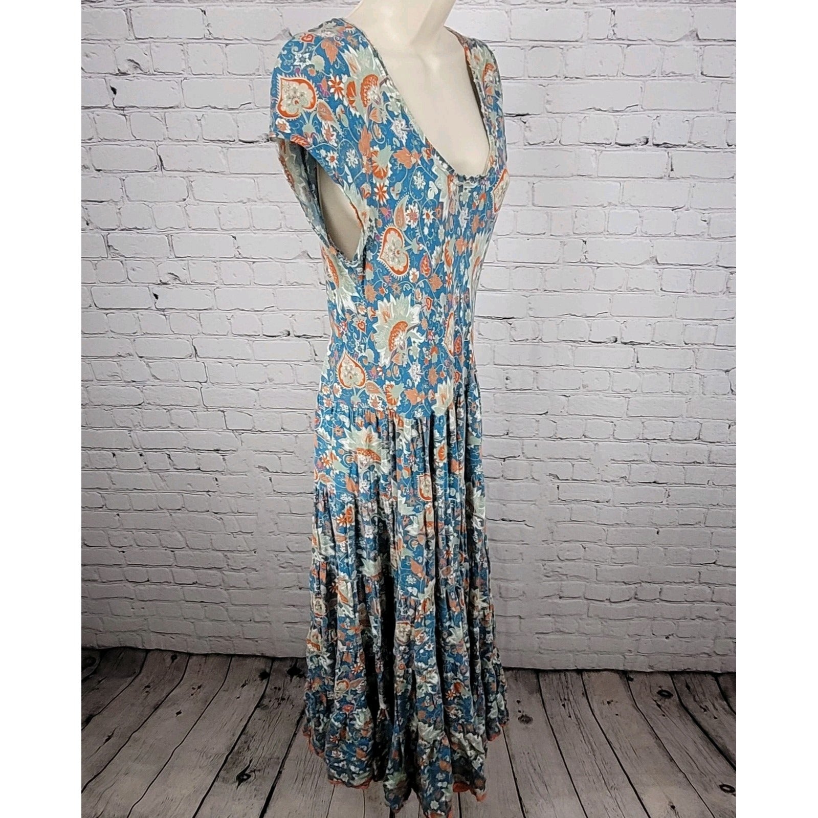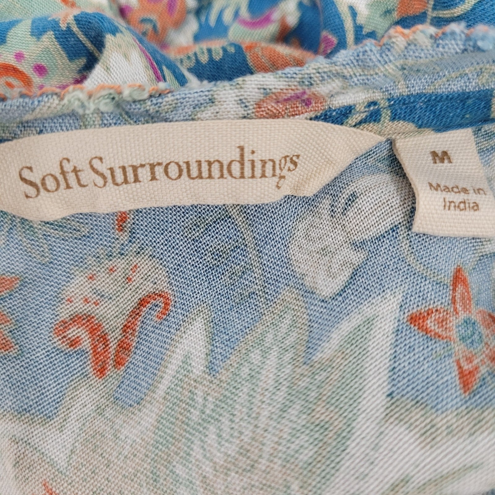 Soft Surroundings Blue Floral Short Sleeve Boho Maxi Dress Size Medium M