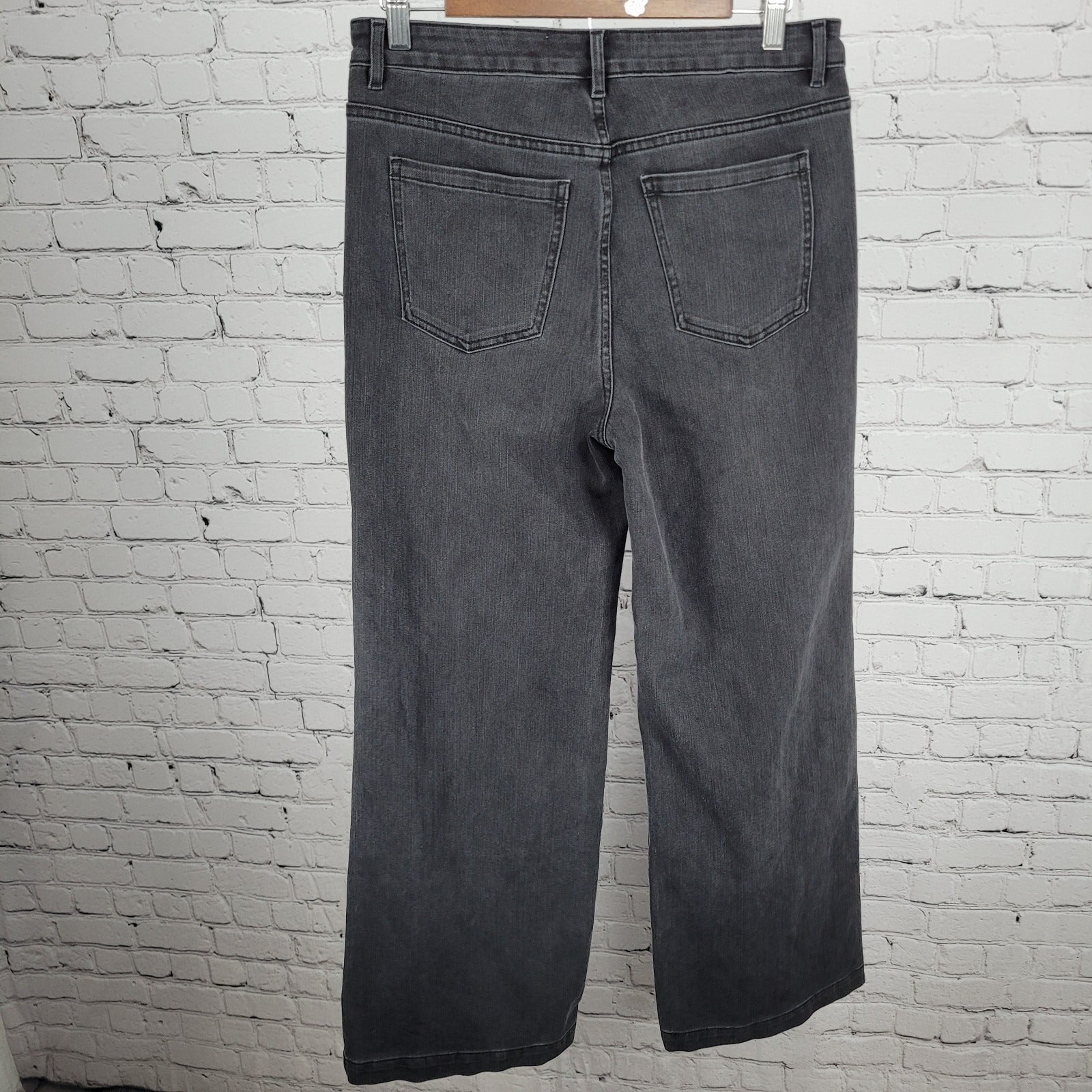 Soft Surroundings Grey Black High Rise Wide Leg Baggy Jeans Size 10 (30x30)