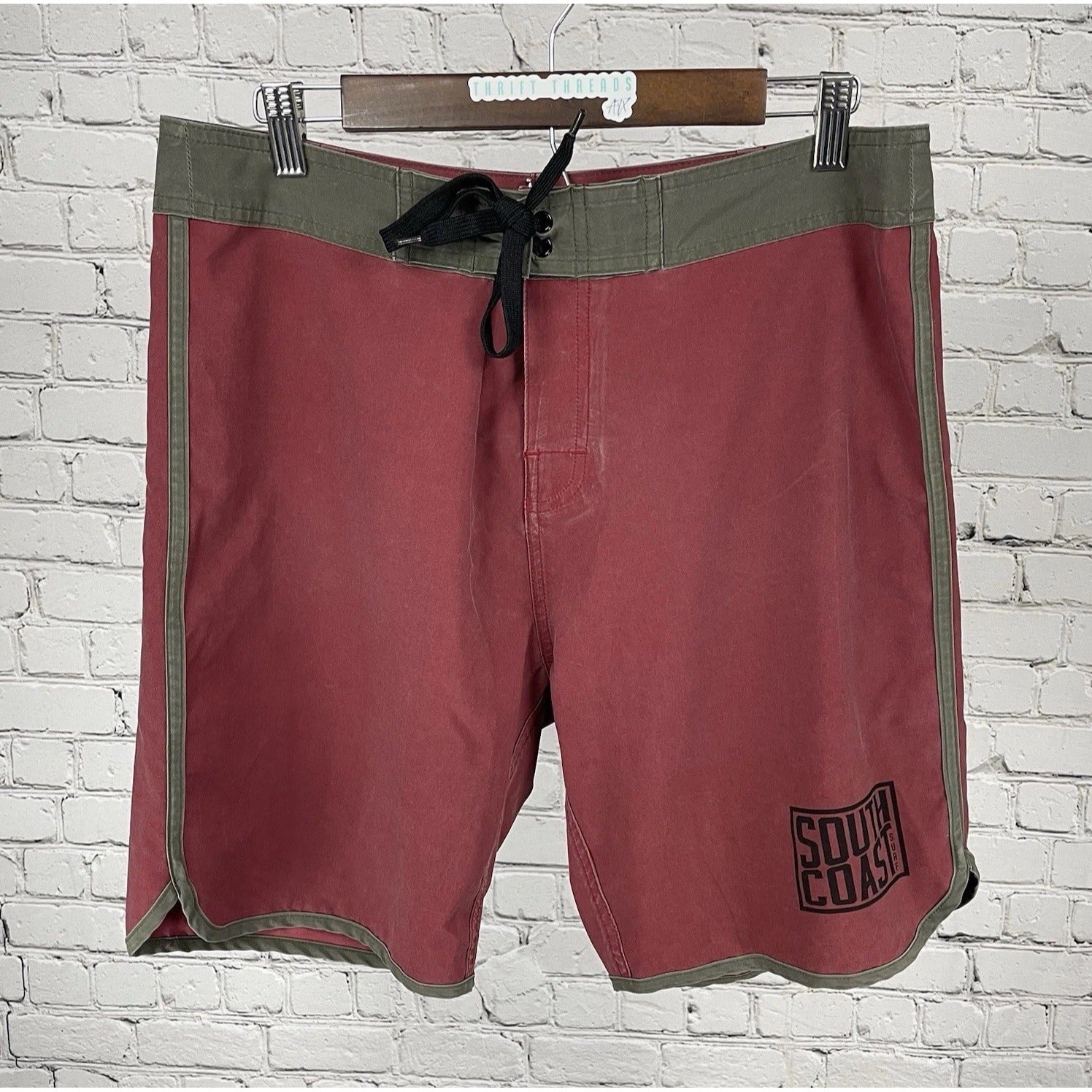 South Coast Surf Muted Red Board Shorts Swim Trunks Stretch Pocket Size 33