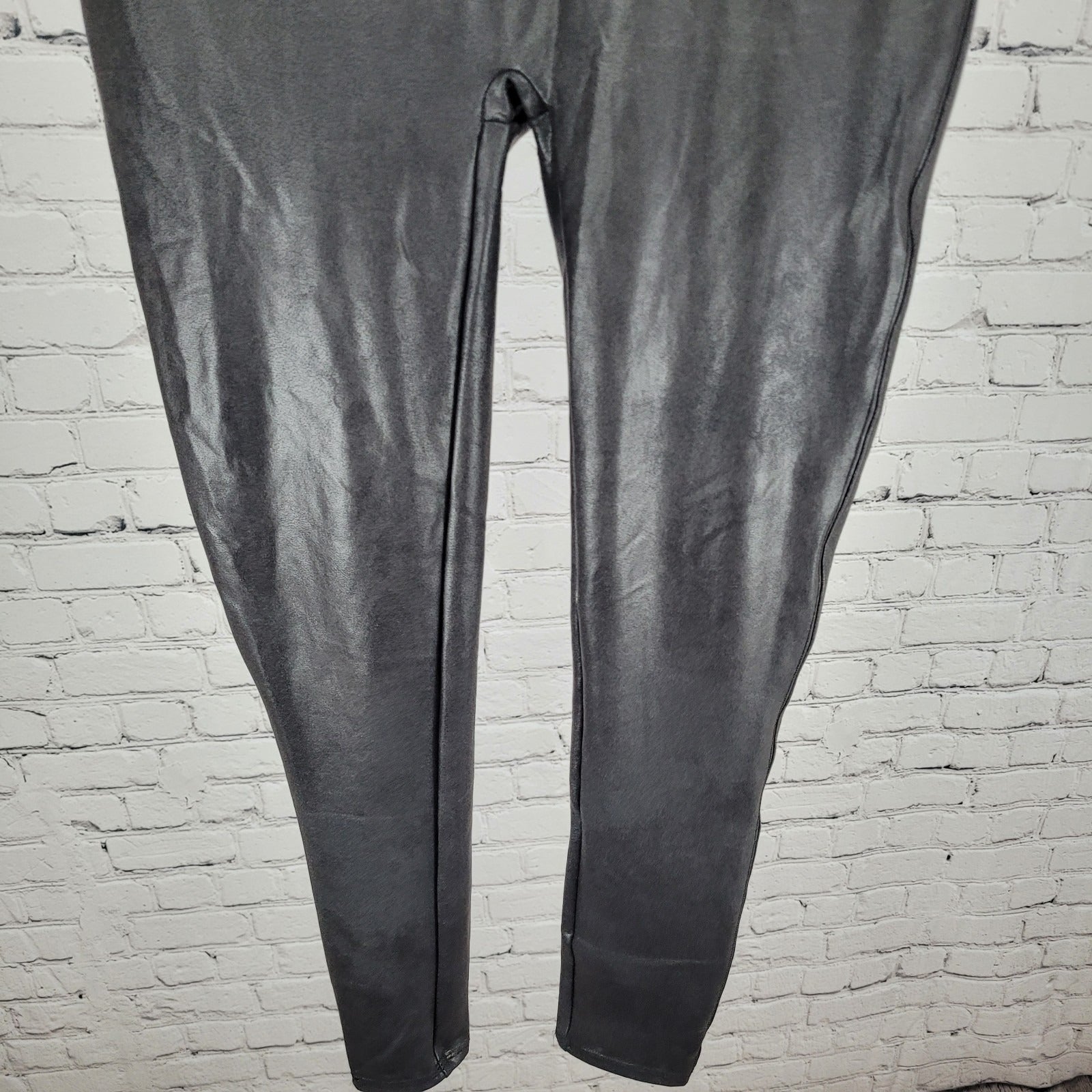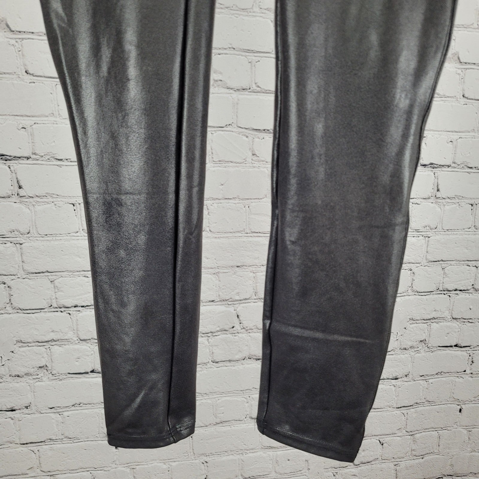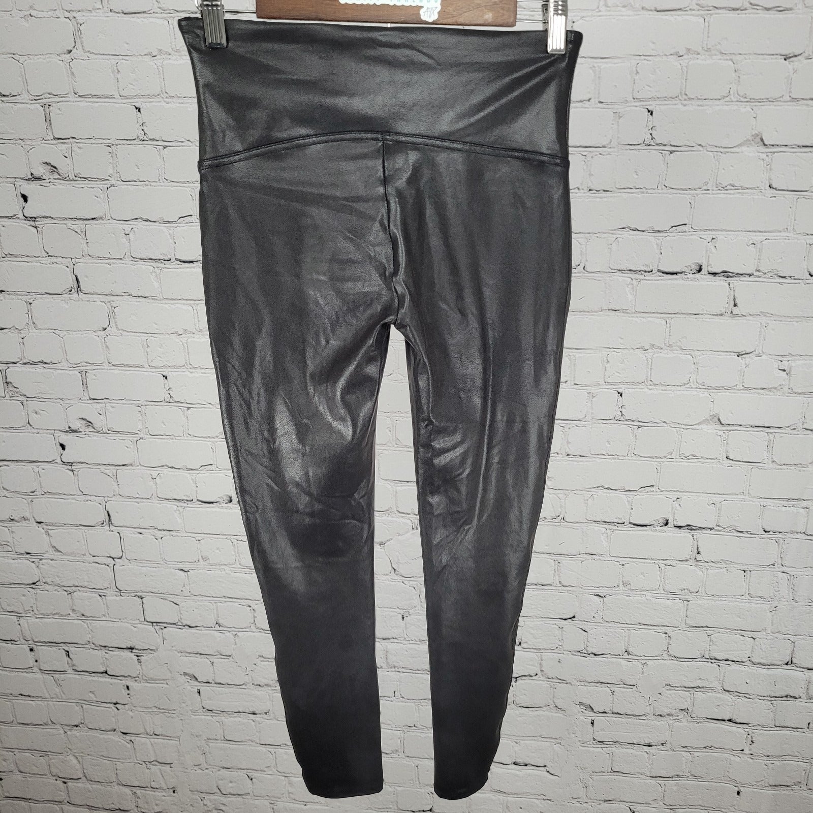 Spanx Black Faux Leather Stretch Slimming Shaping Leggings Size Large L