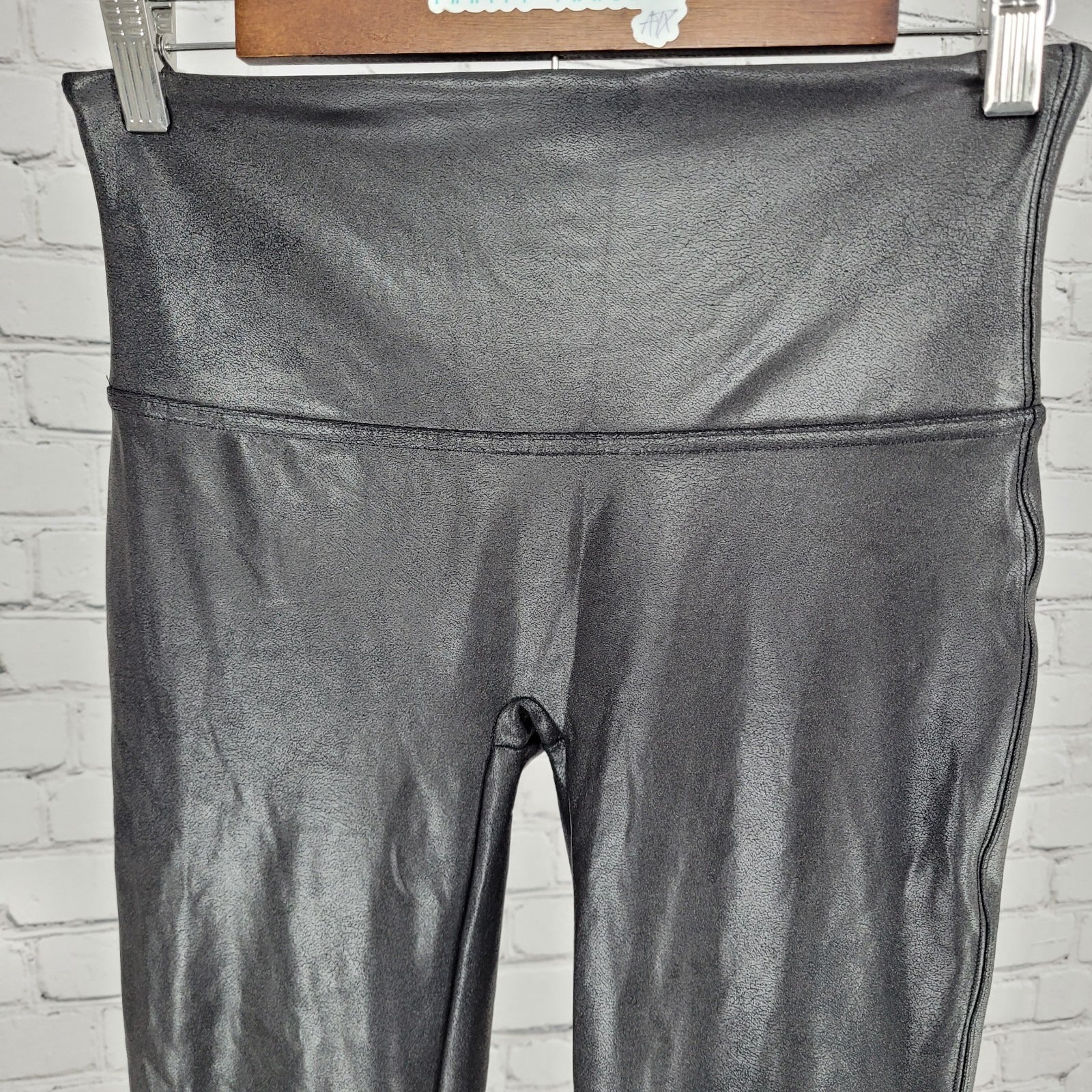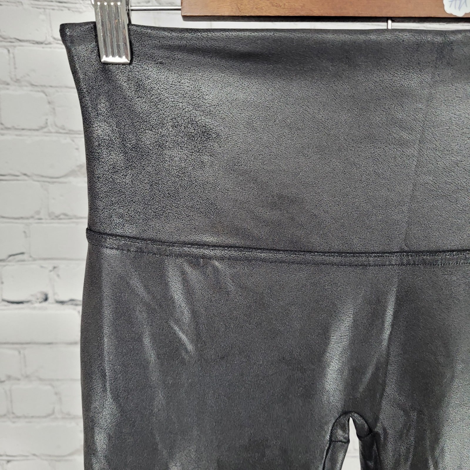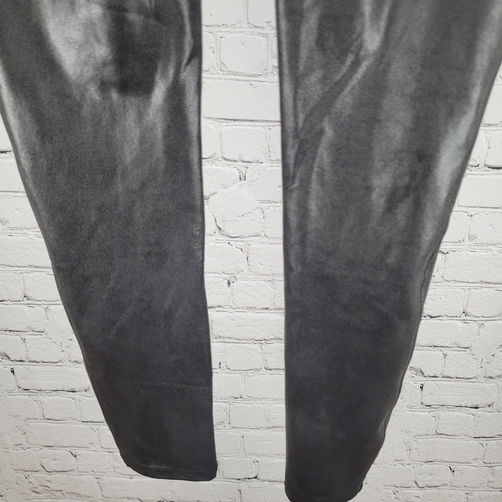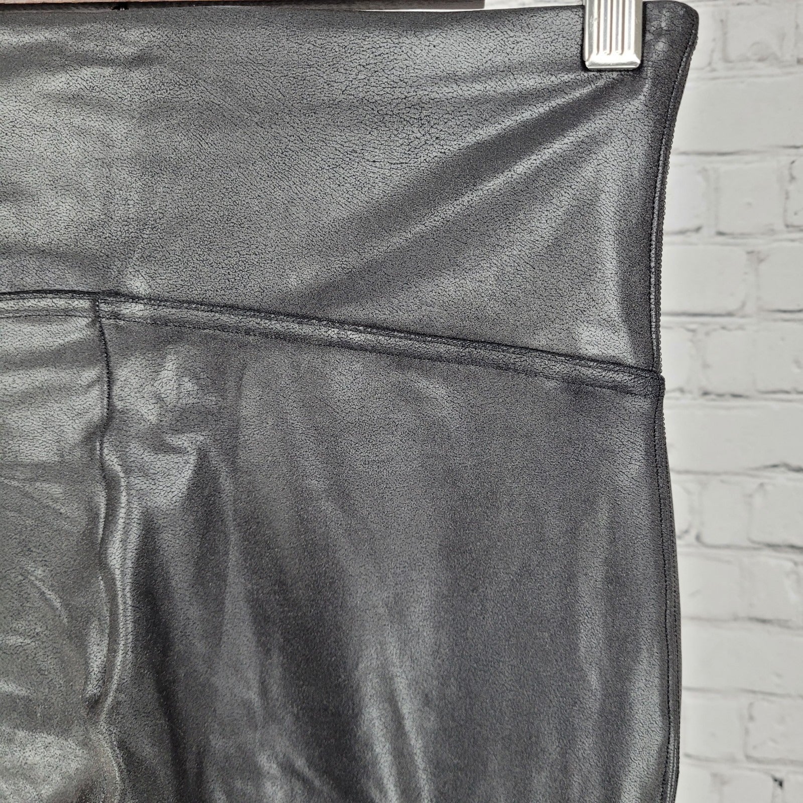 Spanx Black Faux Leather Stretch Slimming Shaping Leggings Size Large L