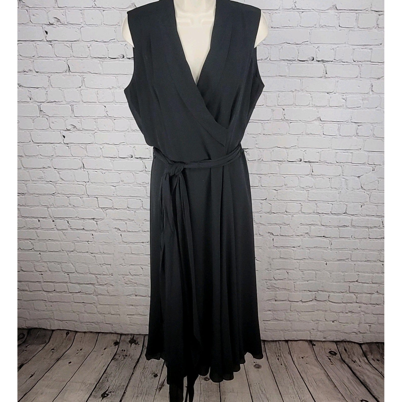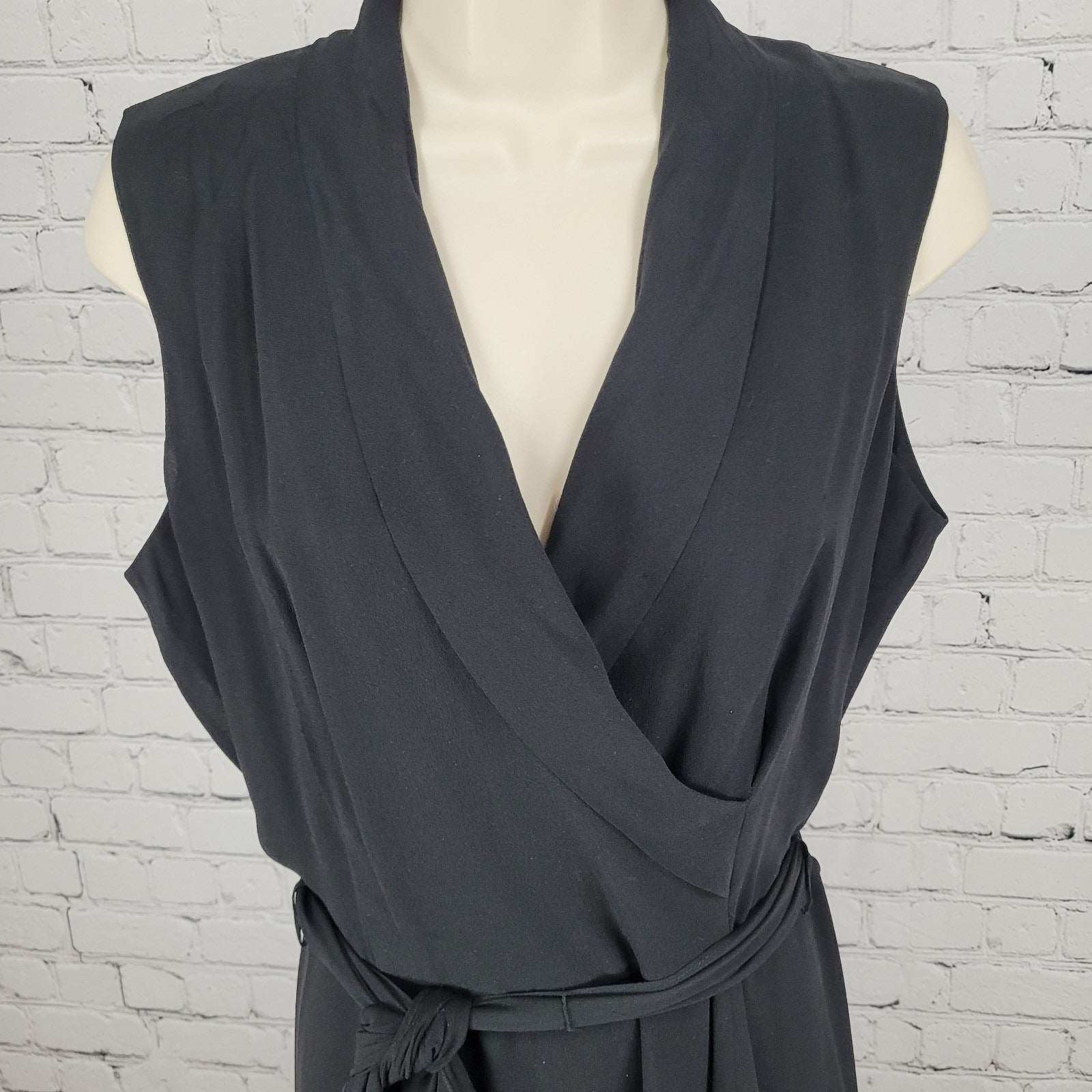 Spencer Jeremy 100% Silk Chiffon Belted Shawl Collar Midi Dress Size 10