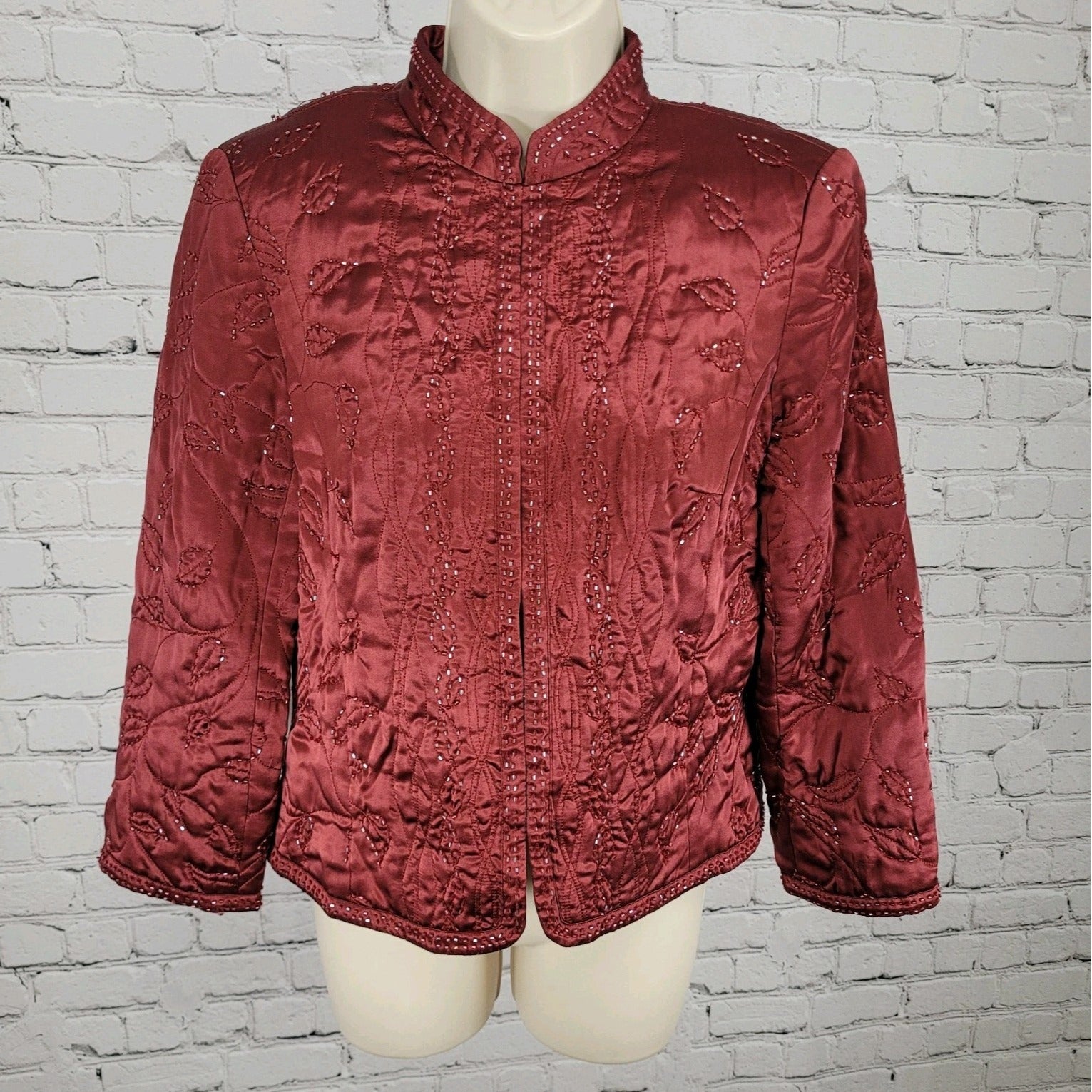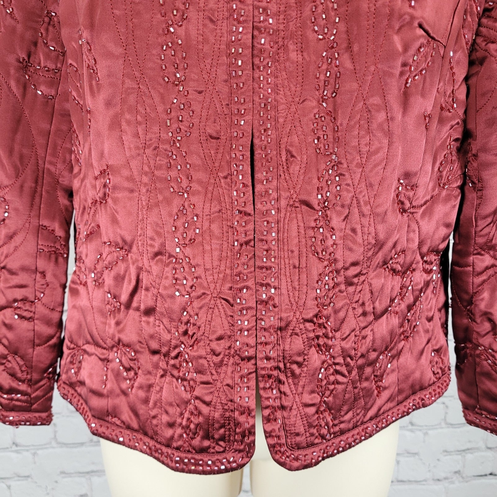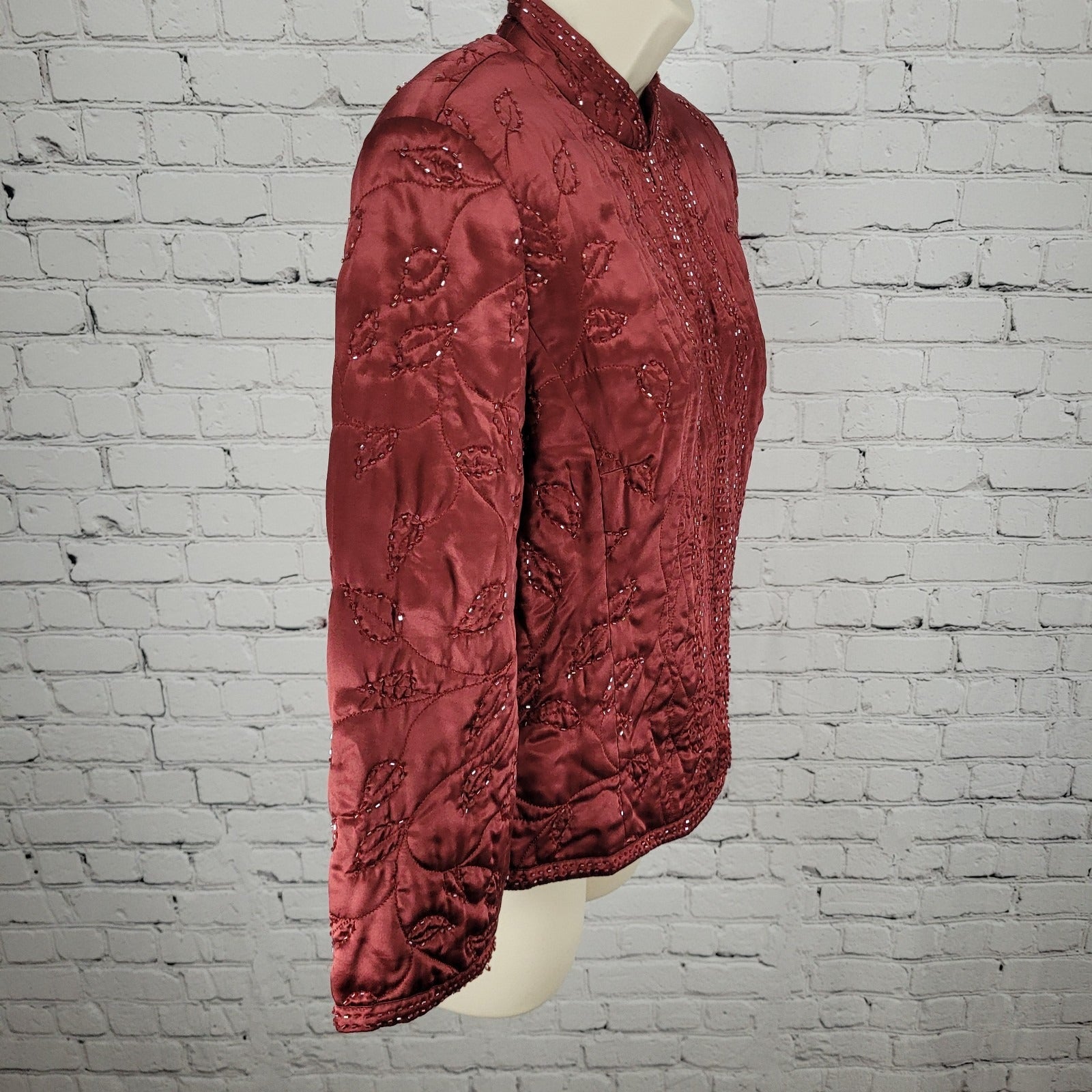 Spenser Evening Red 100% Silk Beaded Embroidered Leaves Lined Jacket Size 8