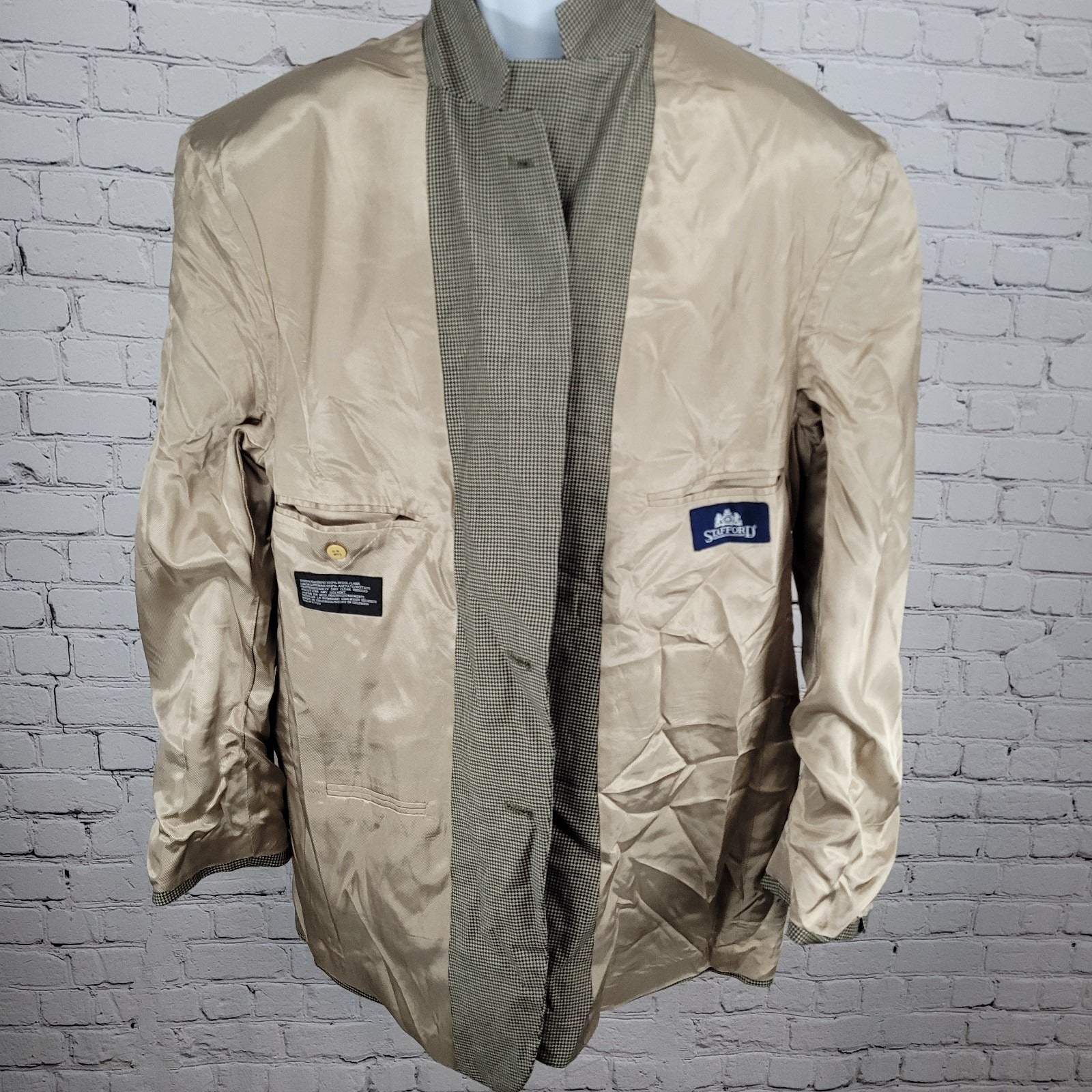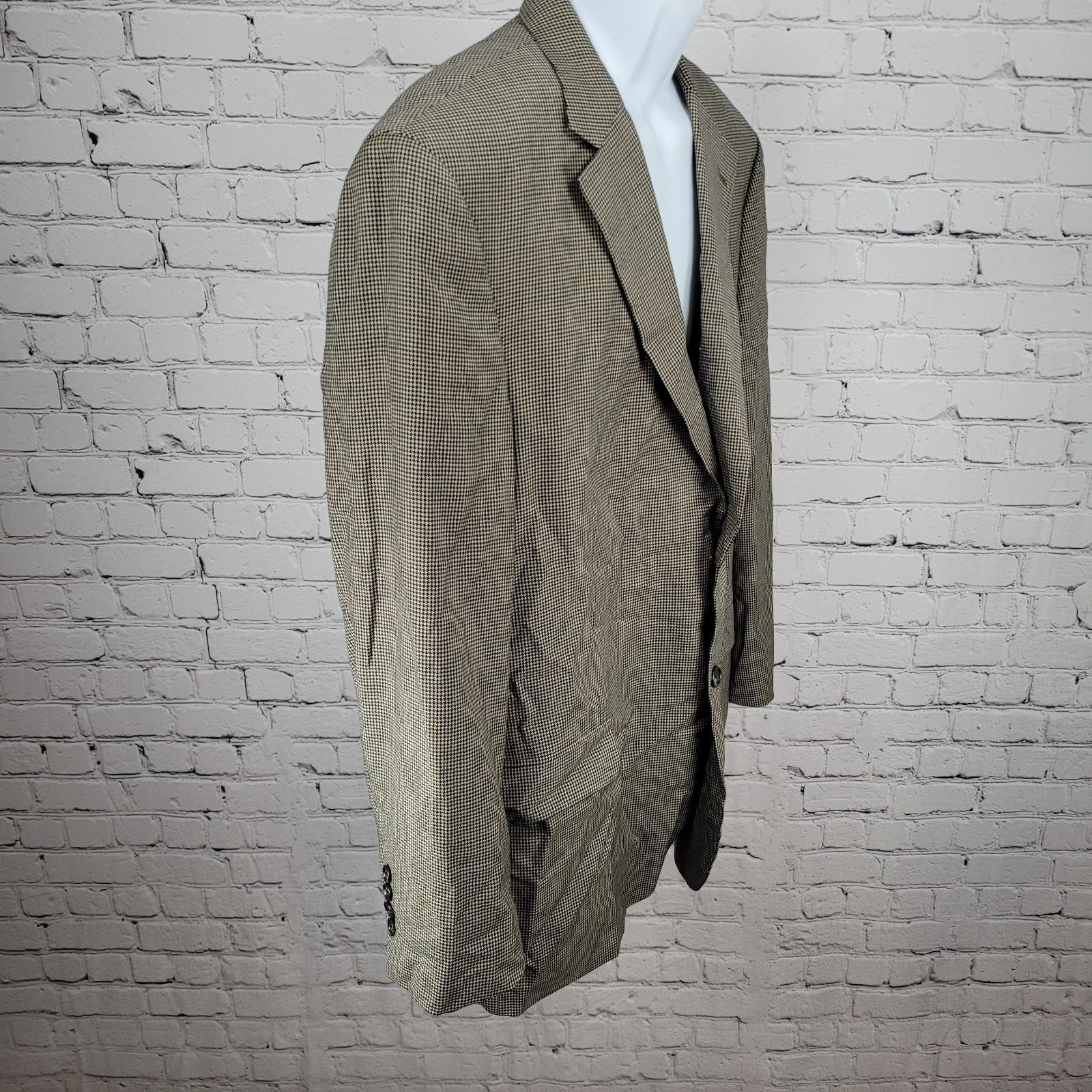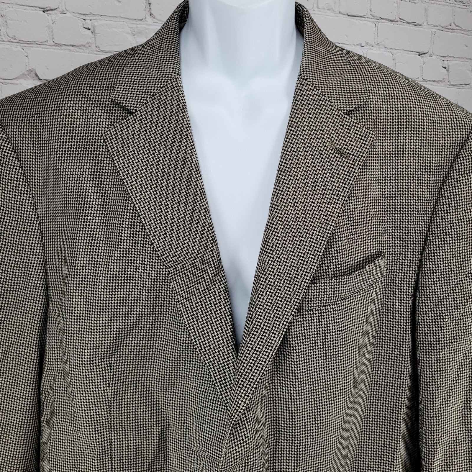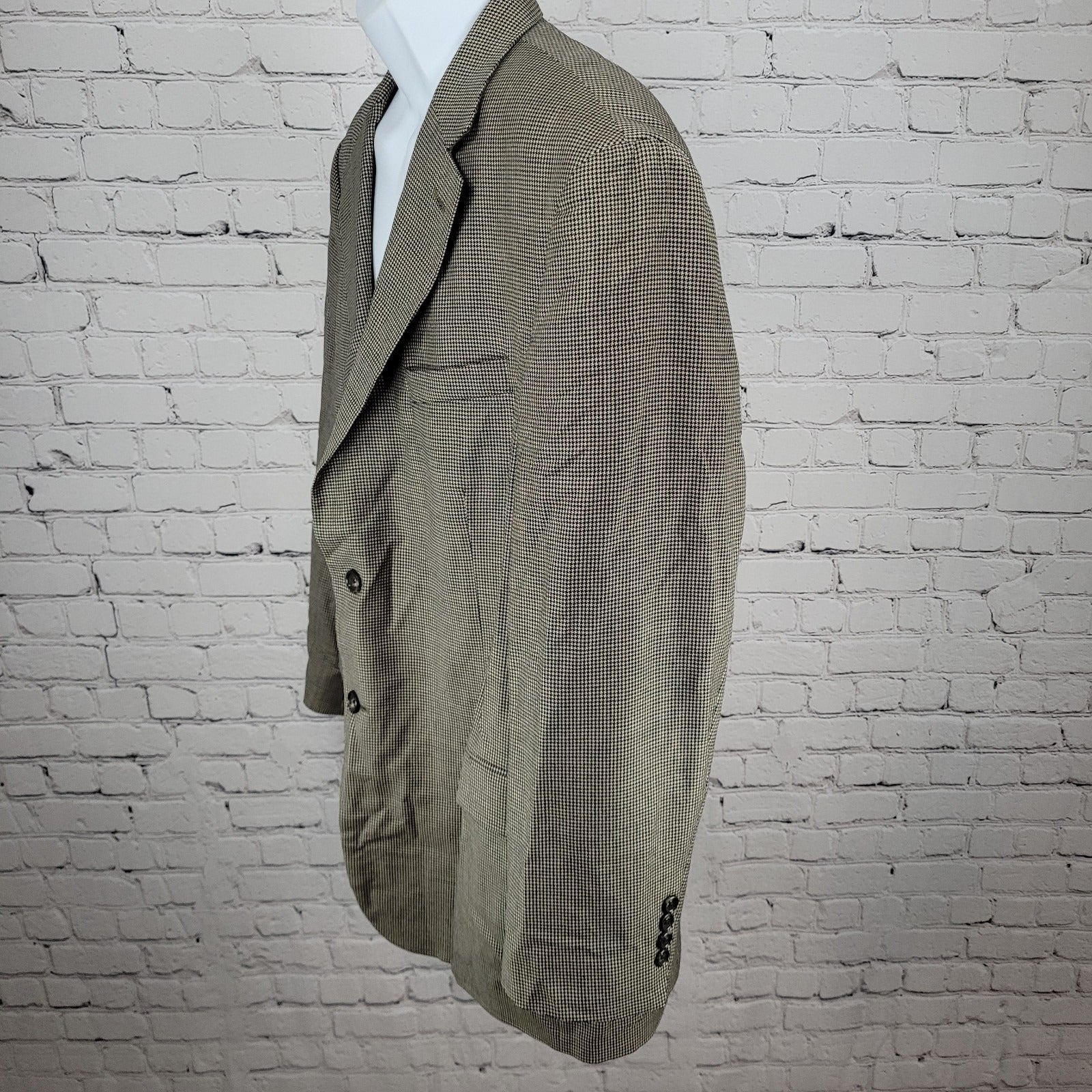 Stafford Black Tan 100% Wool Houndstooth 2 Button Blazer Sport Coat Size 46R