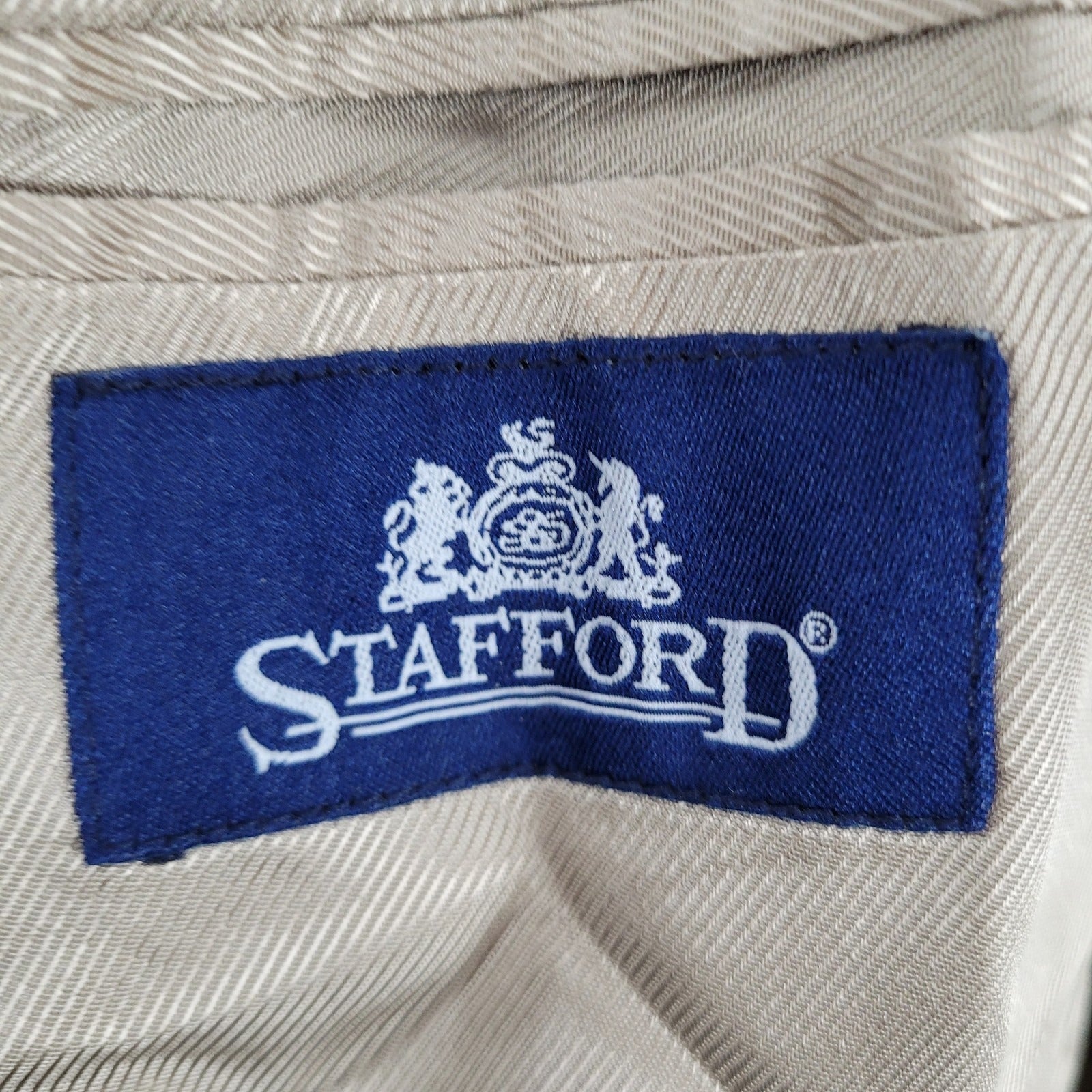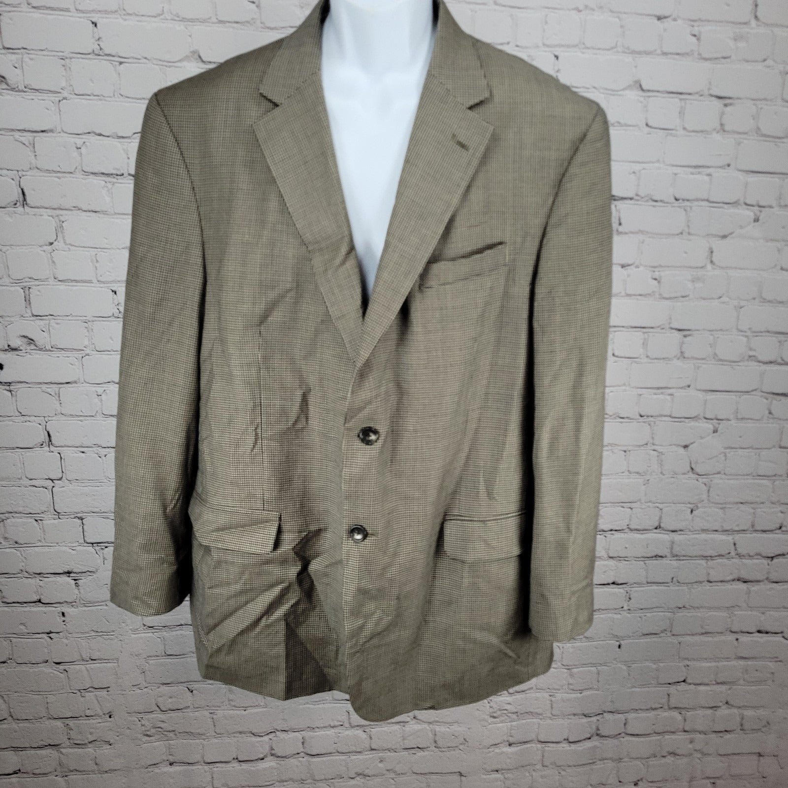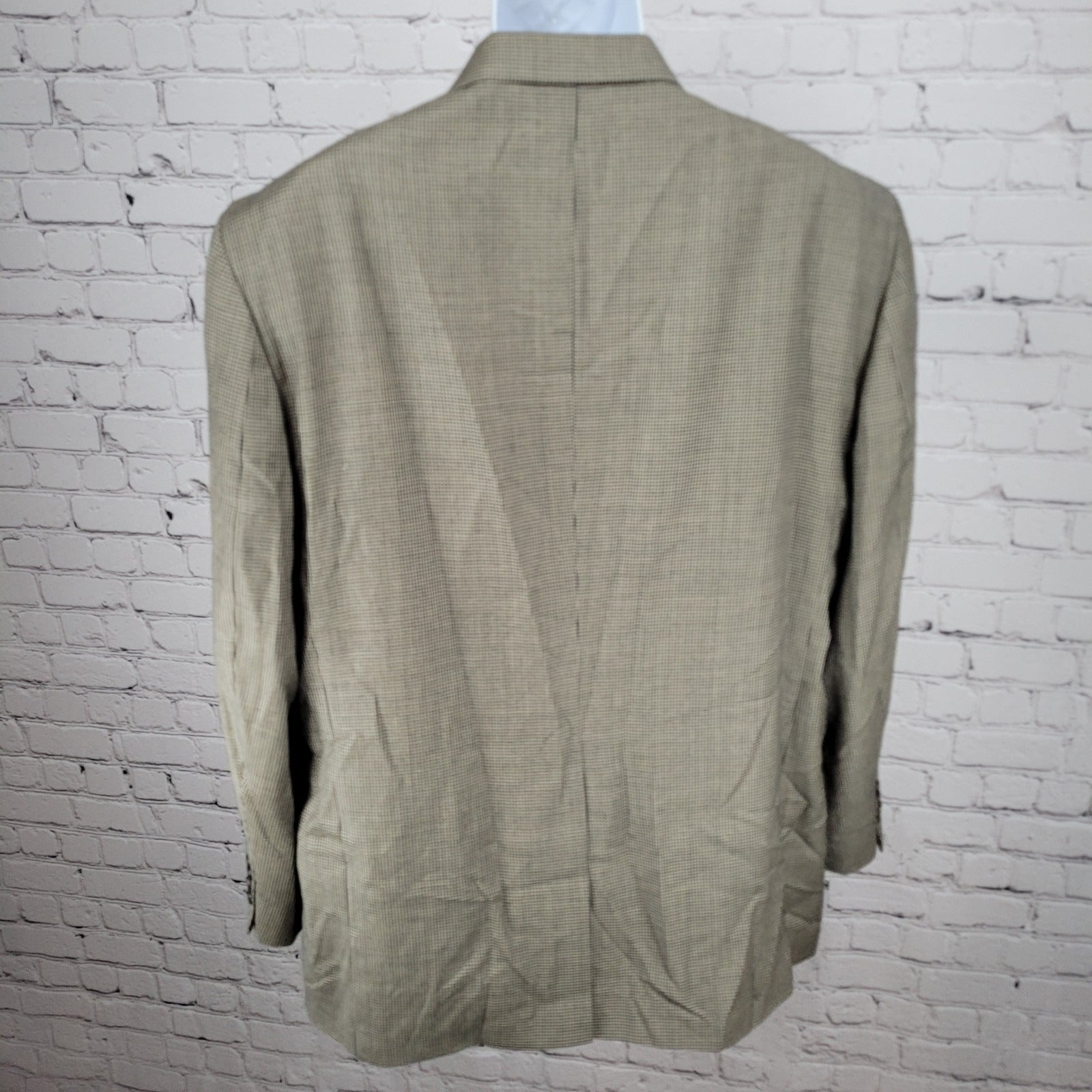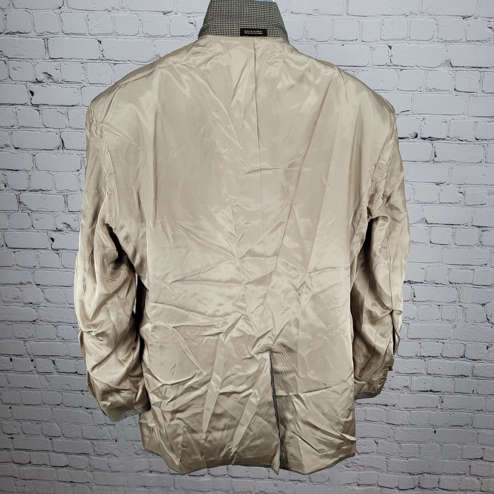 Stafford Black Tan 100% Wool Houndstooth 2 Button Blazer Sport Coat Size 46R