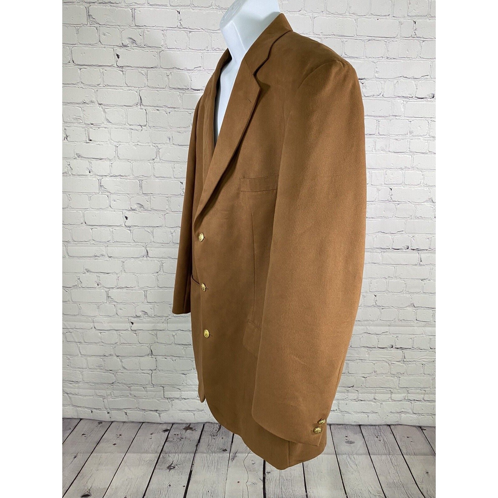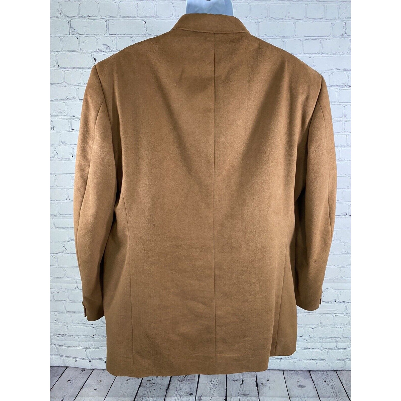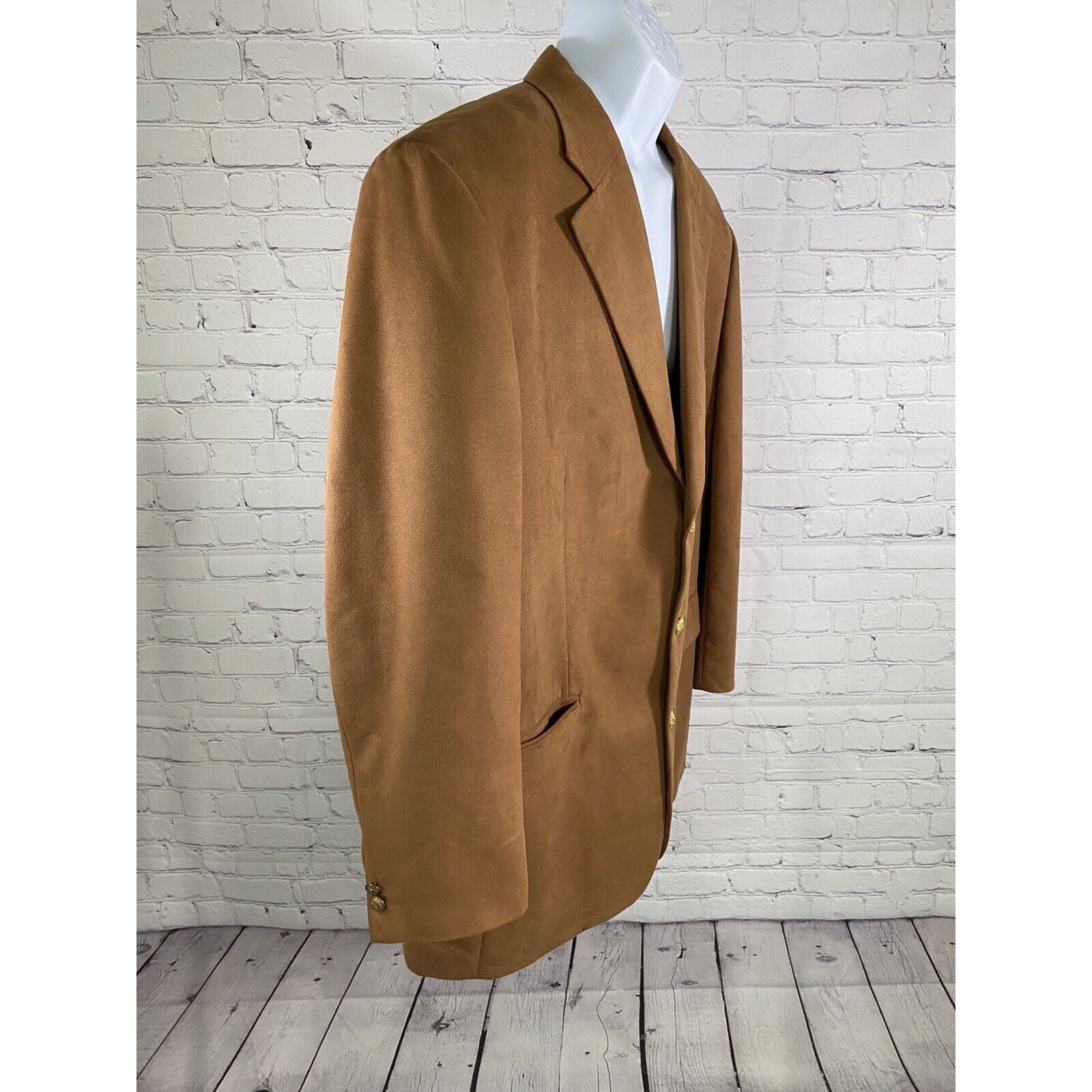 Stafford Brown Gold 3 Button Single Breasted Faux Suede Jacket Blazer Coat 46L.
