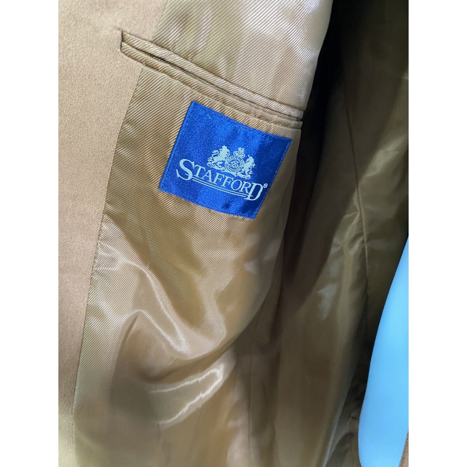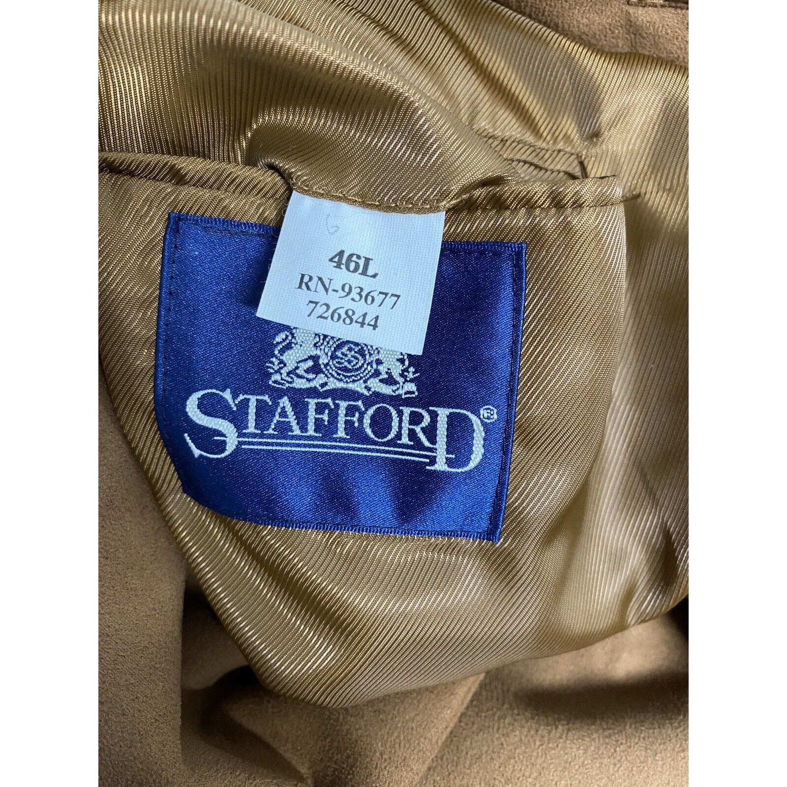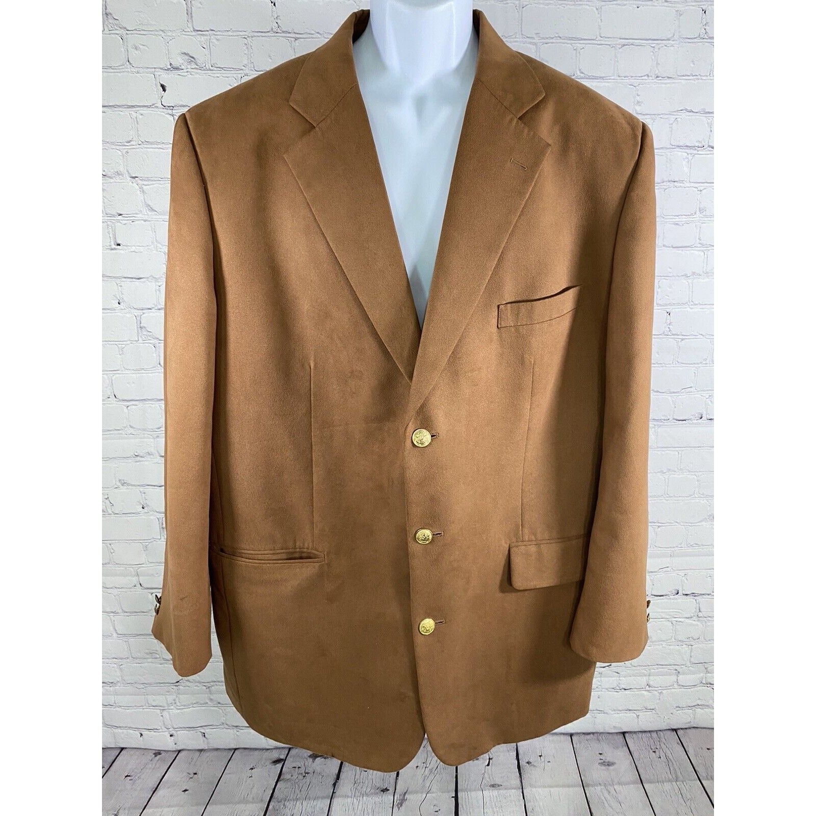 Stafford Brown Gold 3 Button Single Breasted Faux Suede Jacket Blazer Coat 46L.