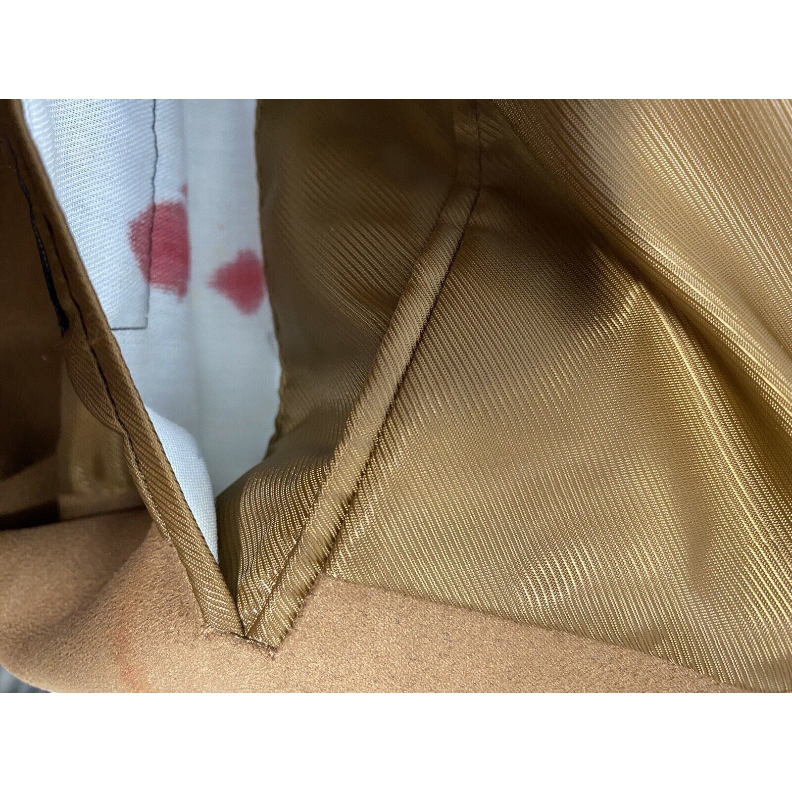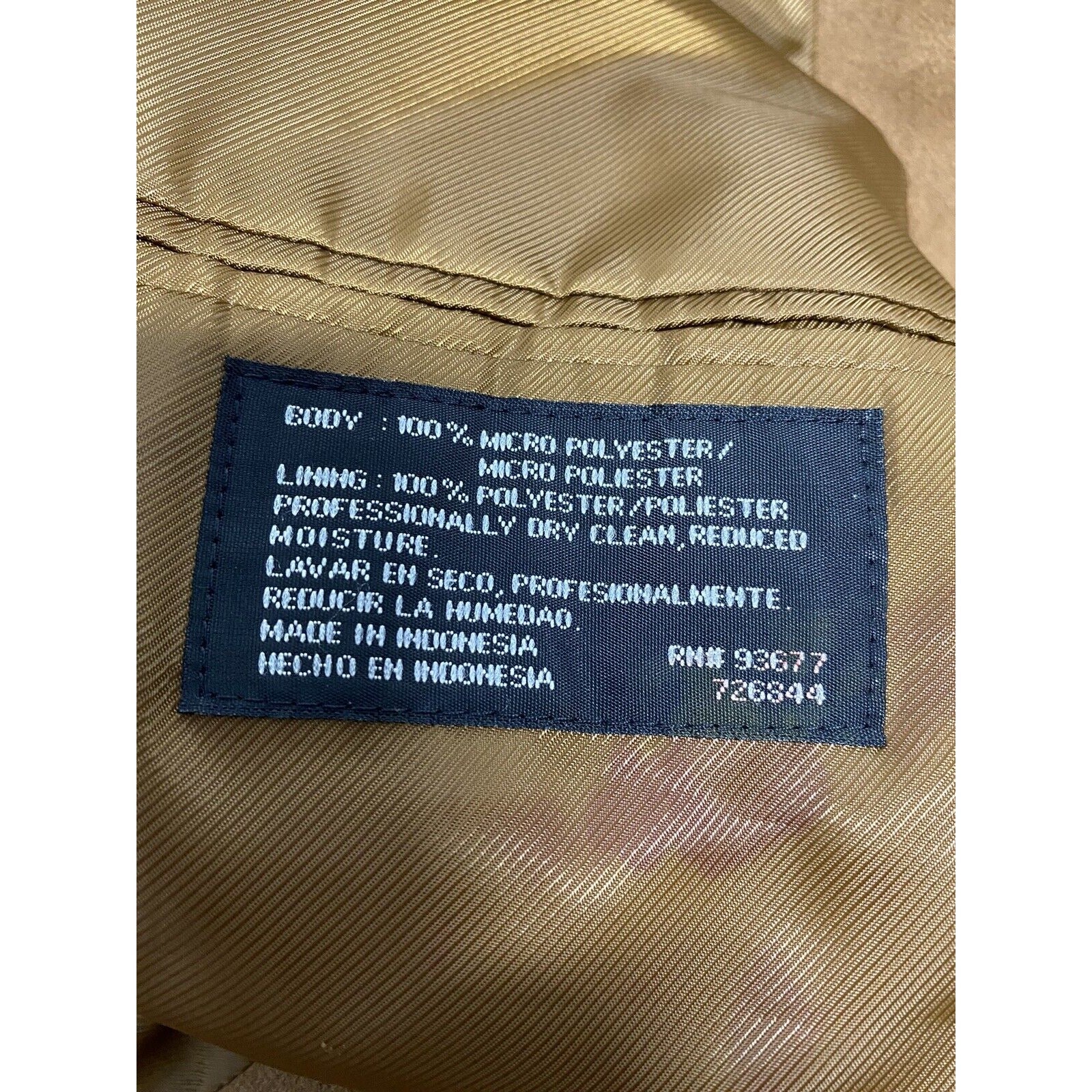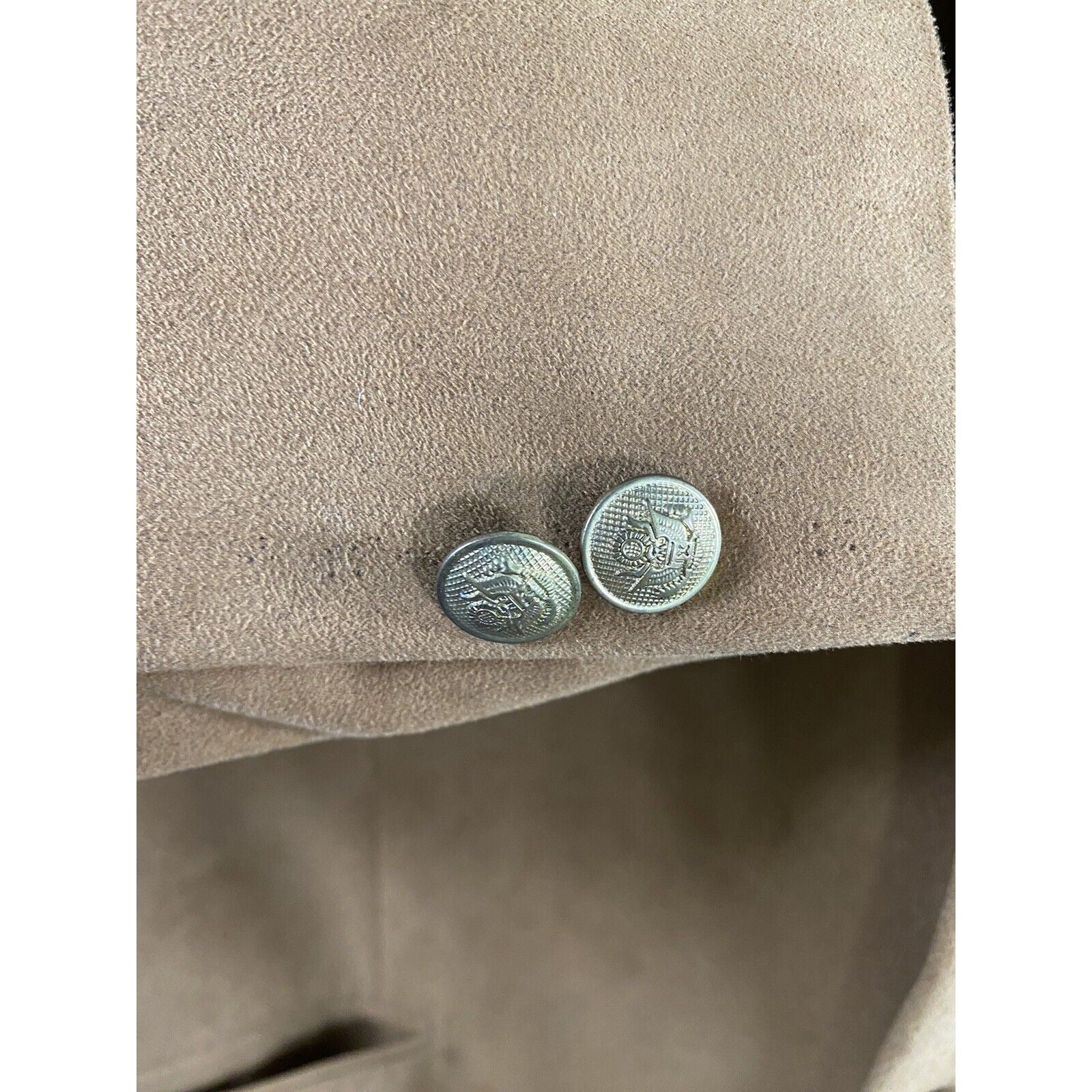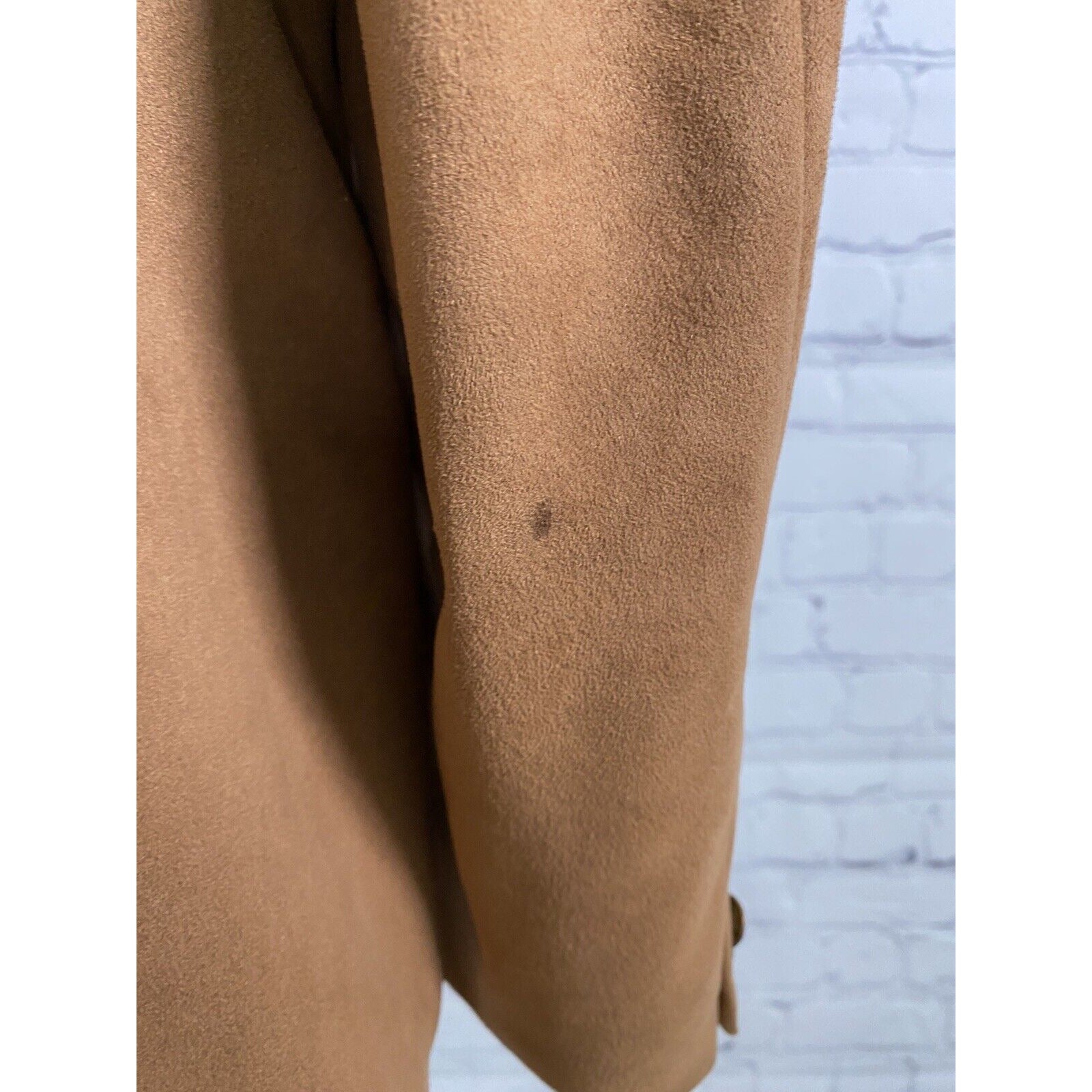 Several small defects/ stains/ discolorations in shell of jacket.Both sleeves seem to be missing buttons. Stain on inside of inner left chest pocket. See photos for reference.