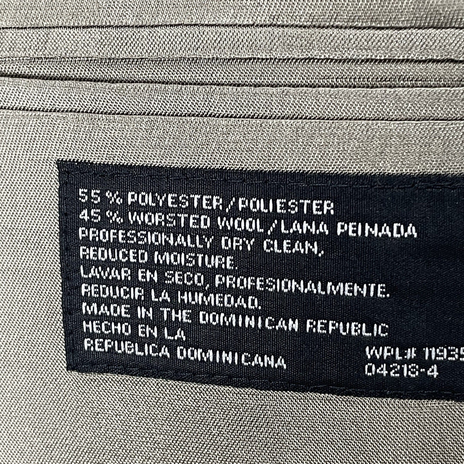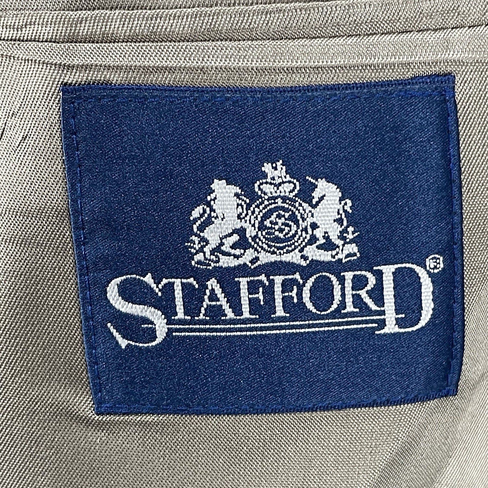 This Stafford blazer is a classic brown sport coat made from a blend of polyester and wool materials, designed in a regular size 48 with a solid pattern. The blazer features a two-button front closure, three-button sleeve style, and a single vent at the back. It is lined with polyester and has a notch lapel style, making it suitable for various occasions. The jacket is part of the Classic and Sports theme, and is crafted in the Dominican Republic by the Stafford brand.