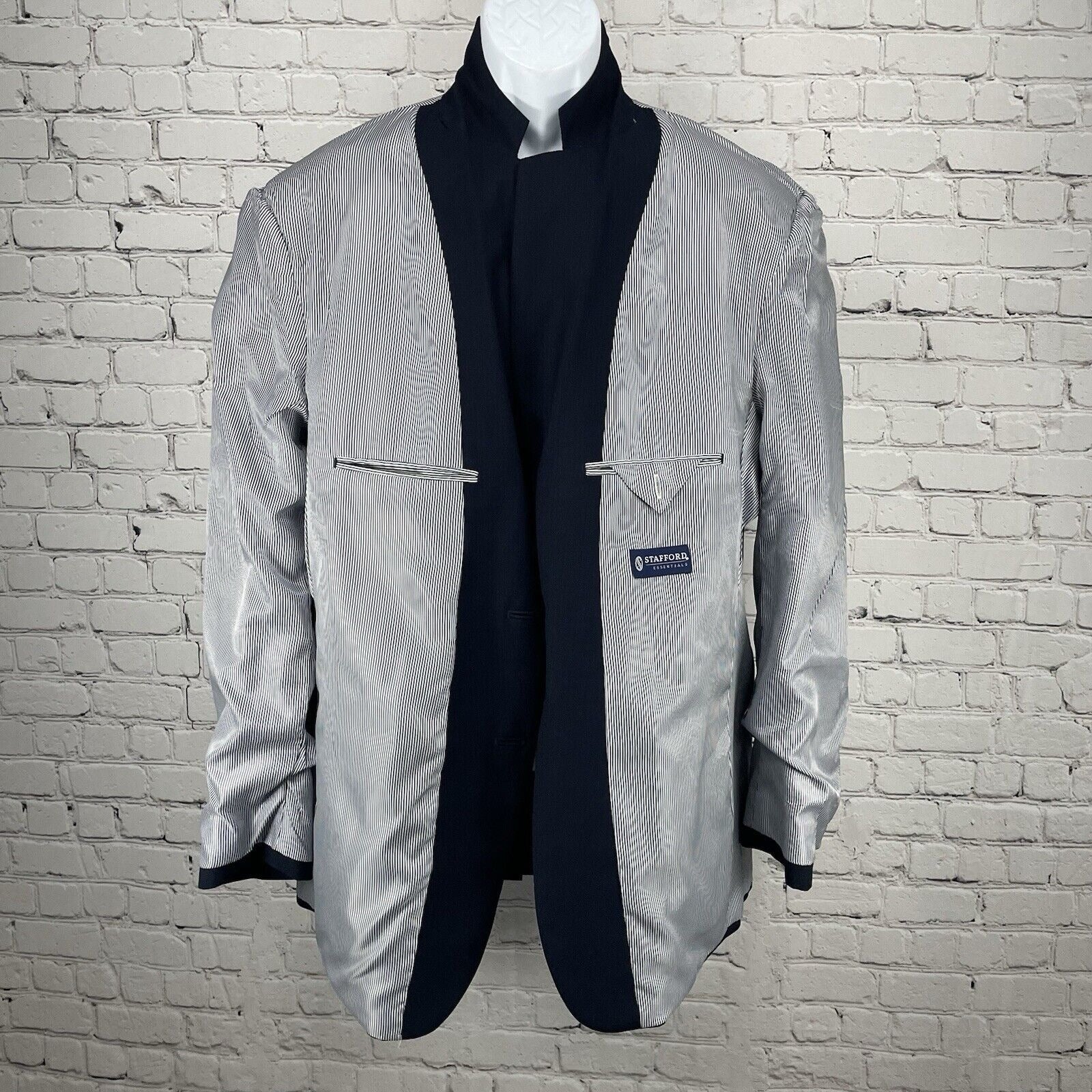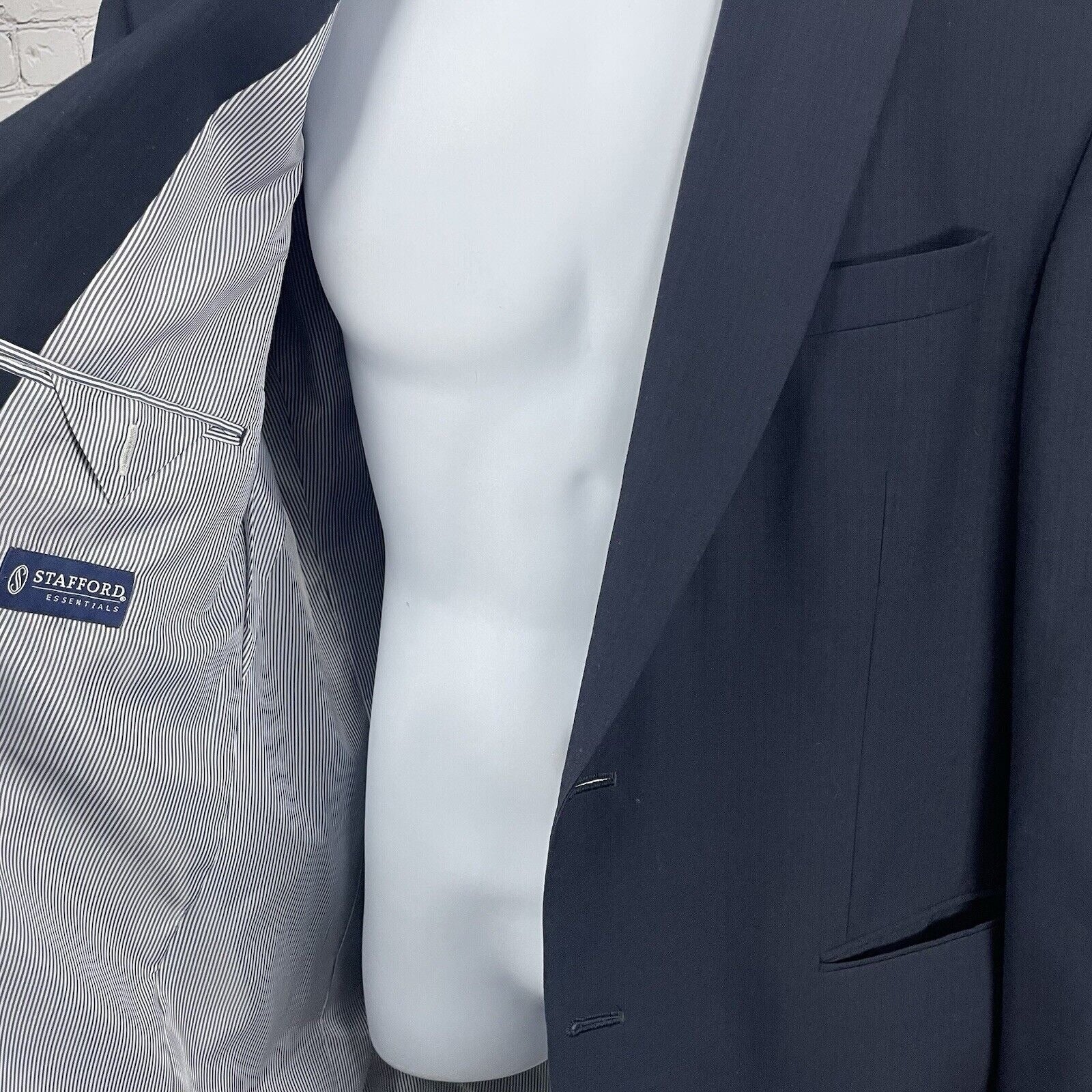 Stafford Dark Blue Essentials Suit Blazer 2 Button Notch Vented Lined Size 44L
