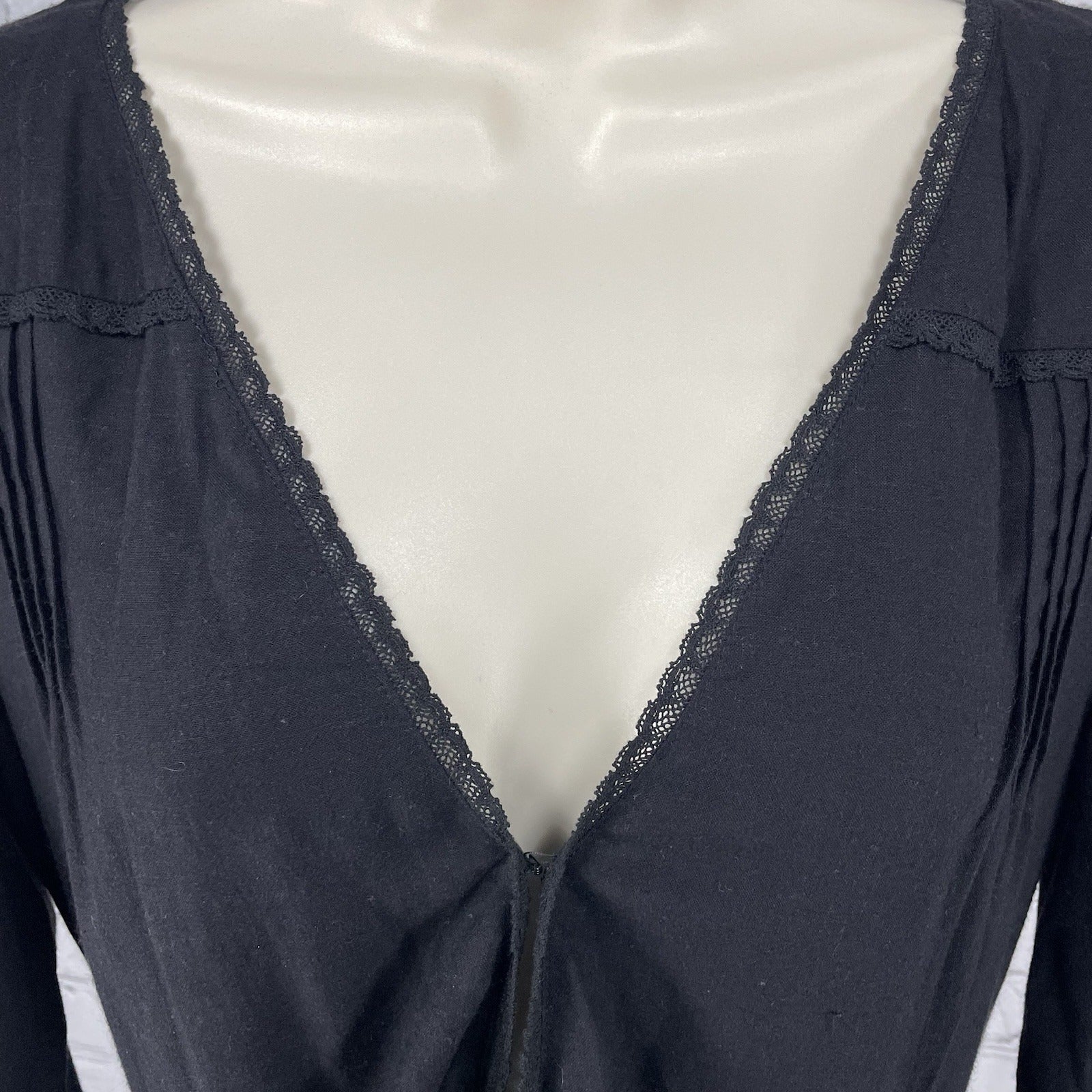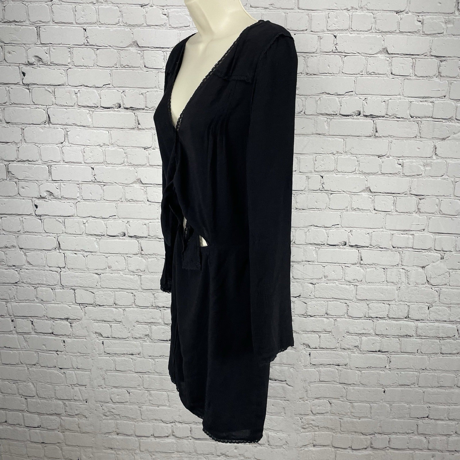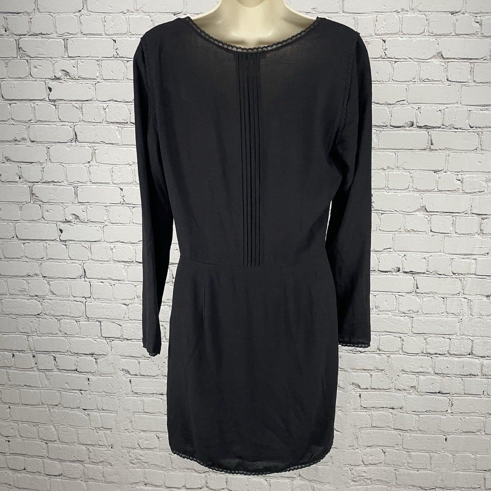 Stevie May Black Lightweight Long Sleeve Tie Front Pleated Zipped Dress Size S