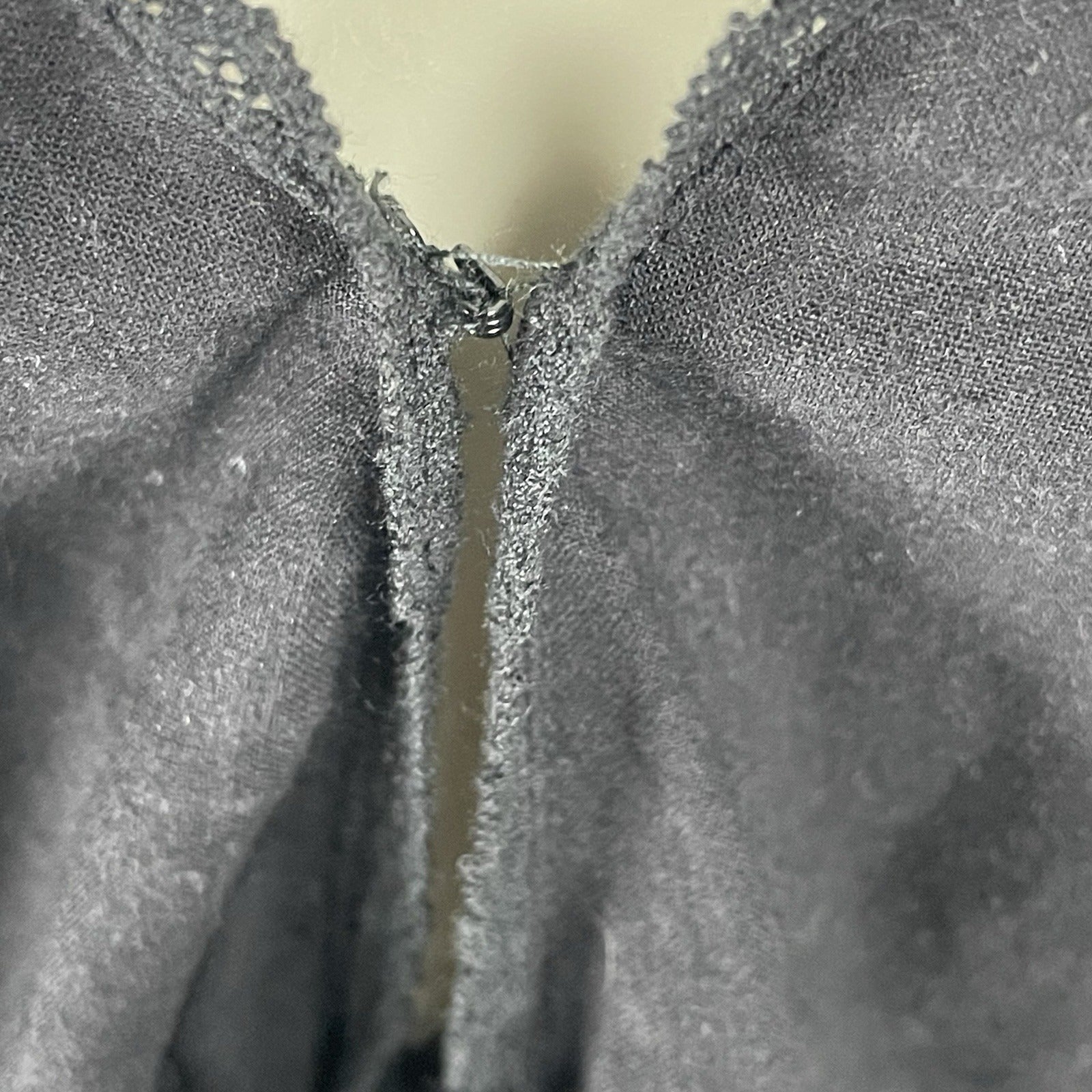 Loop missing from hook & eye and tear about side zipper, as pictured. Missing materials and care tag. Feels like cotton.