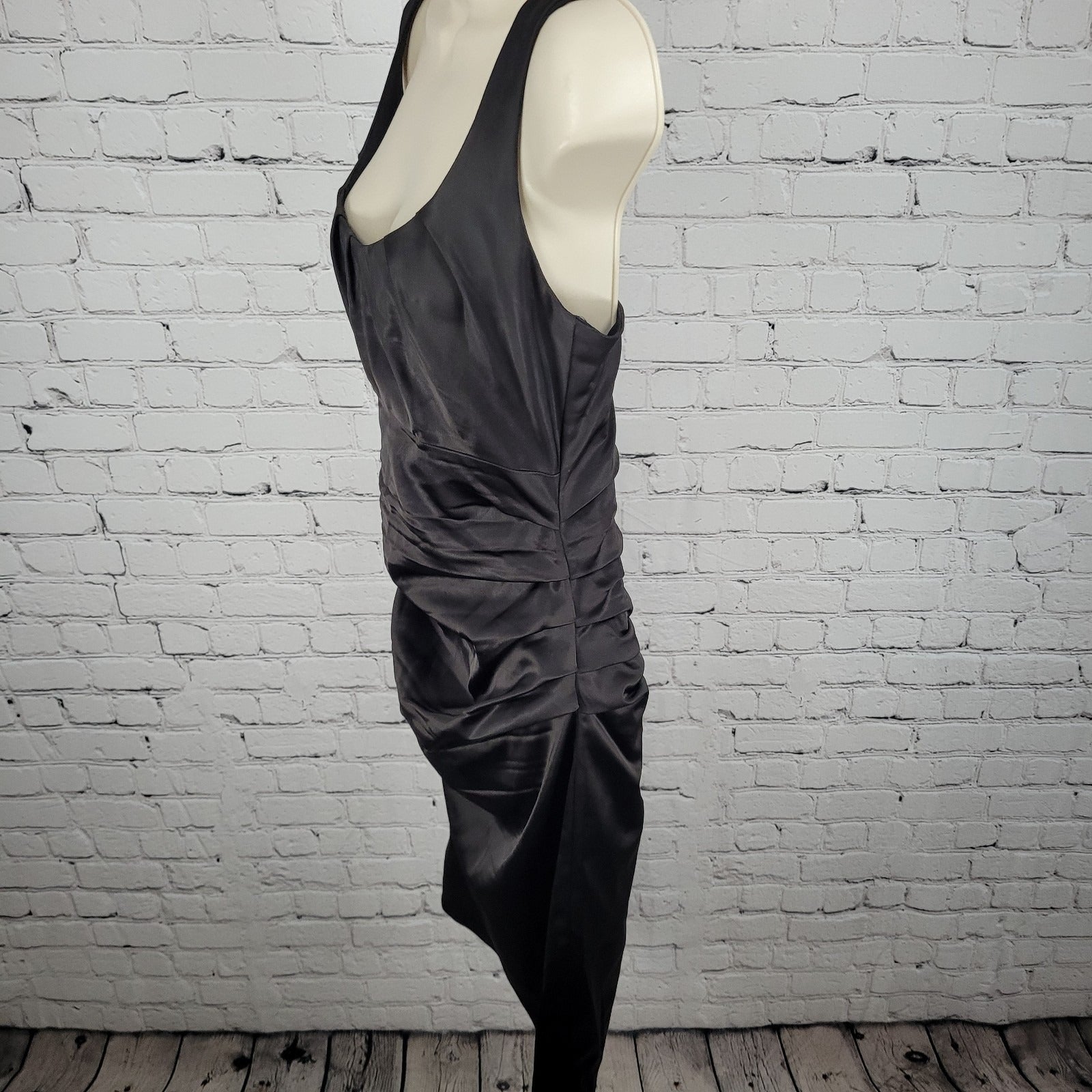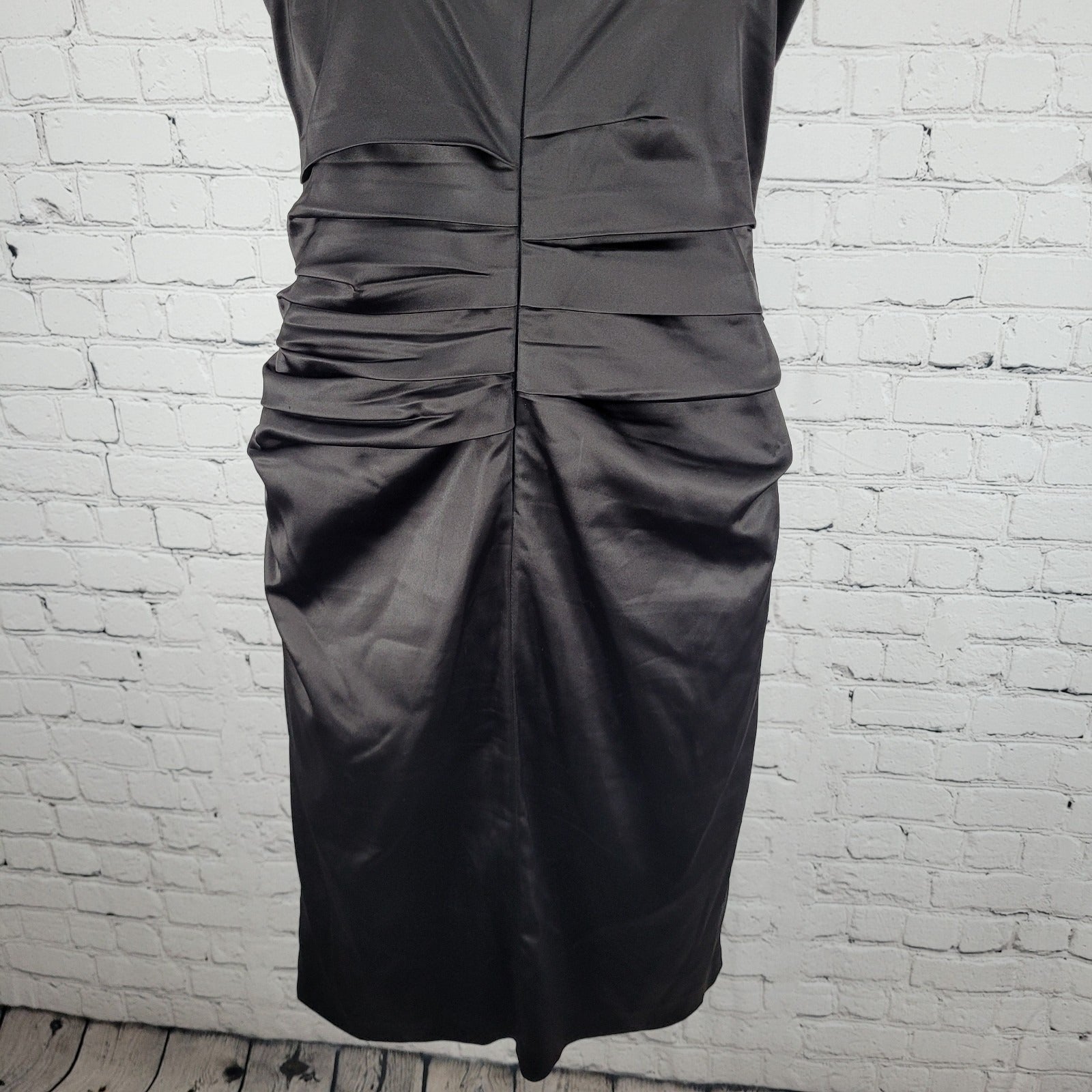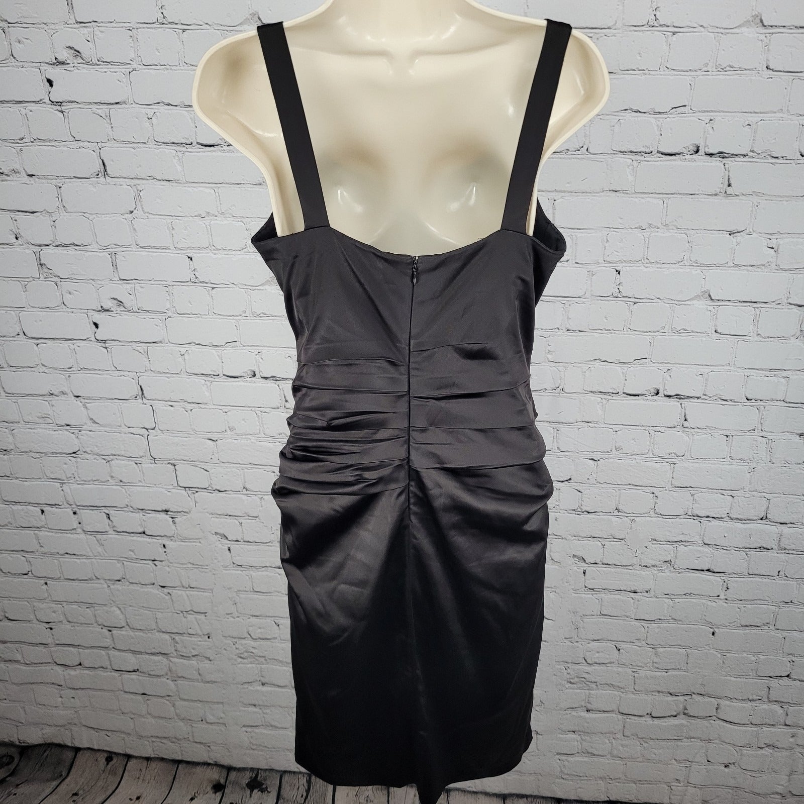 Suzi Chin Maggy Boutique Dark Brown Ruched Stretch Sheath Dress USA Made Size 8