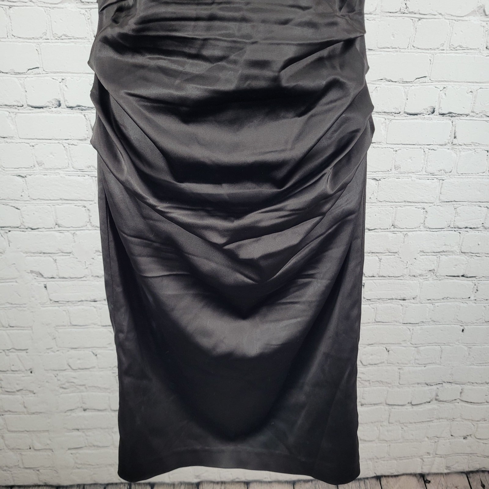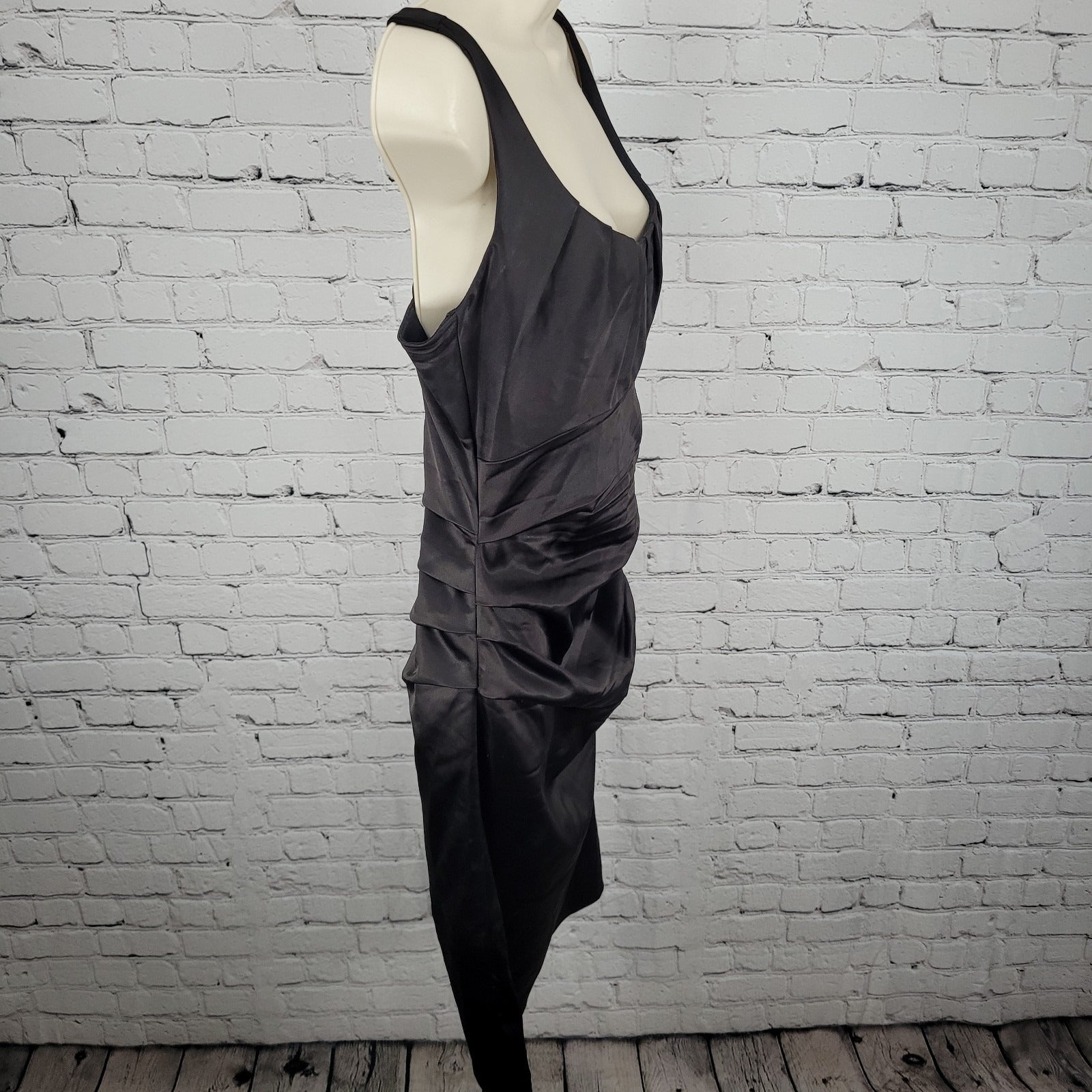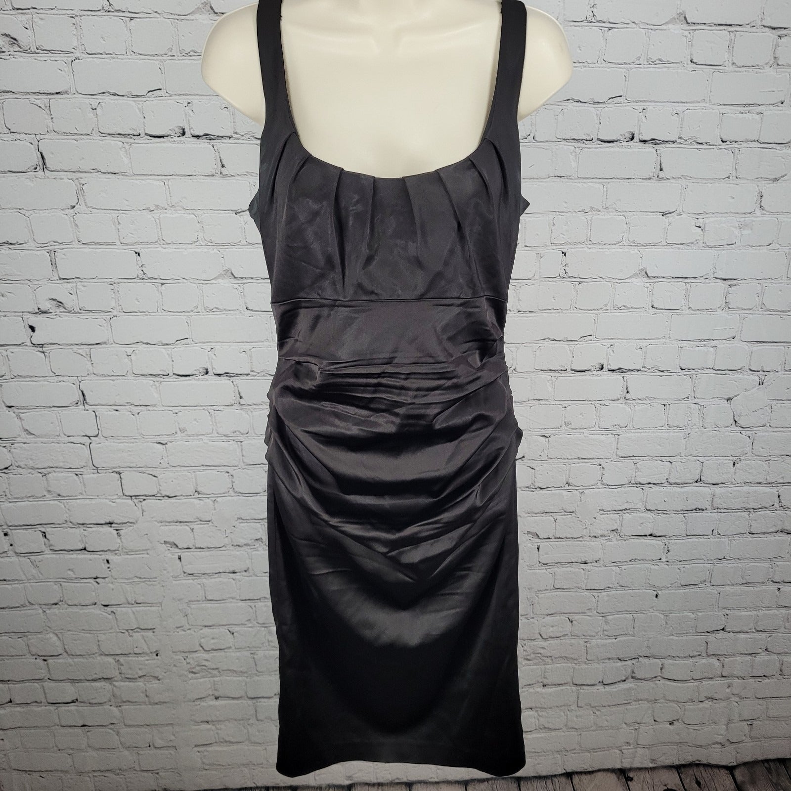 Suzi Chin Maggy Boutique Dark Brown Ruched Stretch Sheath Dress USA Made Size 8