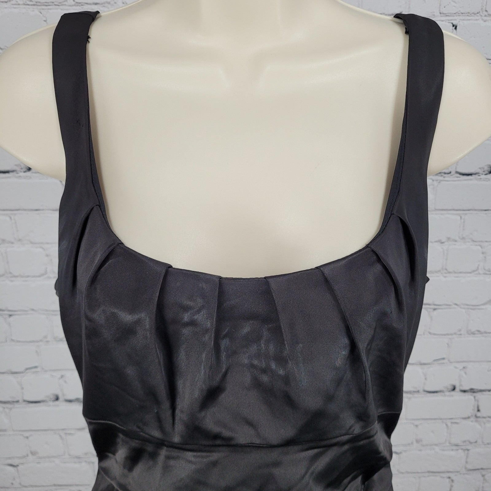 The Suzi Chin Maggy Boutique Dark Brown Pleated Stretch Sheath Dress is a stylish and flattering option for women who love the American-made aesthetic. With its pleated accents and stretch material, this dress offers a unique combination of elegance and comfort. The dark brown color adds a touch of sophistication, perfect for various occasions or events. Made in the USA by the reputable brand Maggy Boutique, this dress in size 8 is sure to become a versatile and timeless piece in any woman's wardrobe.