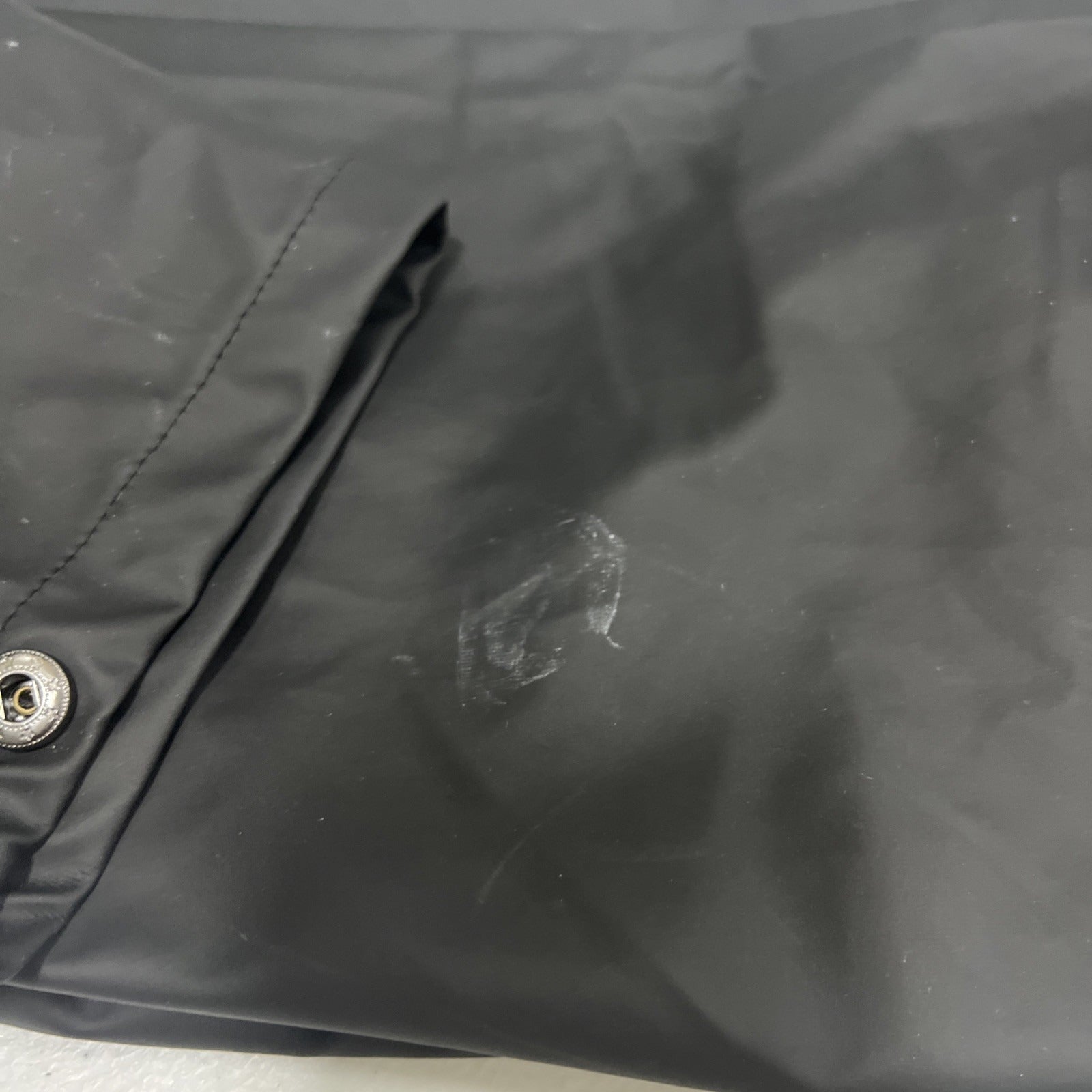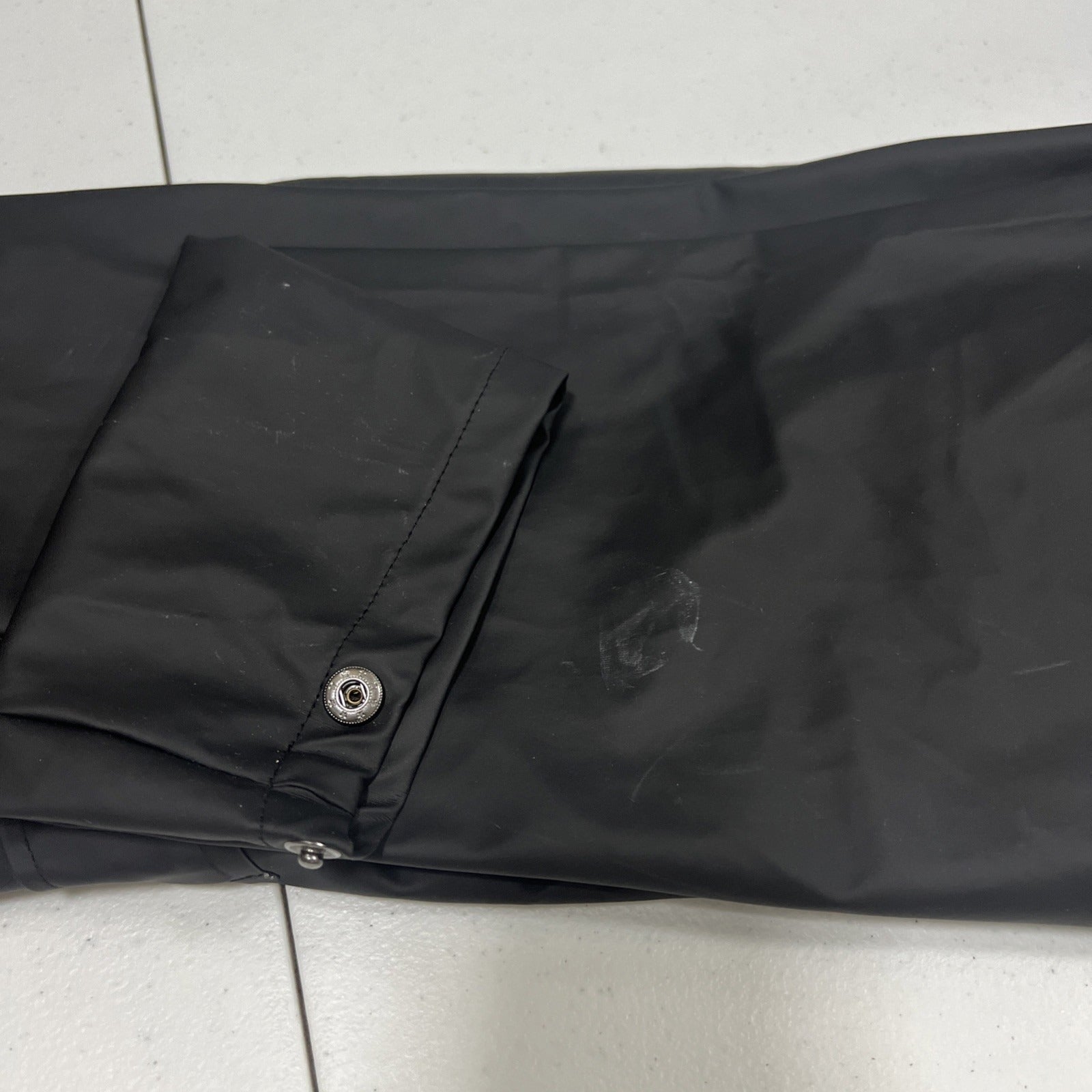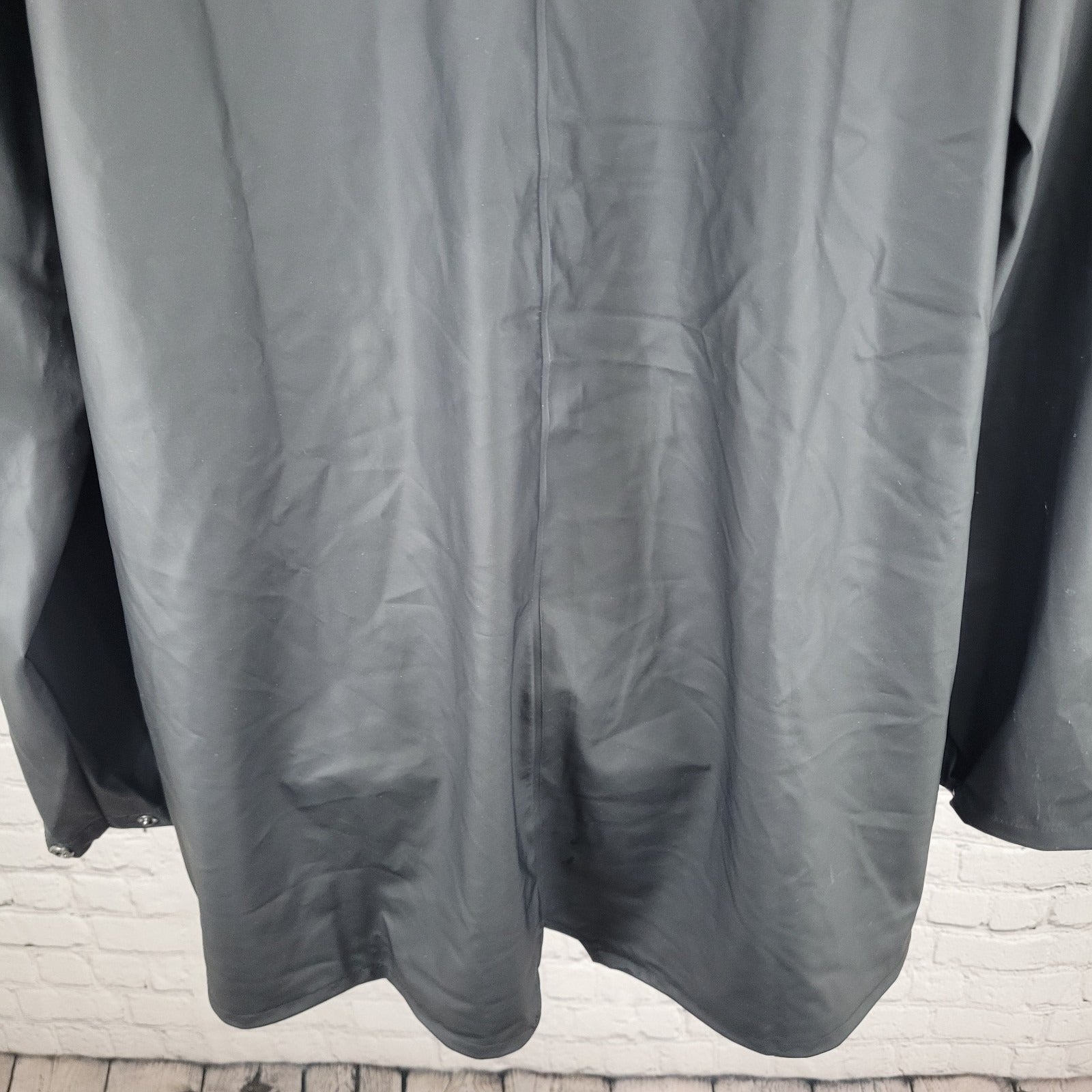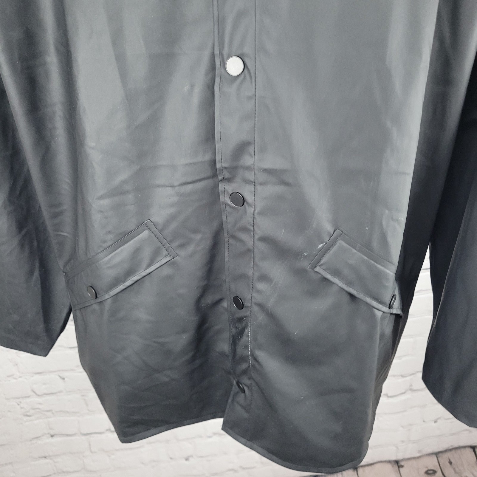 The T Mobile Advertising Black RAINS Hooded Lightweight Rain Jacket Coat in size XL is a stylish and practical choice for men looking for a durable and versatile outerwear option. This rain coat by RAINS features a snap closure, making it easy to put on and take off. The black color and sleek design make it a versatile piece that can be worn in various settings, while the lightweight construction ensures comfort and ease of movement. Perfect for staying dry on rainy days, this coat is a must-have for any man's wardrobe.