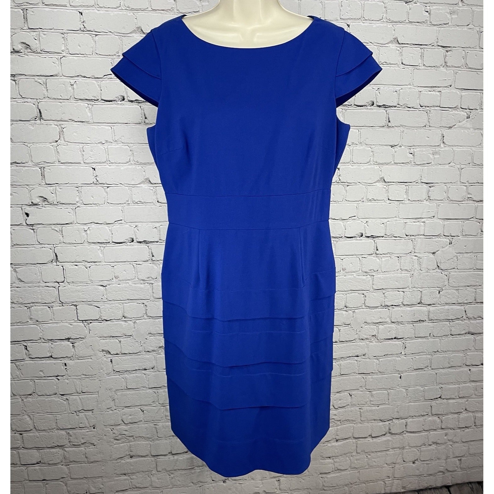 Tahari Arthur S Levine Blue Layered Short Sleeve Zipped Stretch Sheath Dress 12