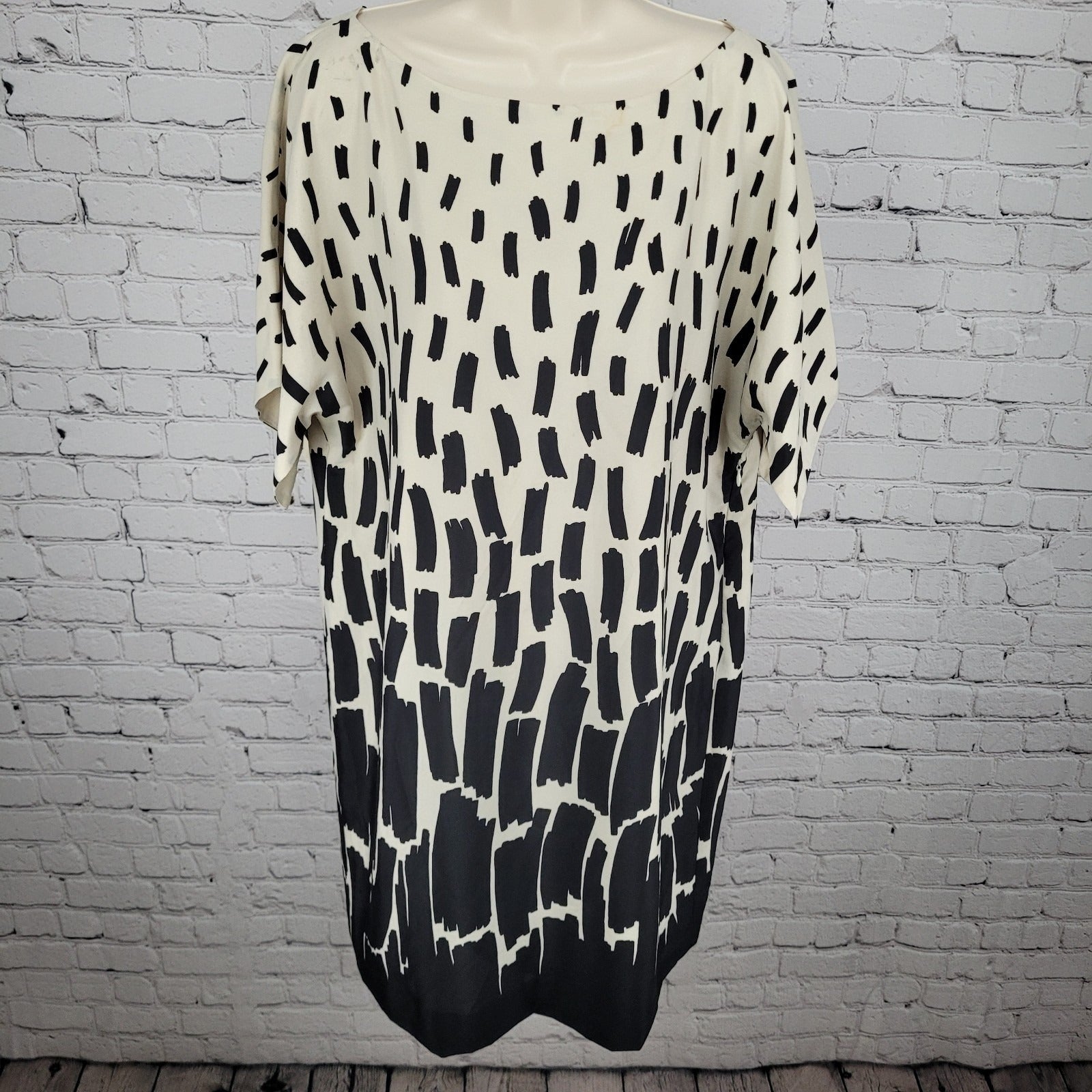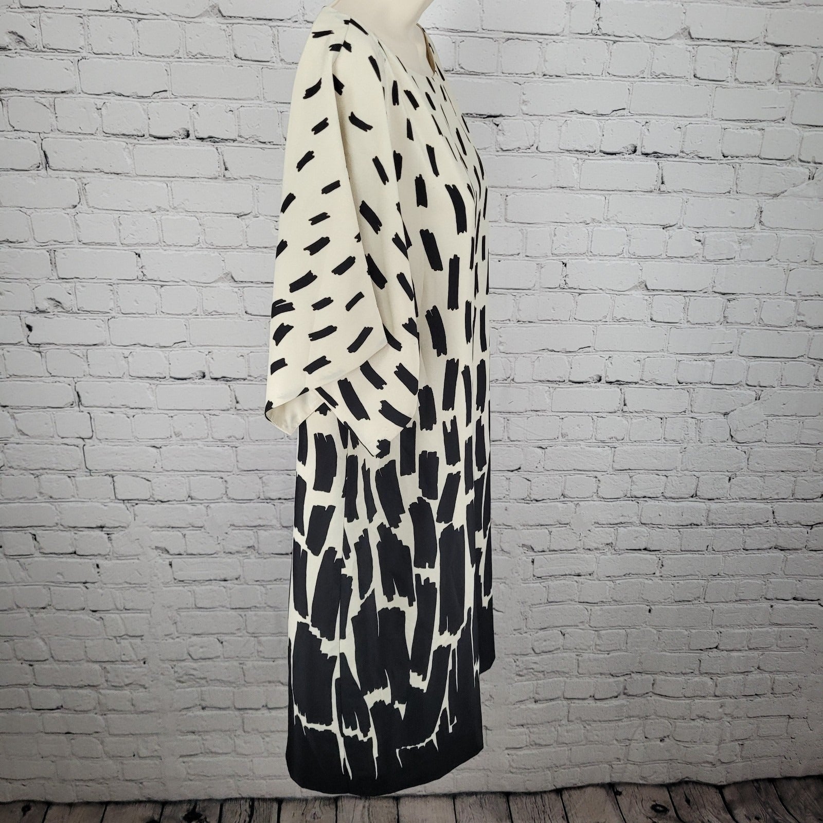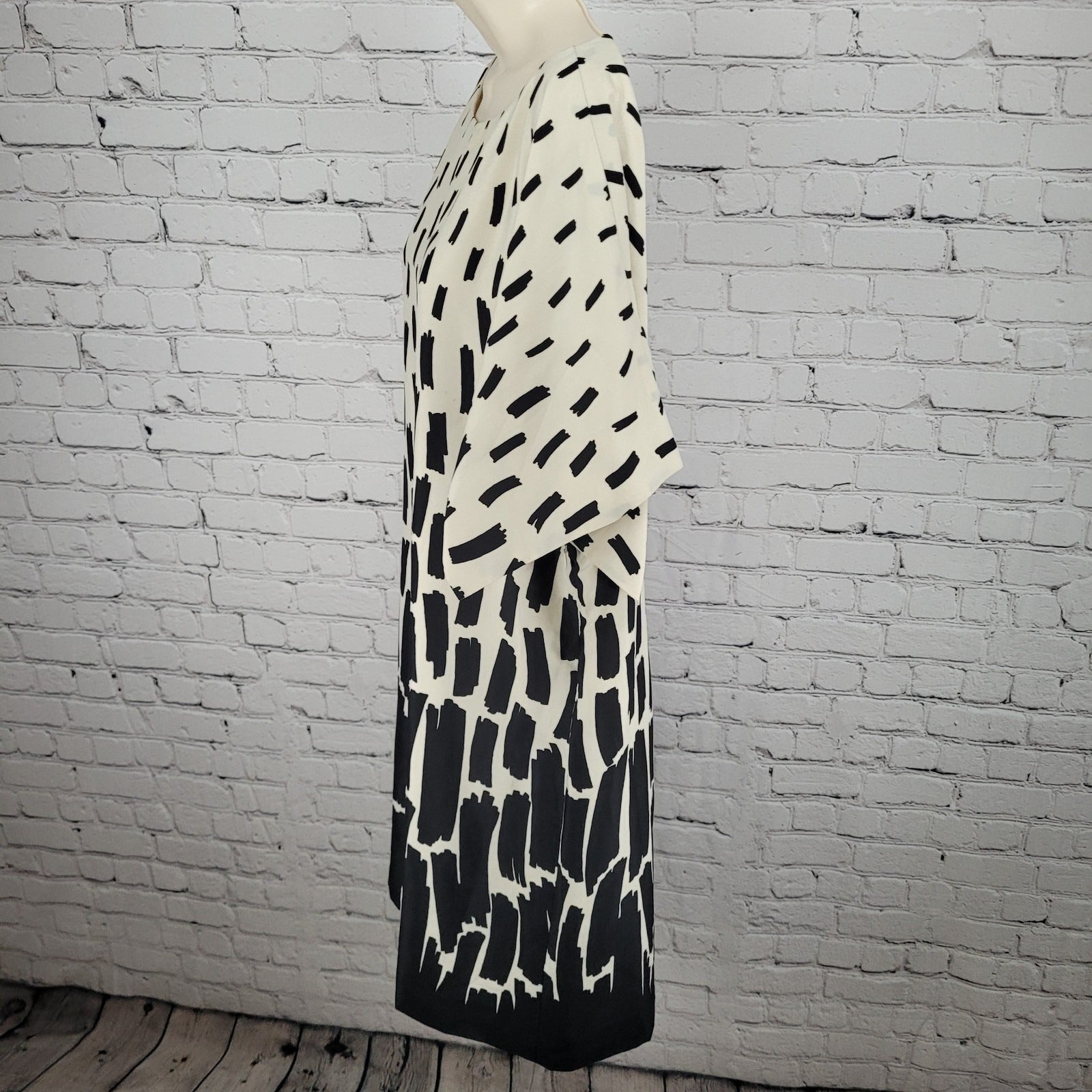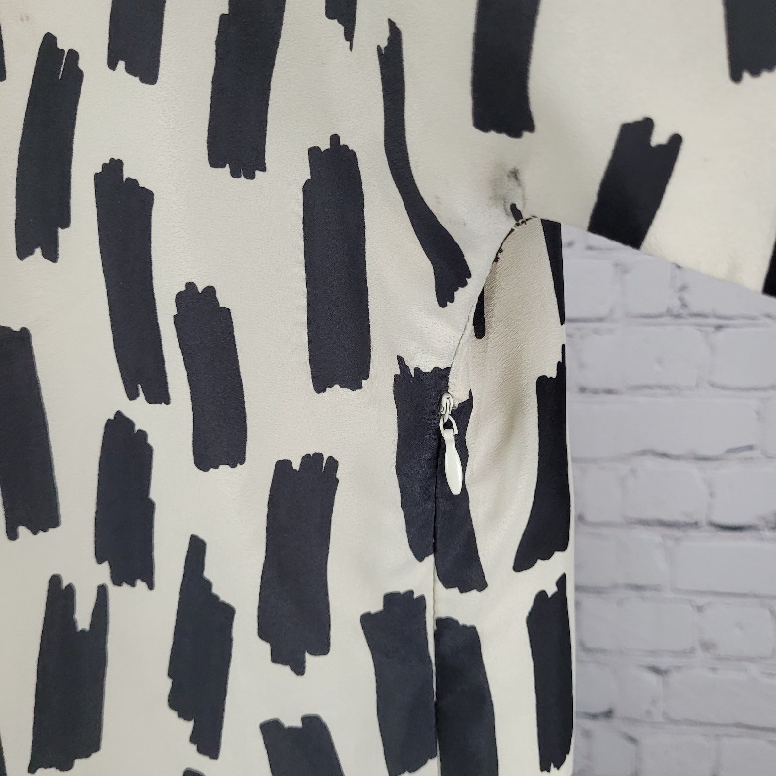 Tahari Beige & Black Printed Flutter Sleeve Lined Zipped Shift Dress Size 12
