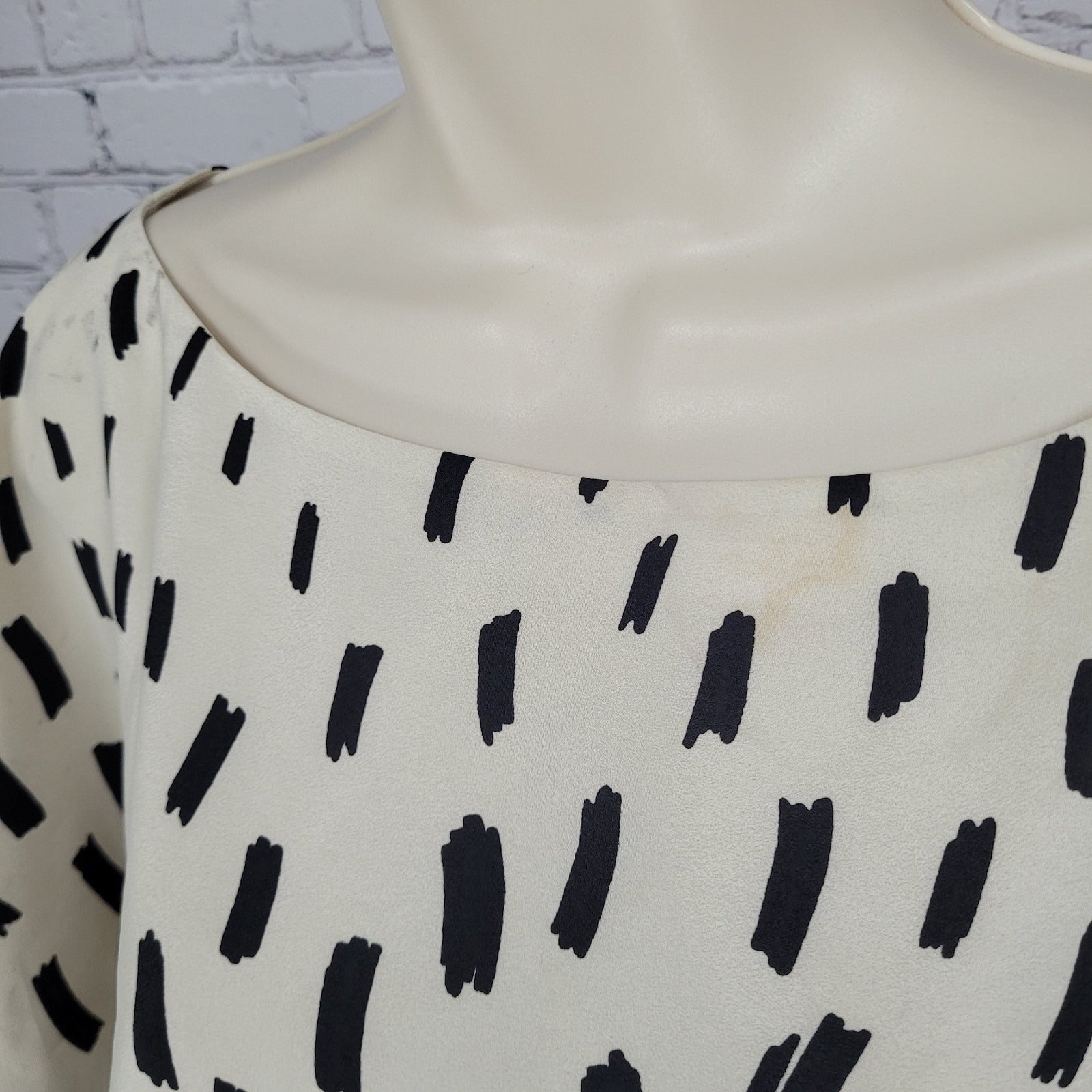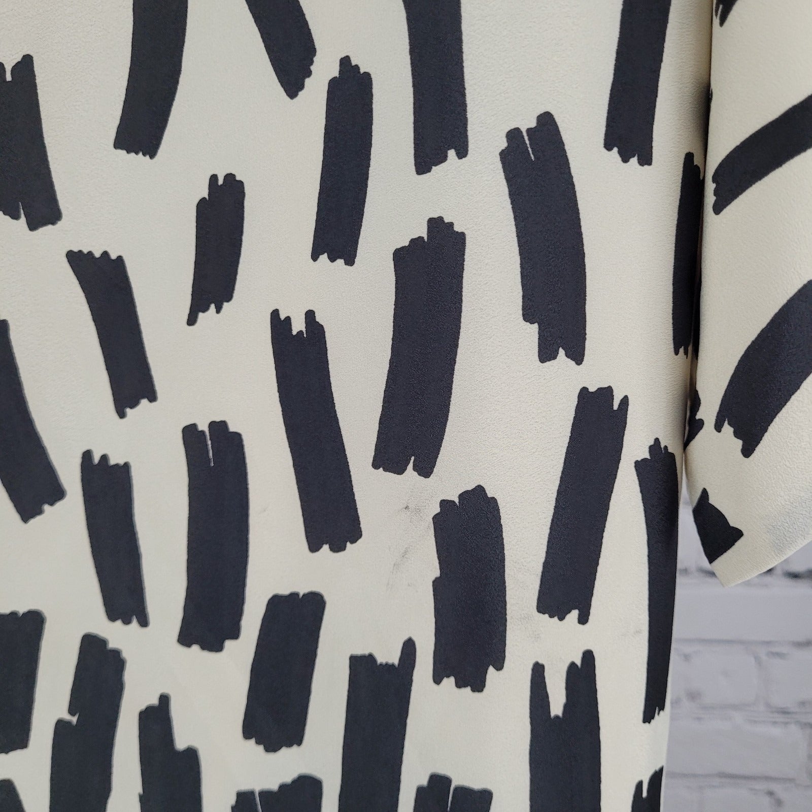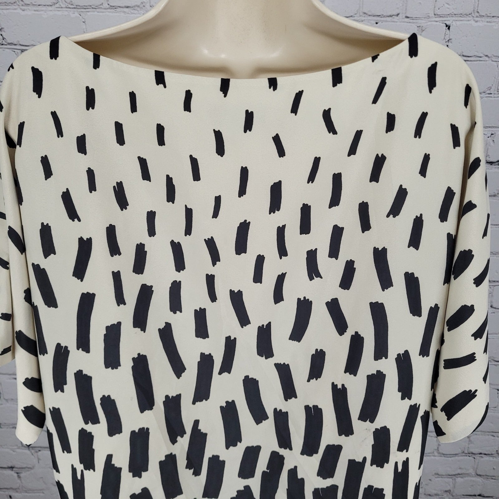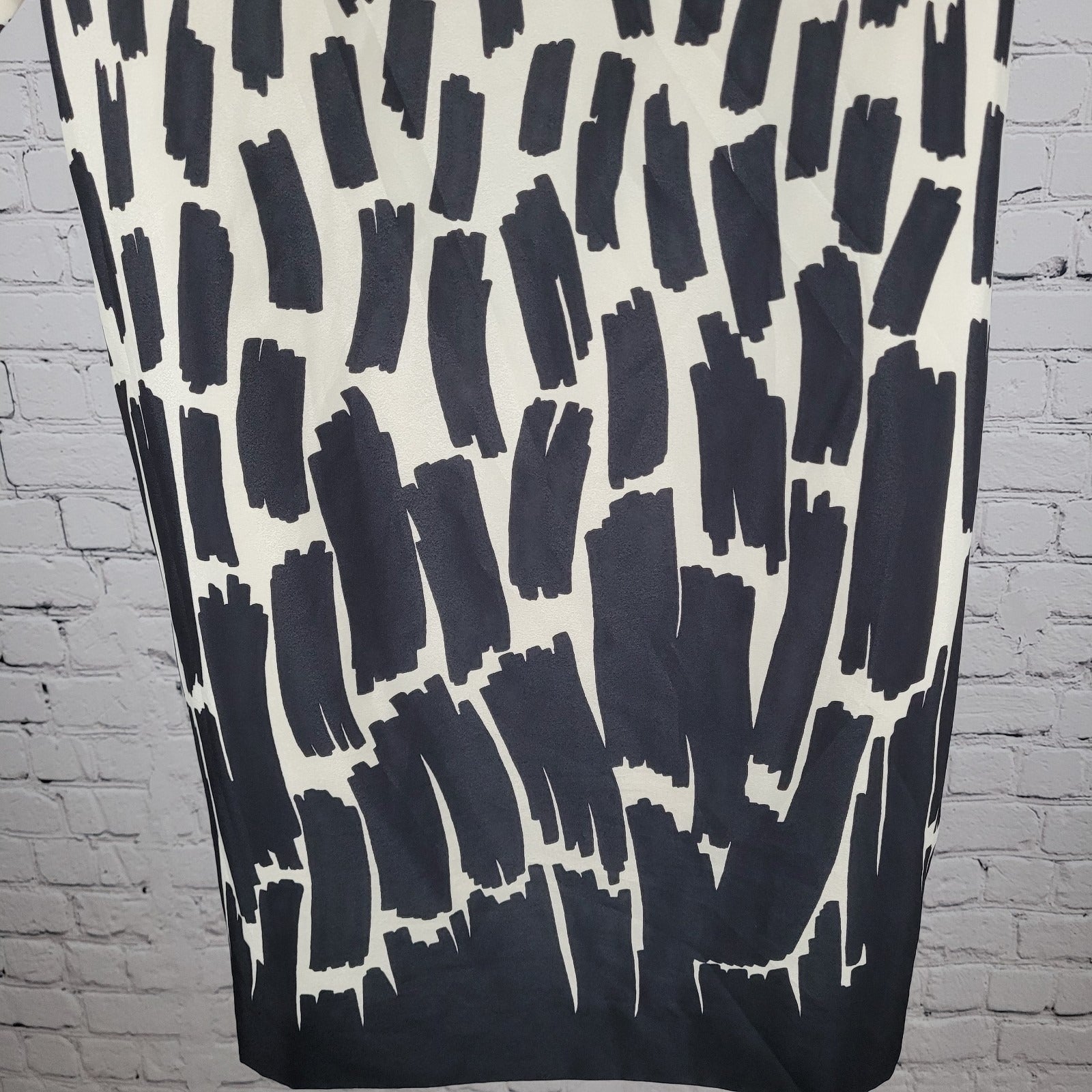 Tahari Beige & Black Printed Flutter Sleeve Lined Zipped Shift Dress Size 12