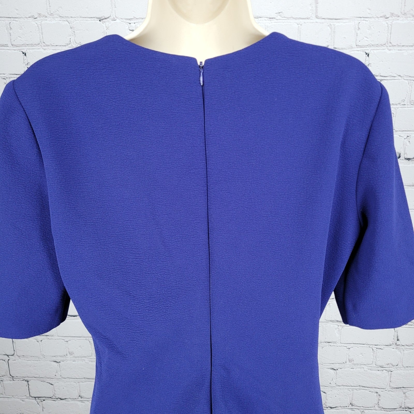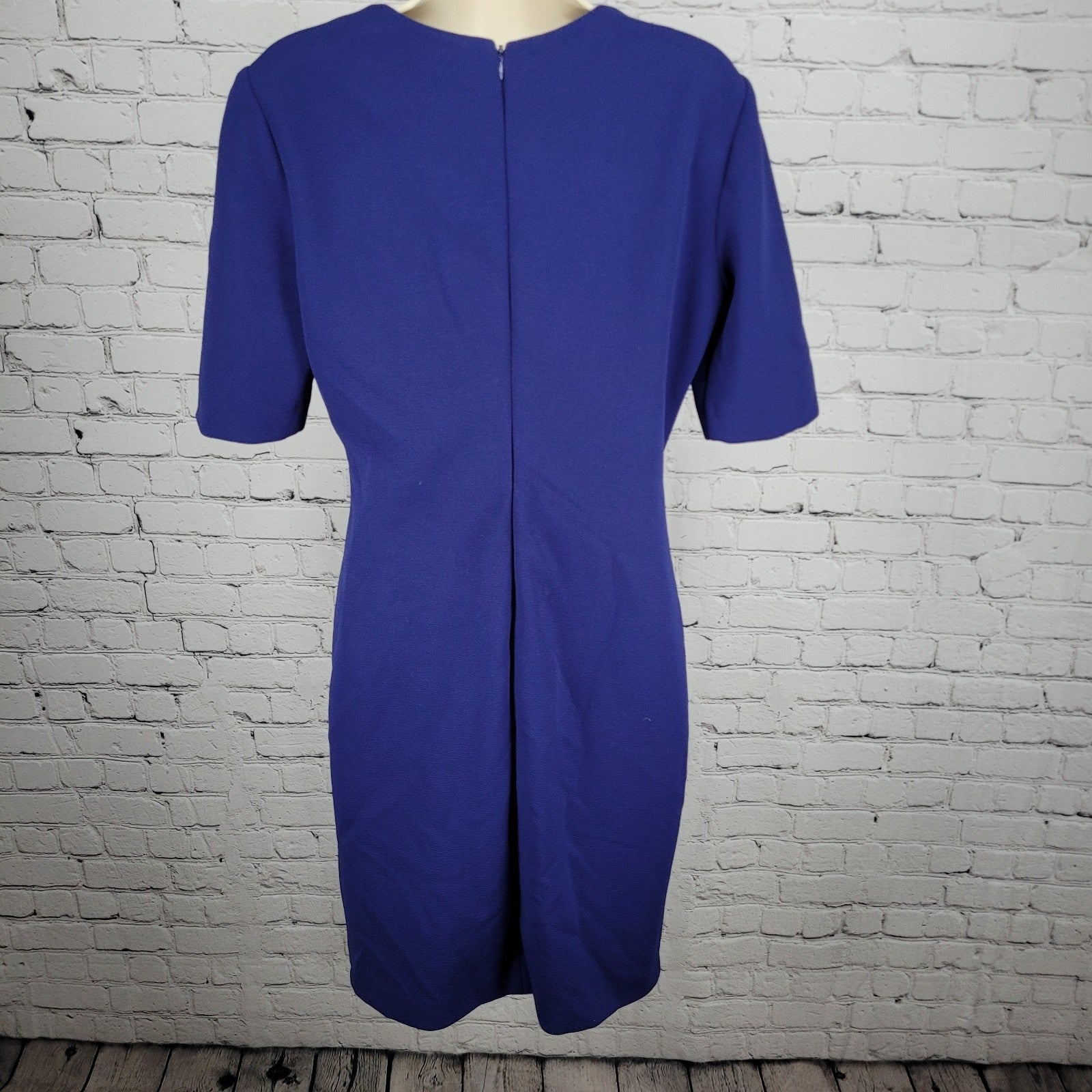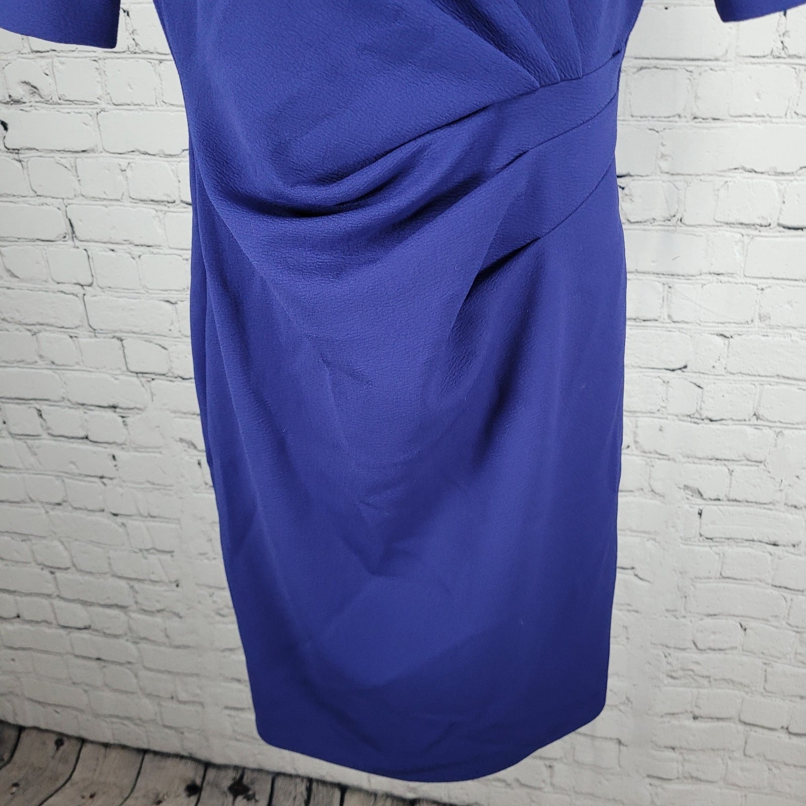 Tahari Blue Short Sleeve Pleated Gathered Waist Stretch Sheath Dress Size 6