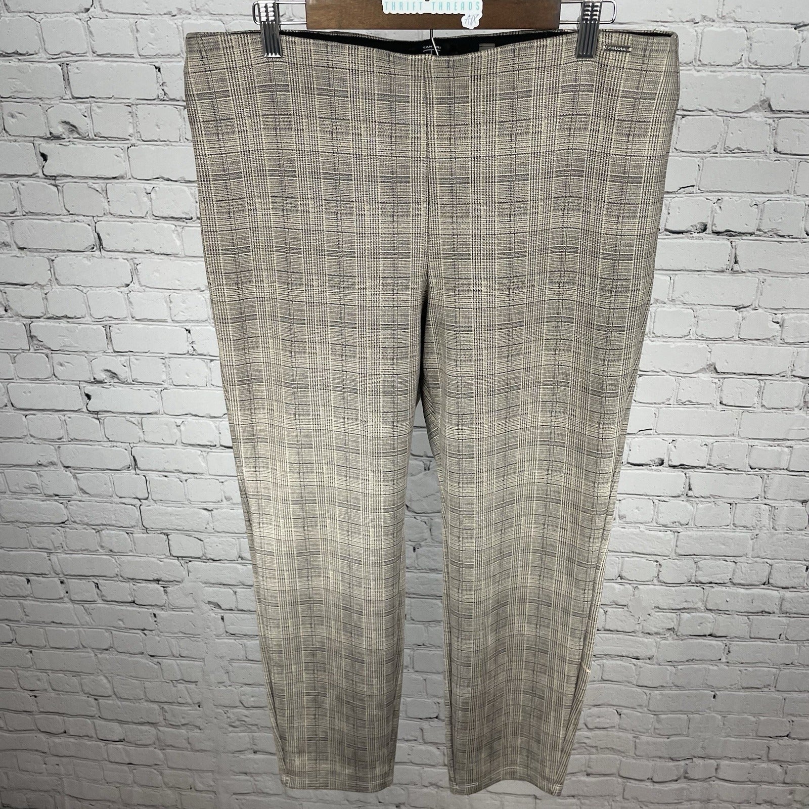 Tahari Tan Check Soft Faux Suede Legging Tummy Control Pants Size XL (35x28)