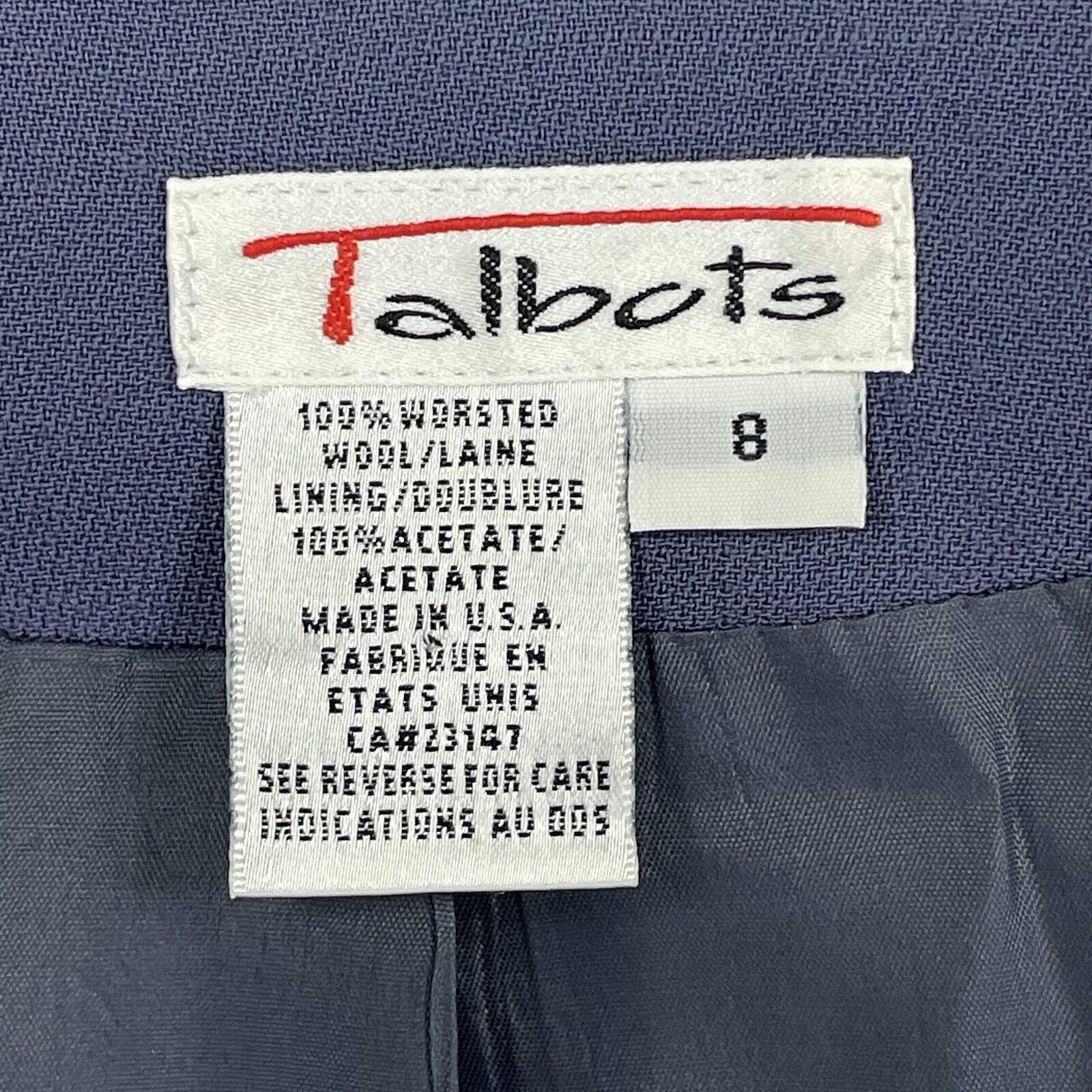 Talbots Blue 100% Worsted Wool Blazer Jacket Pockets 2 Button Lined USA Size 8