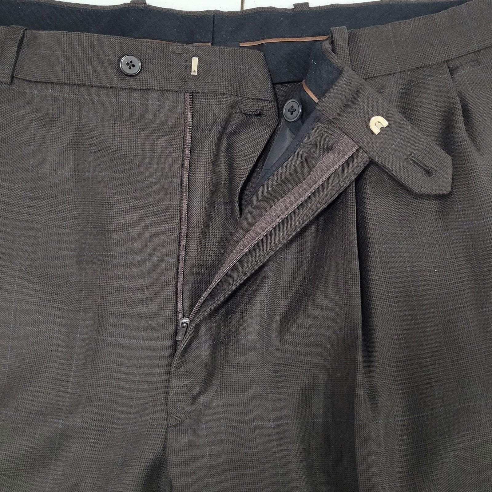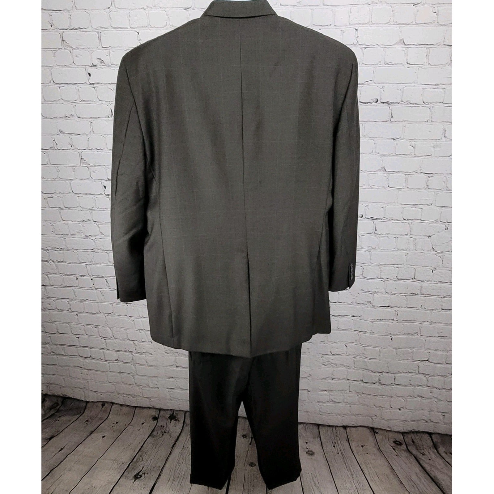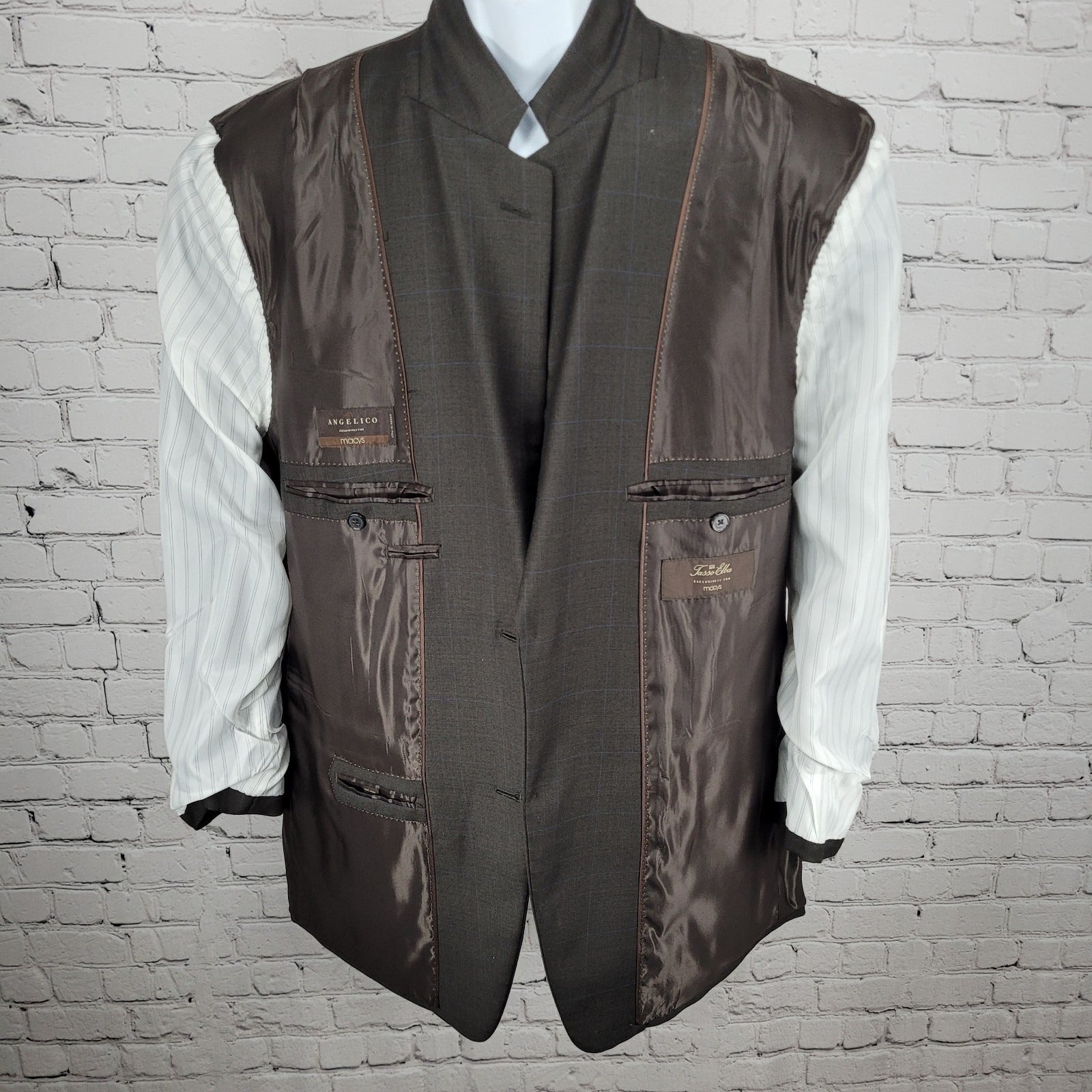 Tasso Elba Brown 100% Wool Angelico Full Suit Set Jacket 46R Pants 40R 40x28
