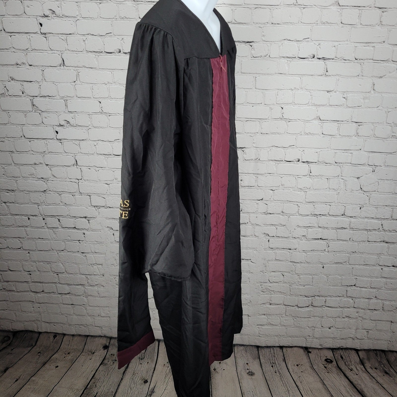 The Texas State University Black Maroon Front Zip College Graduation Gown is a prestigious and timeless piece perfect for college graduates. The design combines traditional elements with modern accents, making it a unique and stylish choice for alumni. The front zip detail adds a modern touch to the classic maroon color, representing the pride and accomplishment of graduating from Texas State University. Perfect for collectors or those looking to commemorate their educational journey, this gown is a must-have for any graduate.
