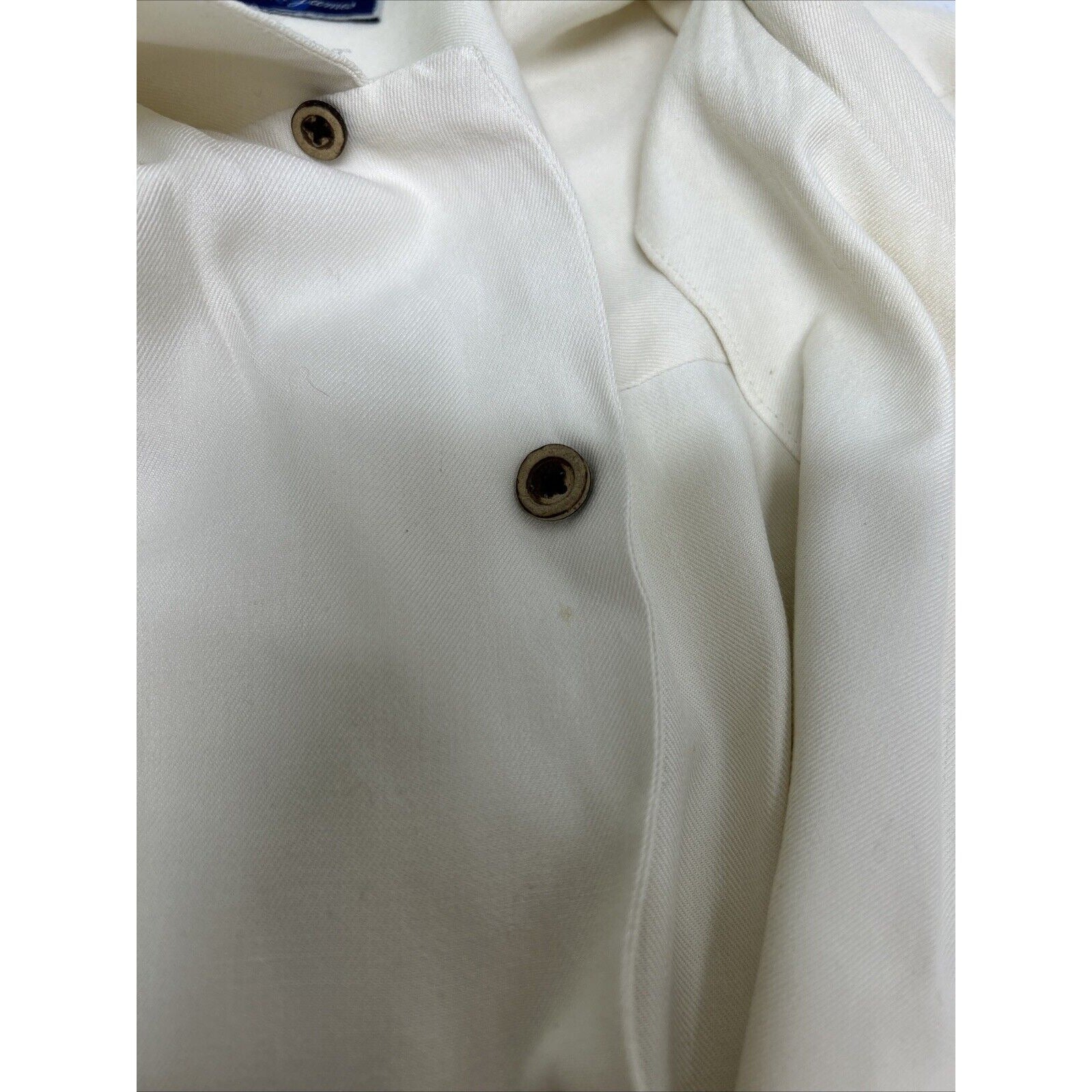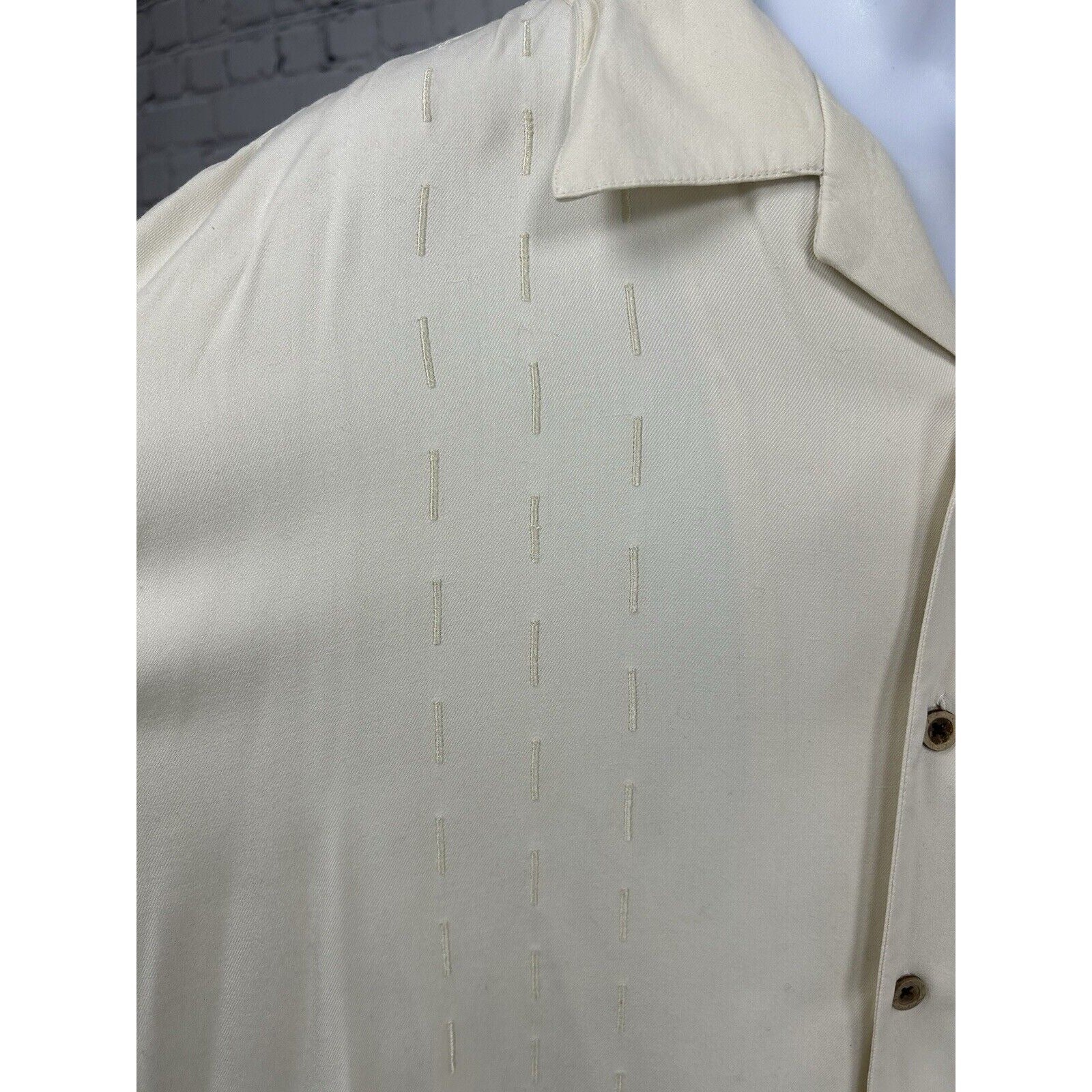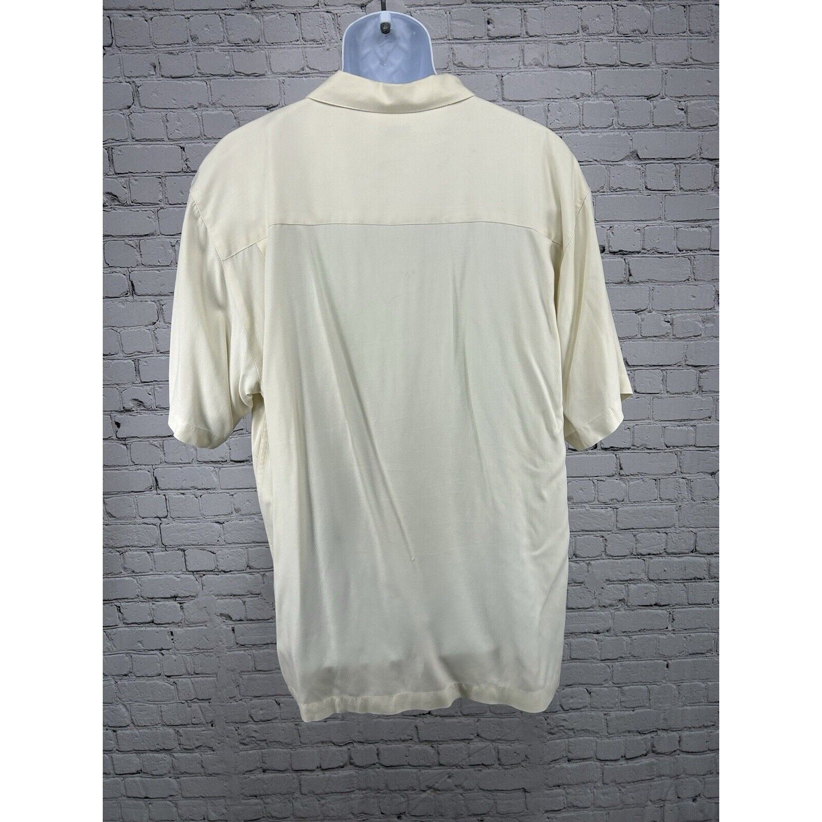 Tom James Embroidered Ivory Short Sleeve Button Down Silk Blend Shirt Men’s XL