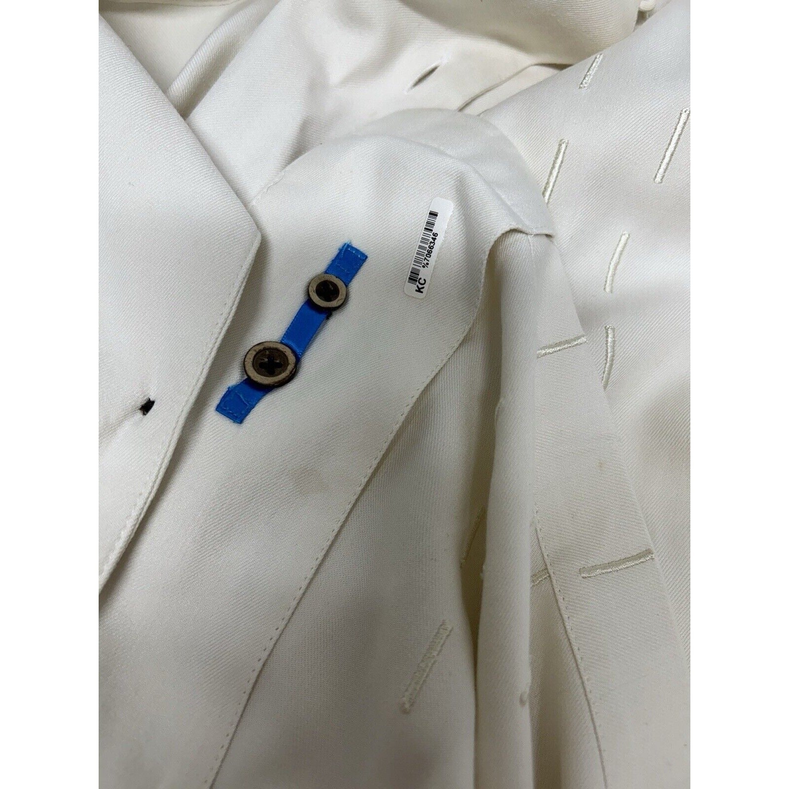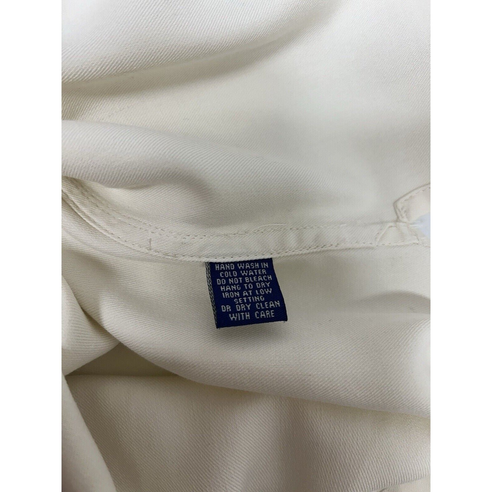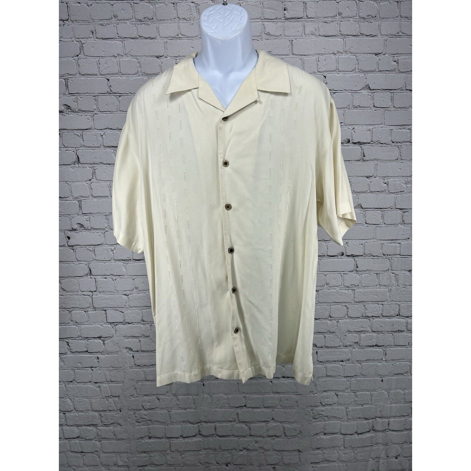 Tom James Embroidered Ivory Short Sleeve Button Down Silk Blend Shirt Men’s XL