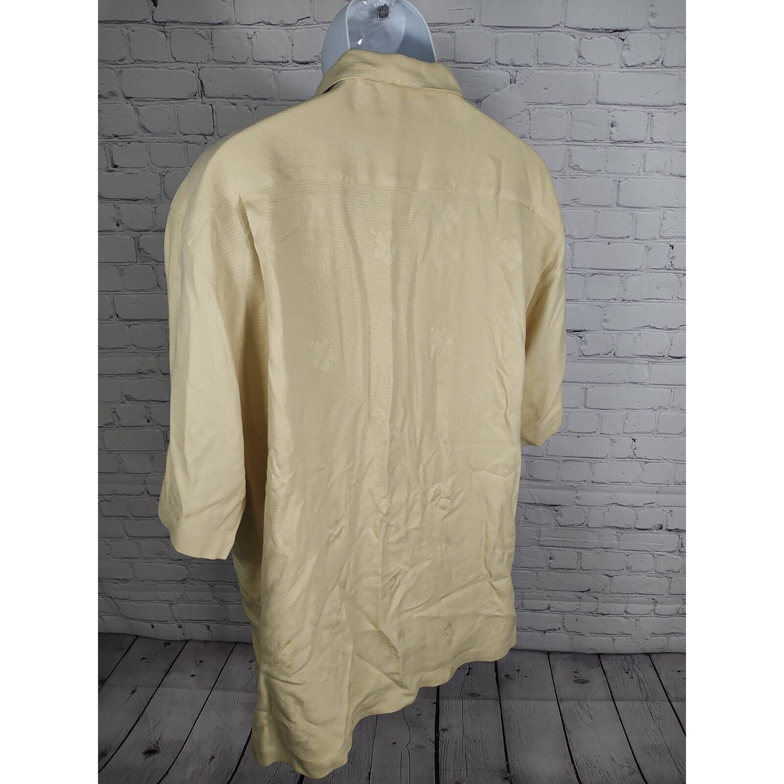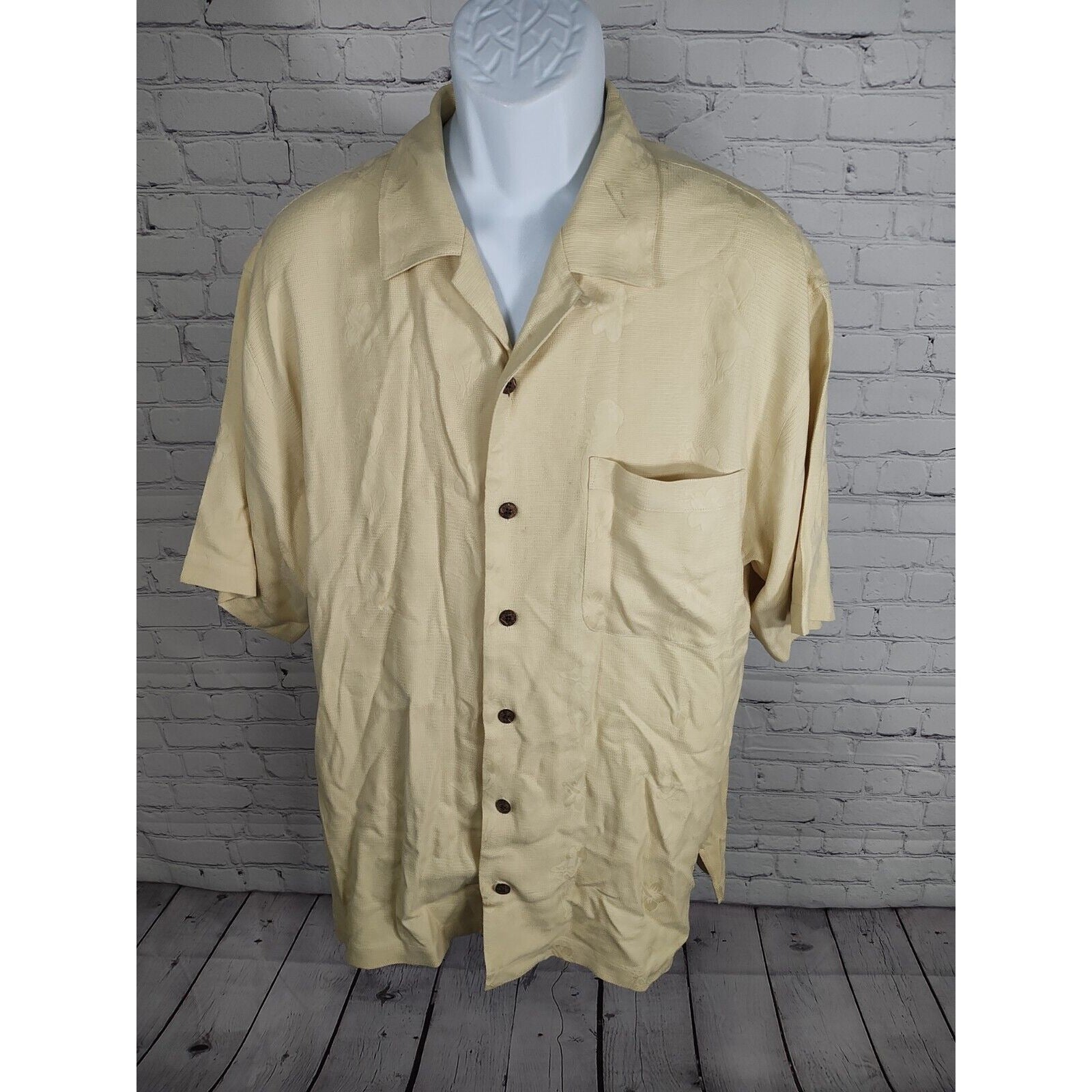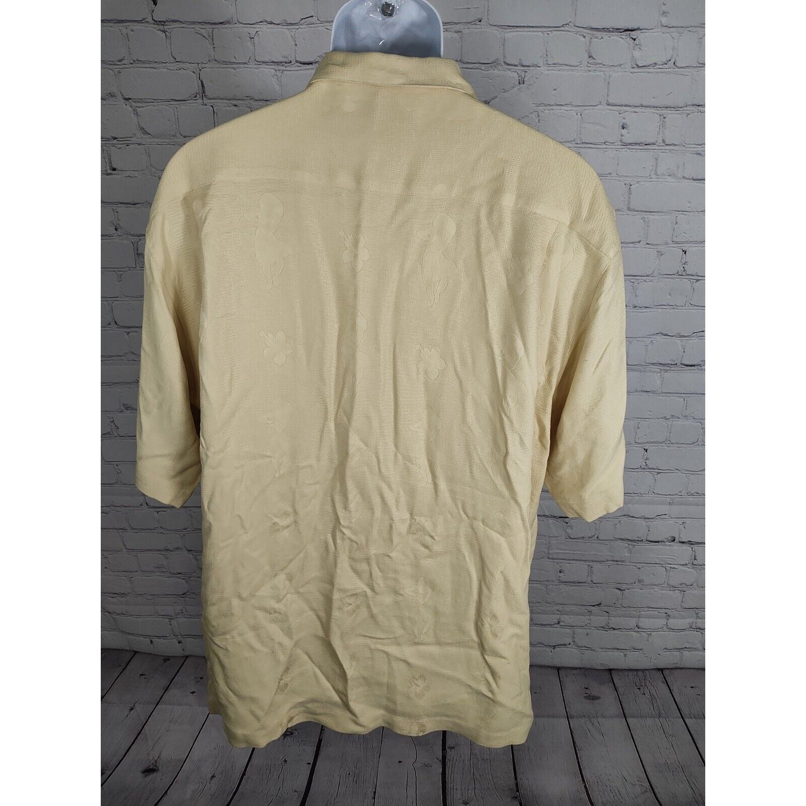 Tommy Bahama 100% Silk Hawaiian Print Button Up Pale Yellow Shirt Size Large L