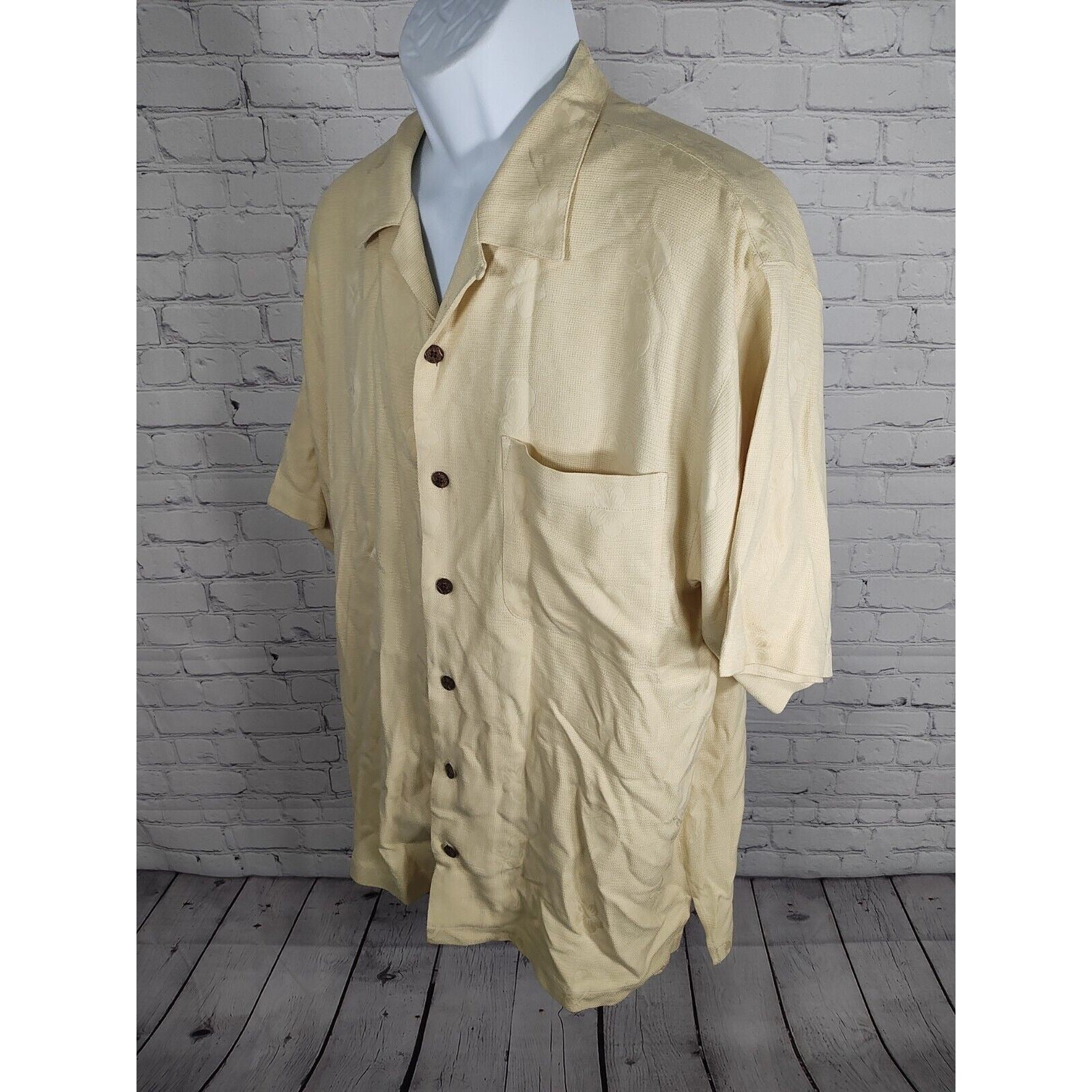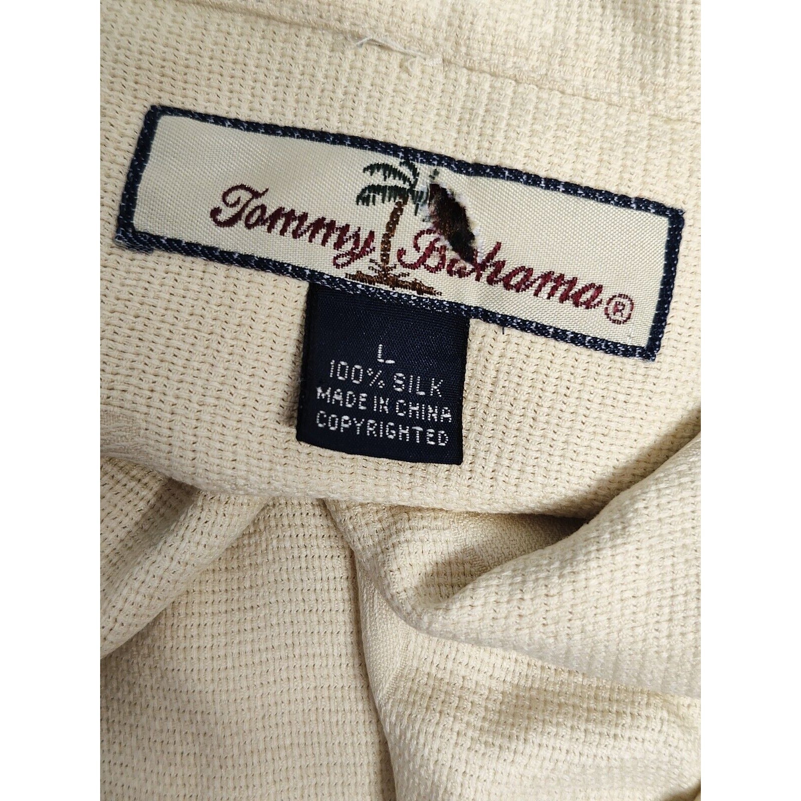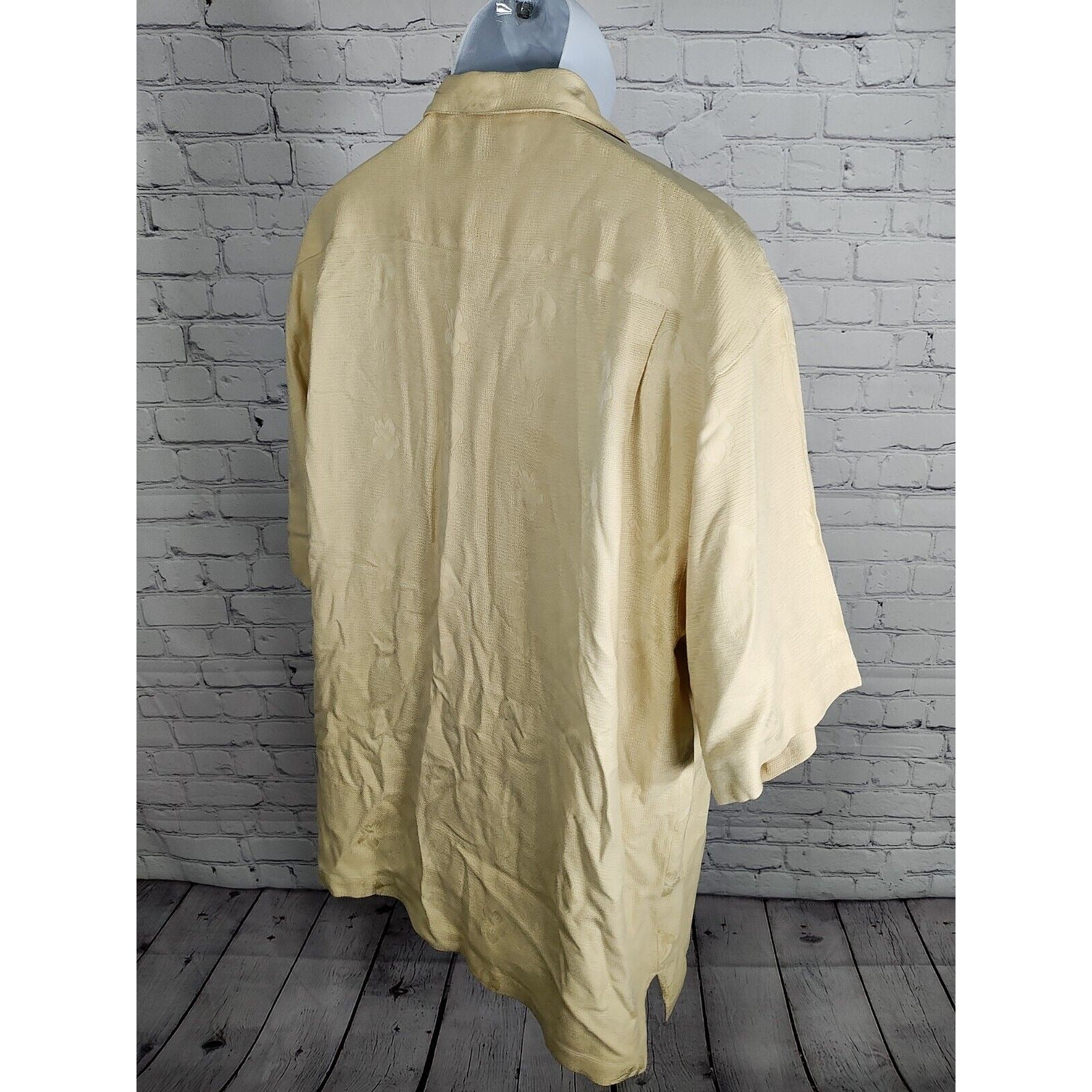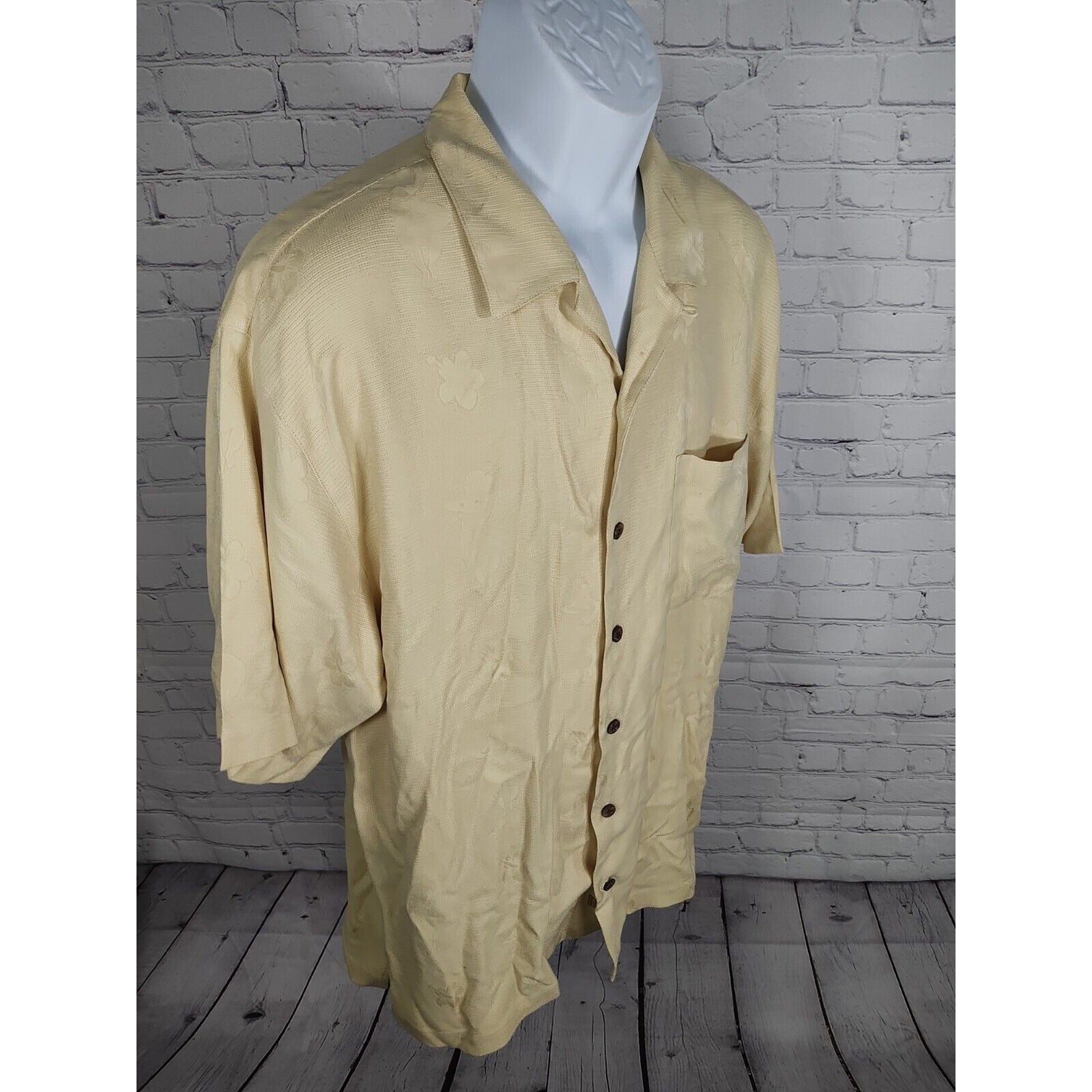 Tommy Bahama 100% Silk Hawaiian Print Button Up Pale Yellow Shirt Size Large L