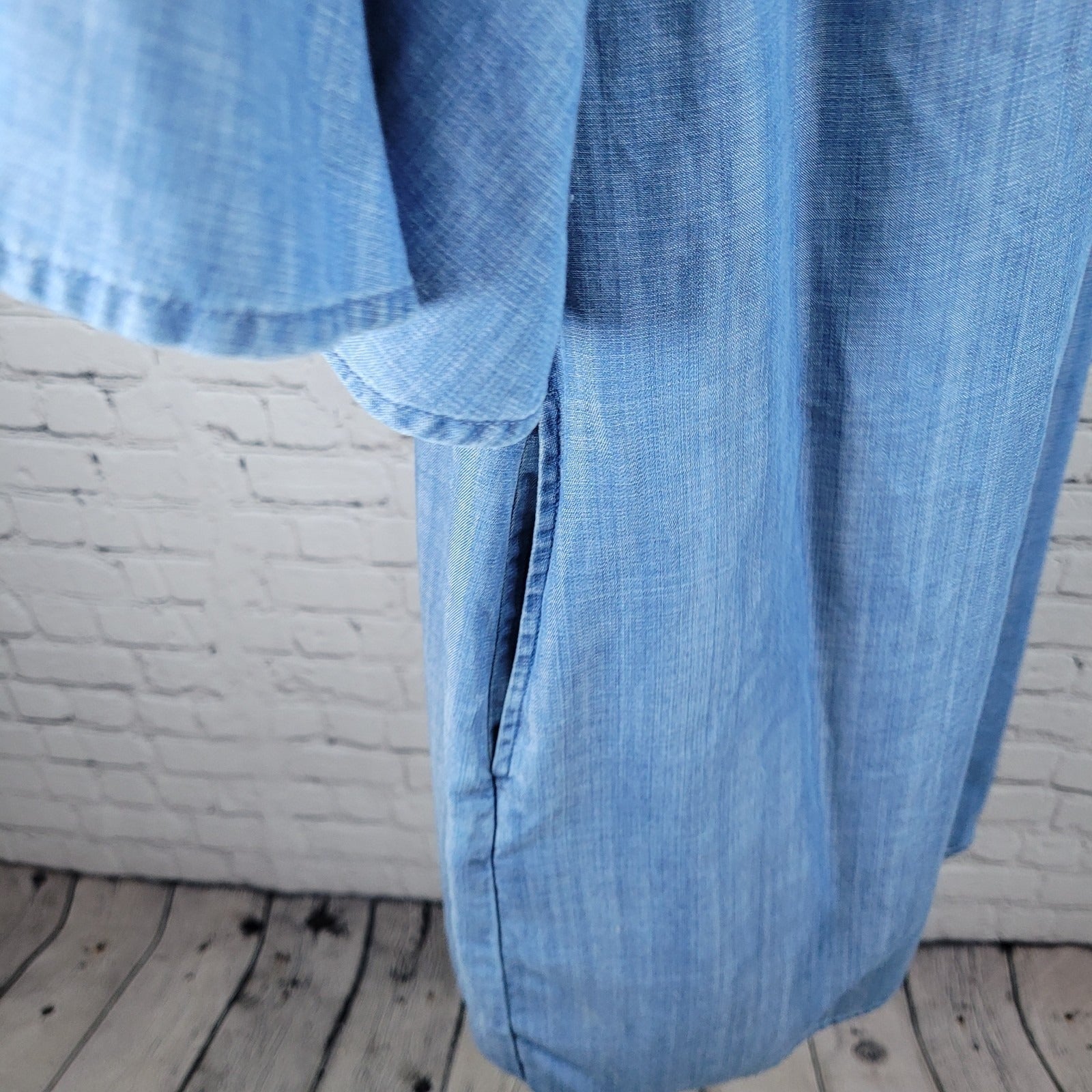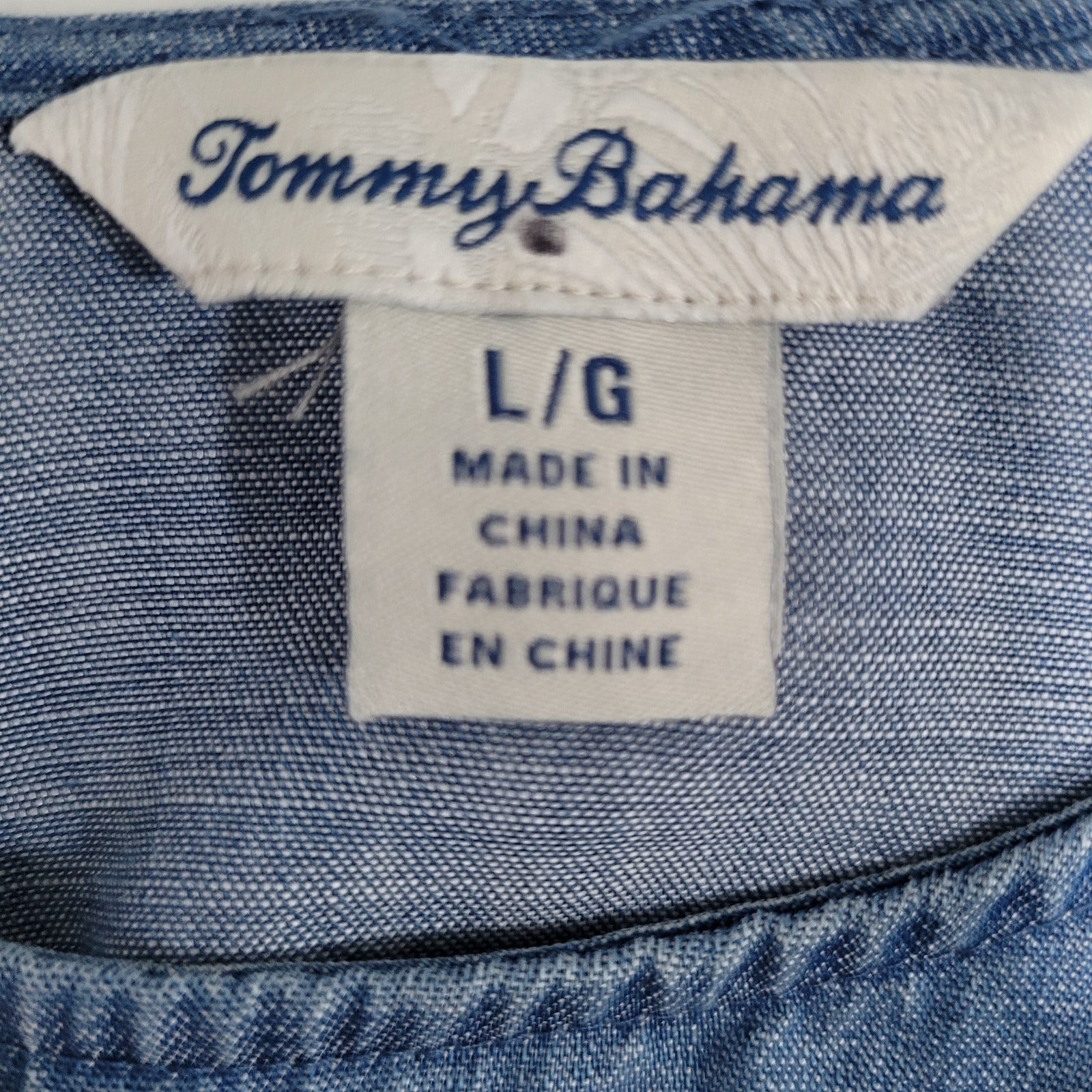 The Tommy Bahama Blue 3/4 Bell Sleeve Pockets Unlined Midi Shift Dress in size Large is a stylish and comfortable dress perfect for any occasion. With its beautiful blue color, bell sleeves, and midi length, this dress exudes a relaxed and elegant vibe. The inclusion of pockets adds both functionality and a touch of practicality to the overall design.
