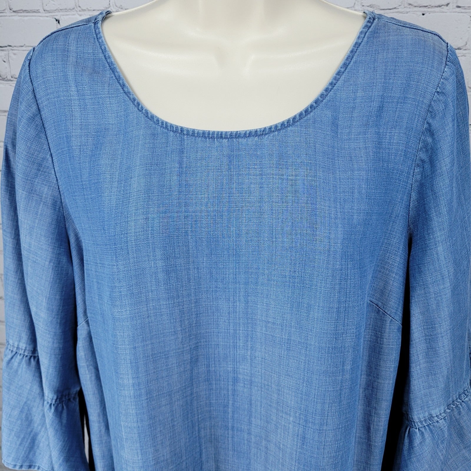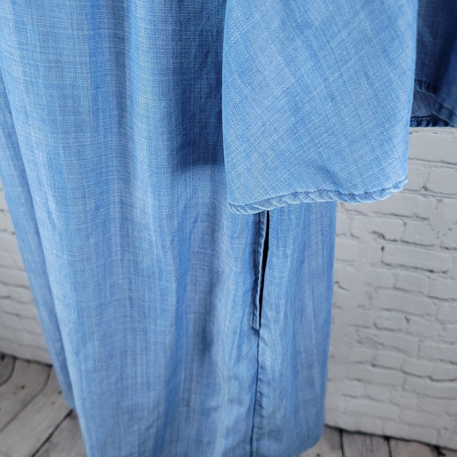 Tommy Bahama Blue 3/4 Bell Sleeve Pockets Unlined Midi Shift Dress Size Large L