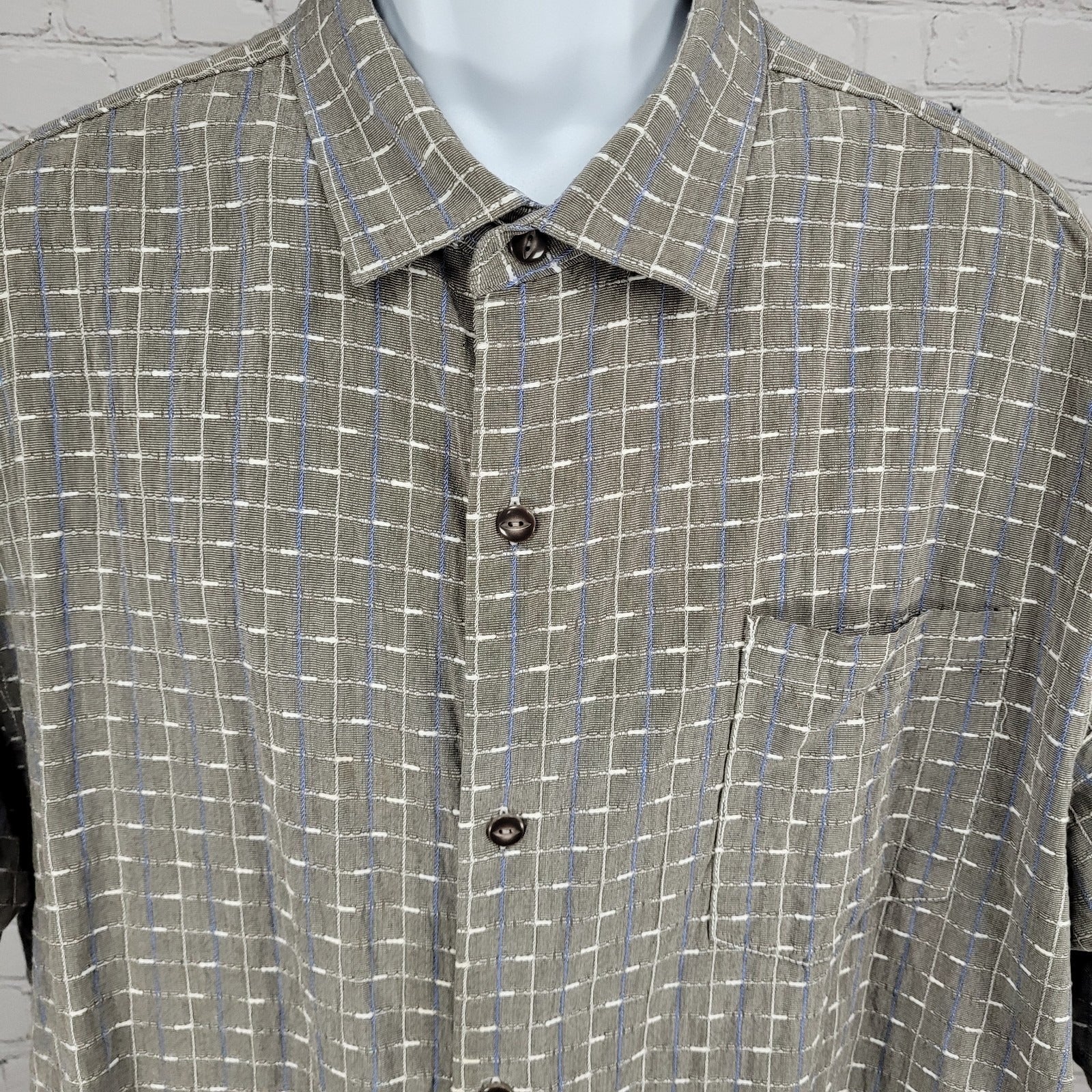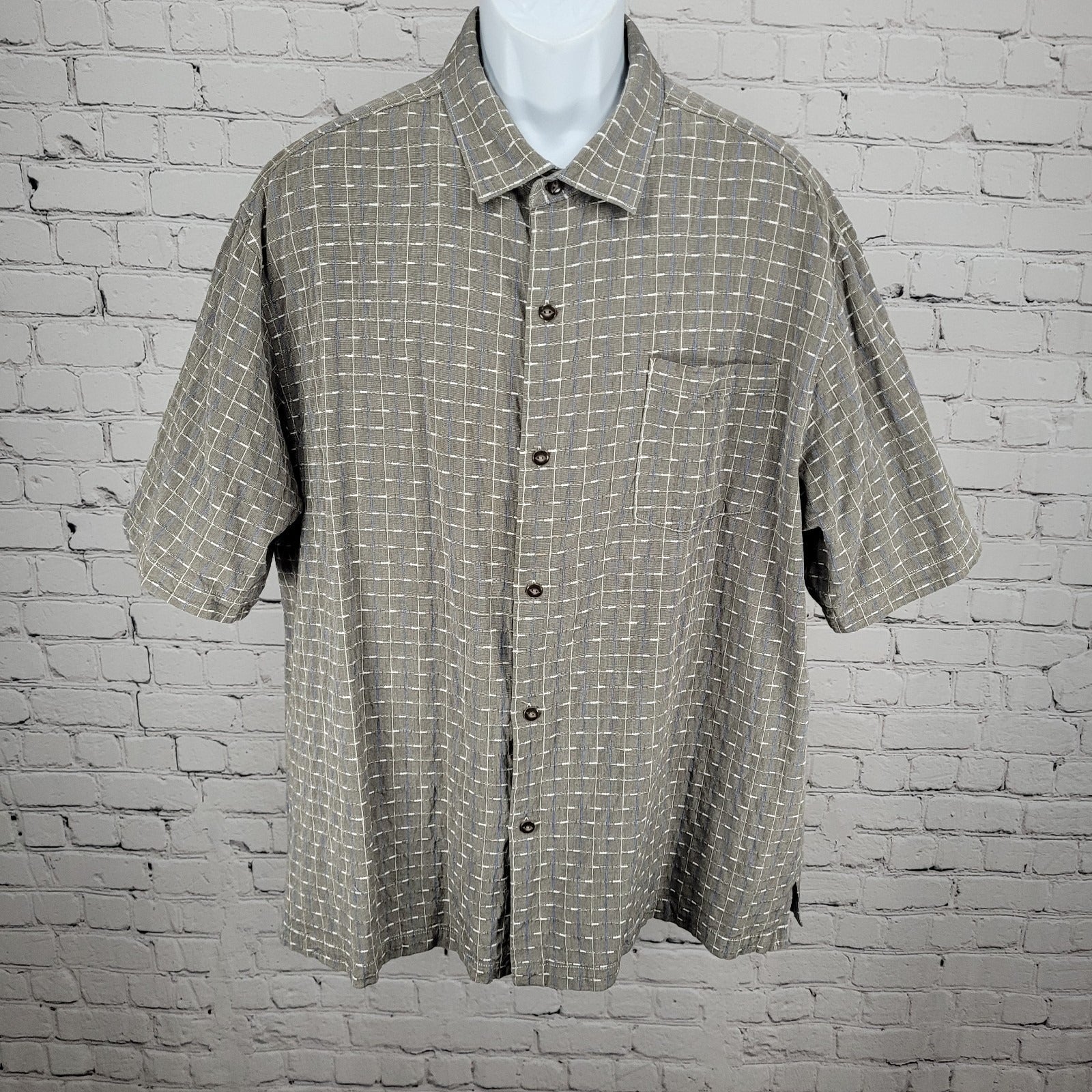 Tommy Bahama Grey Silk Cotton Original Fit Button Up Short Sleeve Shirt XXL