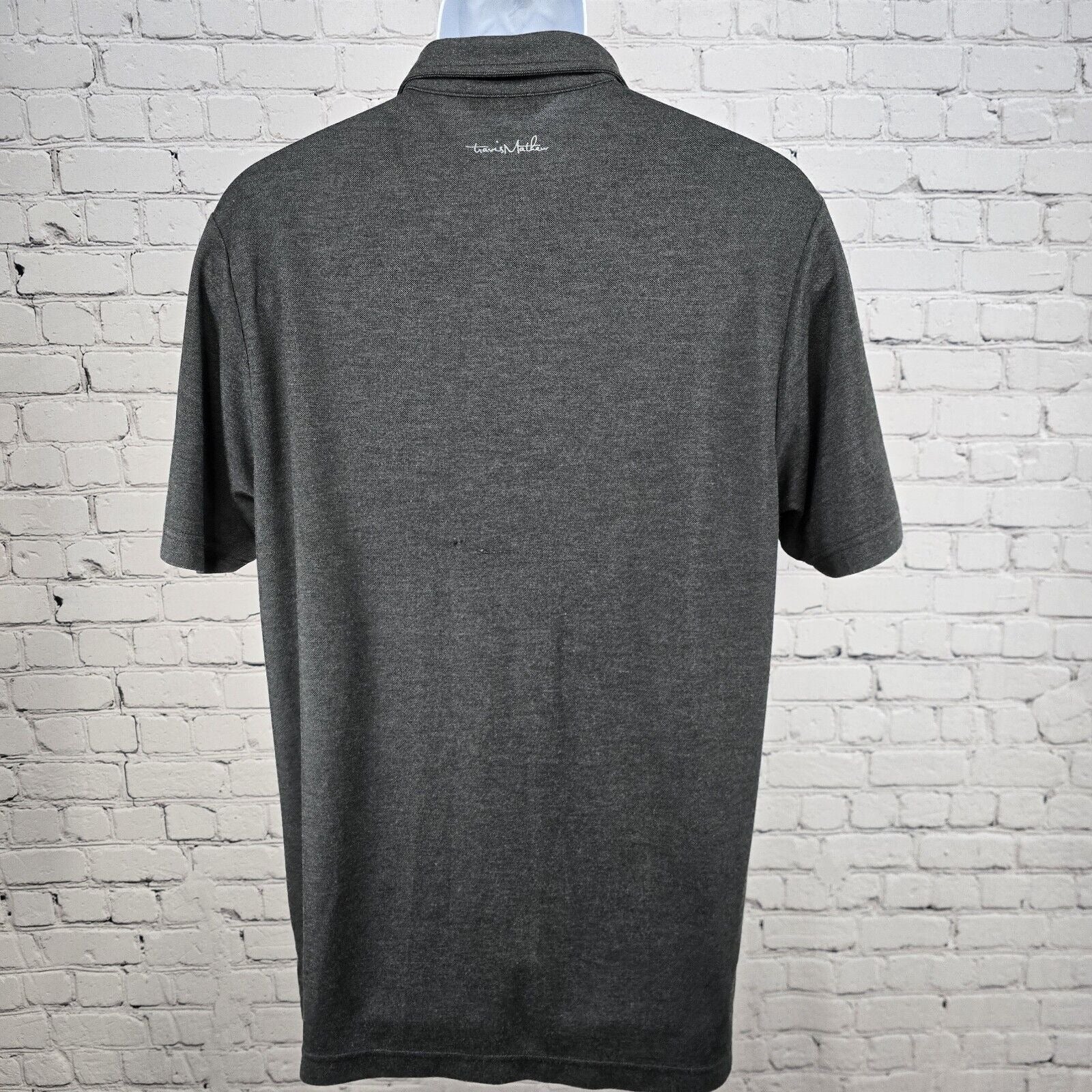 Travis Mathew Button Up Dark Gray Pocketed Polyester Blend Golf Polo Mens Size L