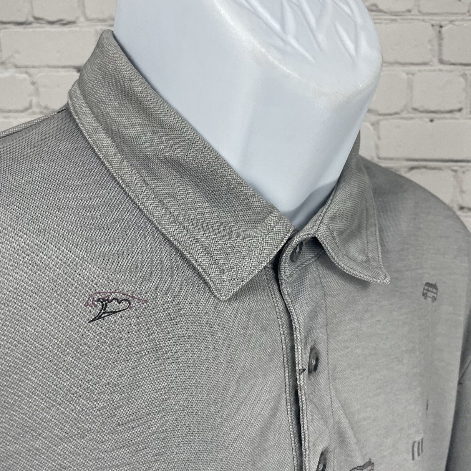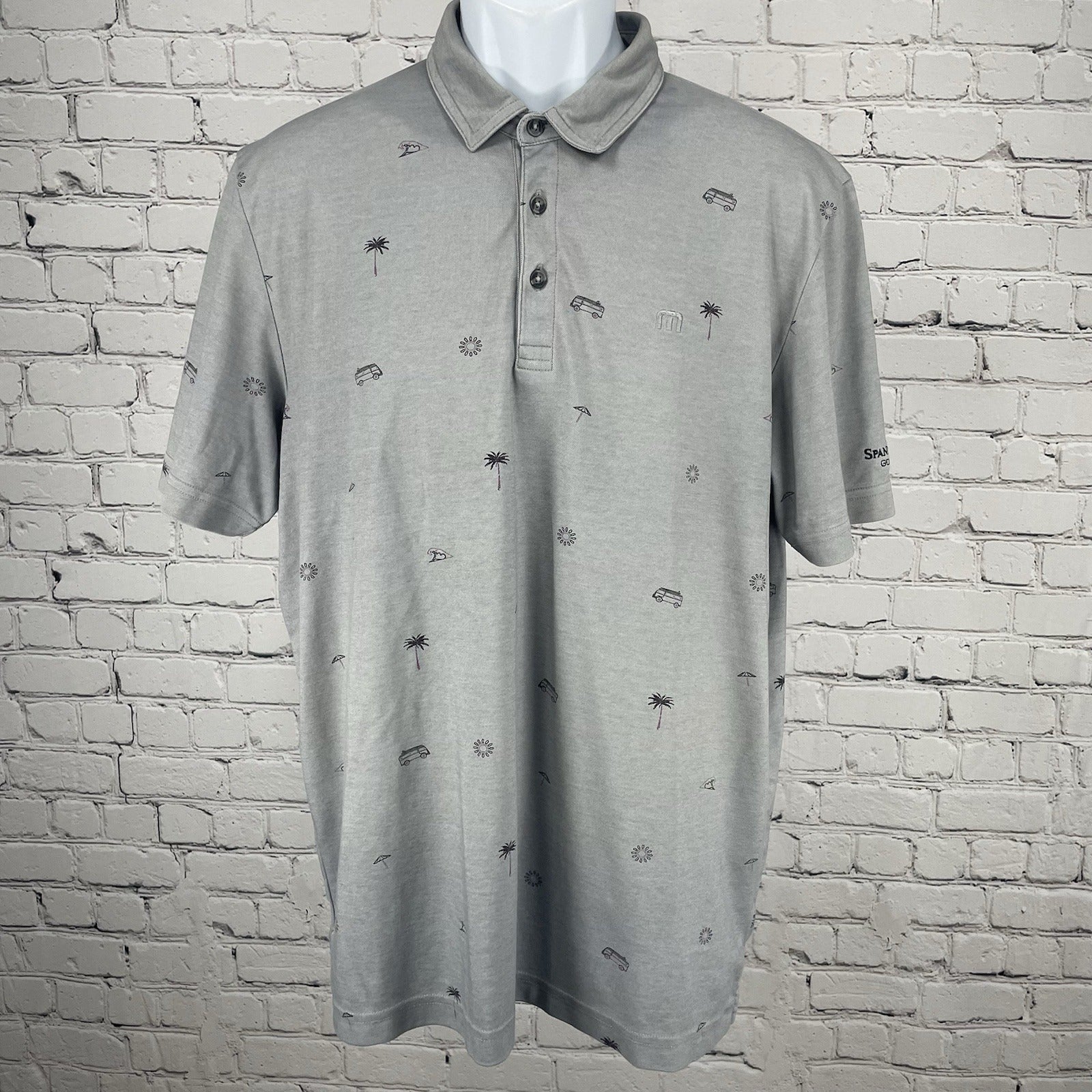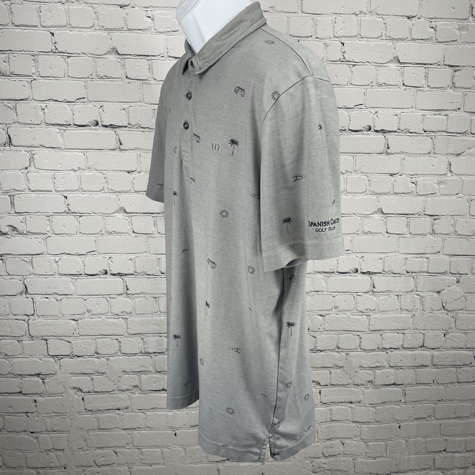 Travis Mathew Grey Spanish Oaks Golf Club Button Short Sleeve Polo Size Large L