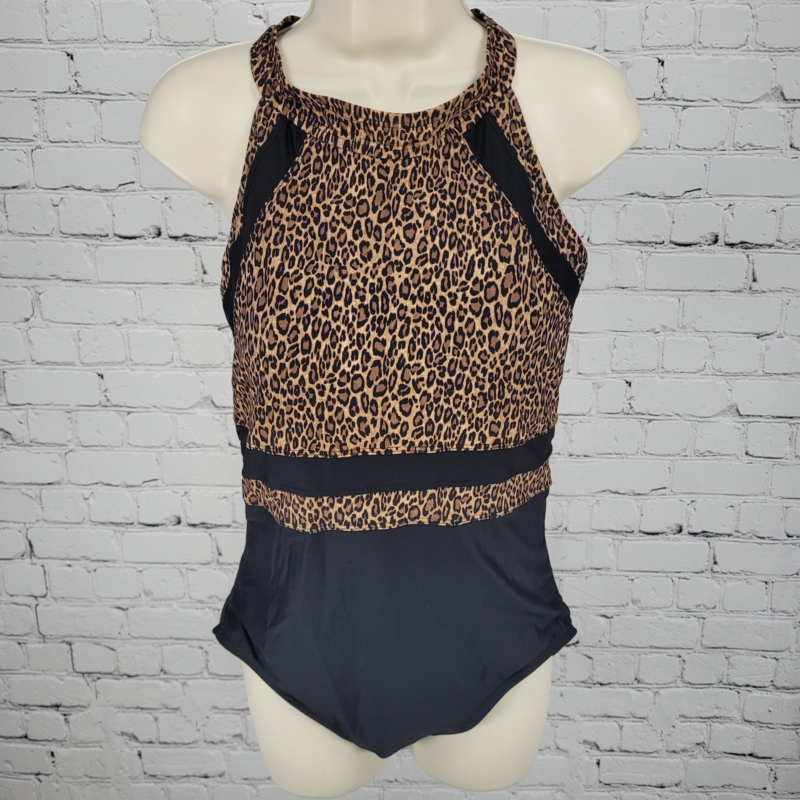 Tribal Sport Brown Leopard Padded Full Coverage One Piece Swimsuit Size Large L