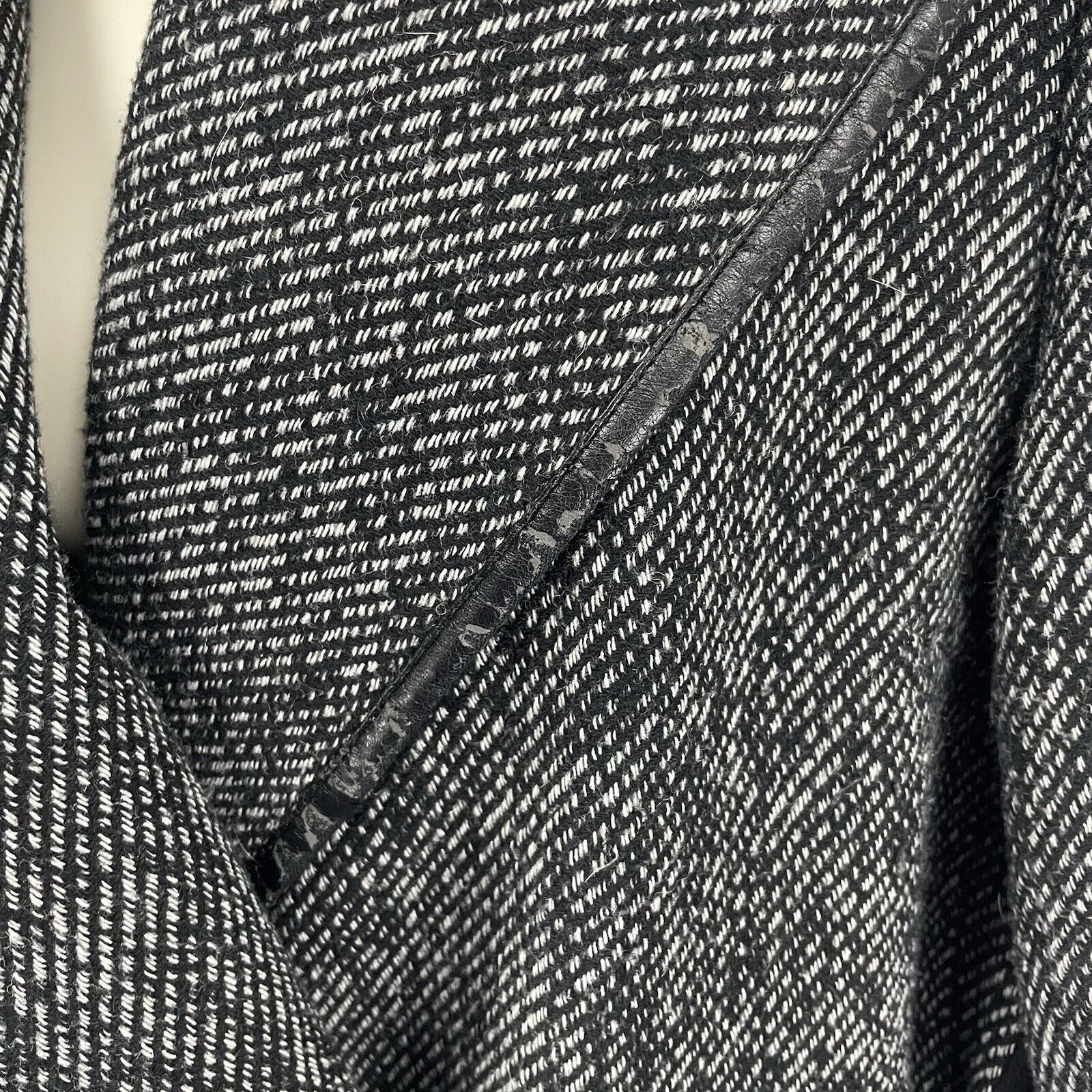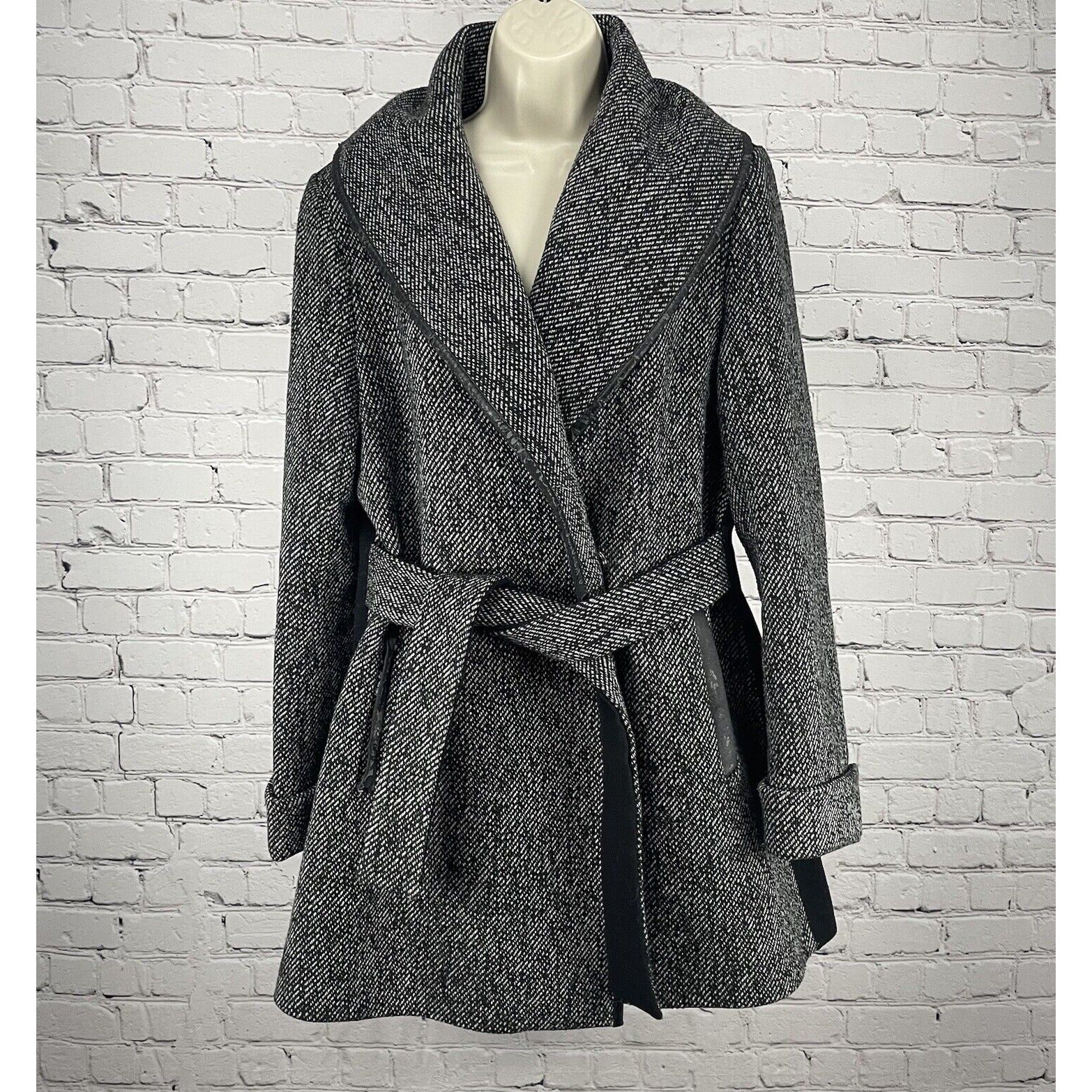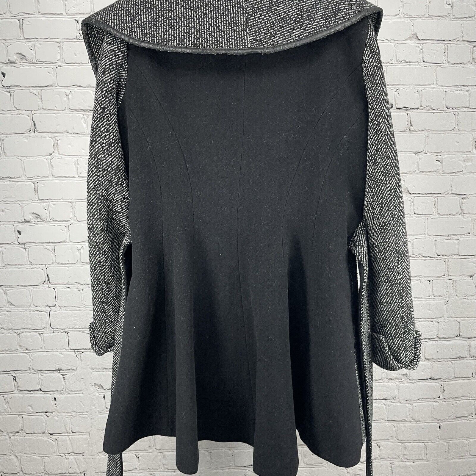 Trina Turk Black Wool Blend Weave Belted Snap Button Wrap Coat Size XL