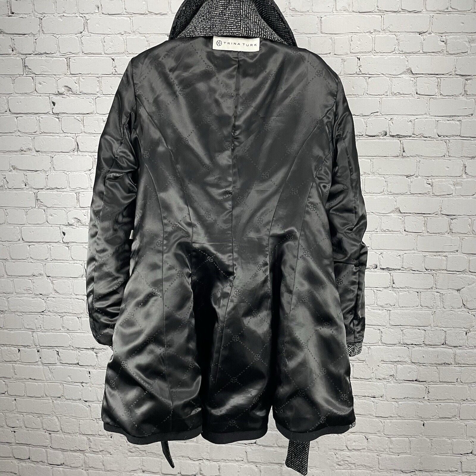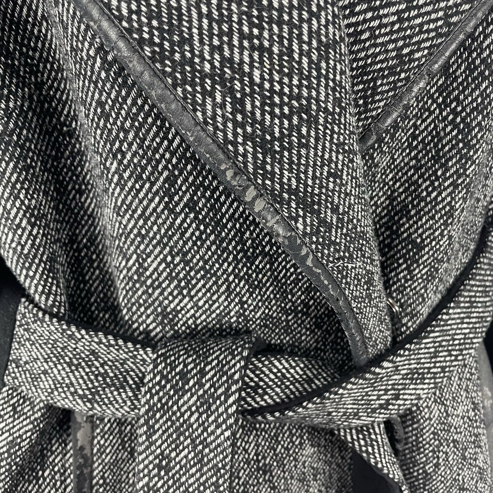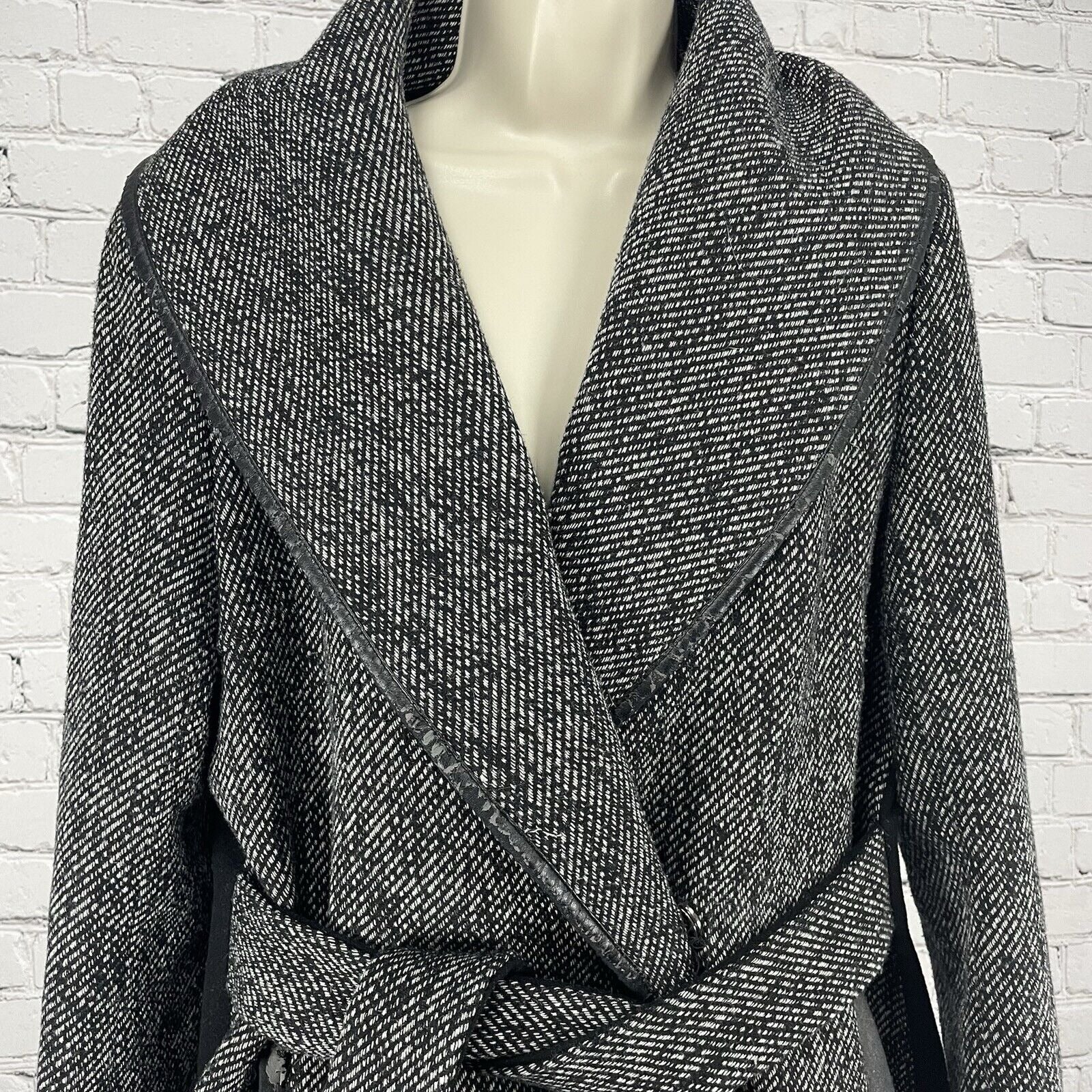 Trina Turk Black Wool Blend Weave Belted Snap Button Wrap Coat Size XL