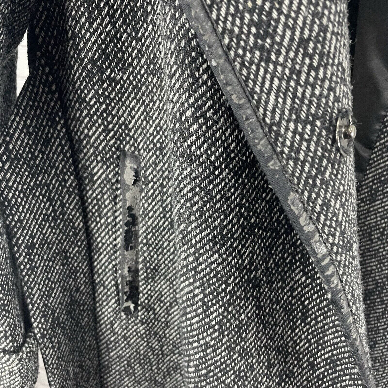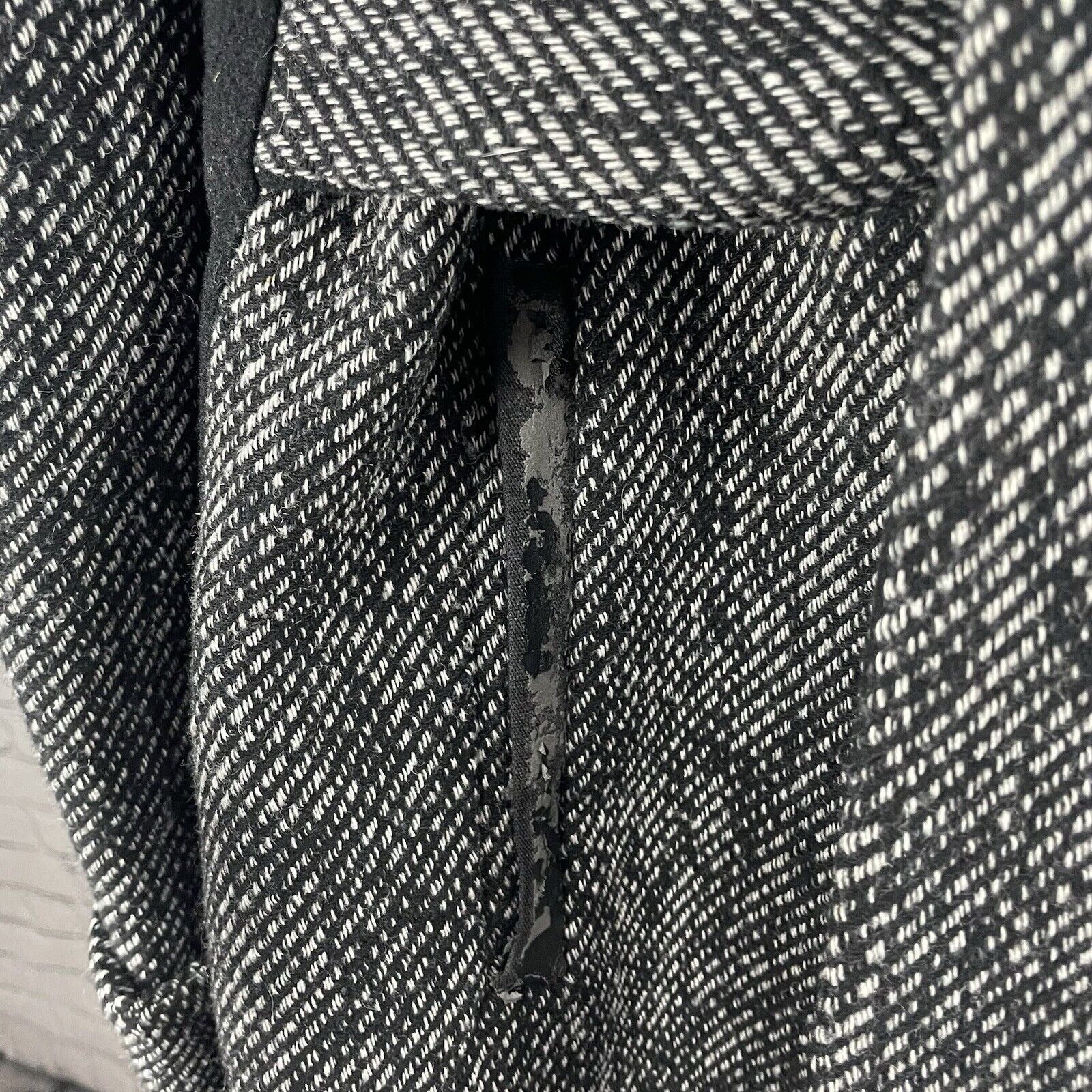 Stain under lapel and peeling trim throughout, as pictured. Size tag has been removed. Please see actual measurements below.