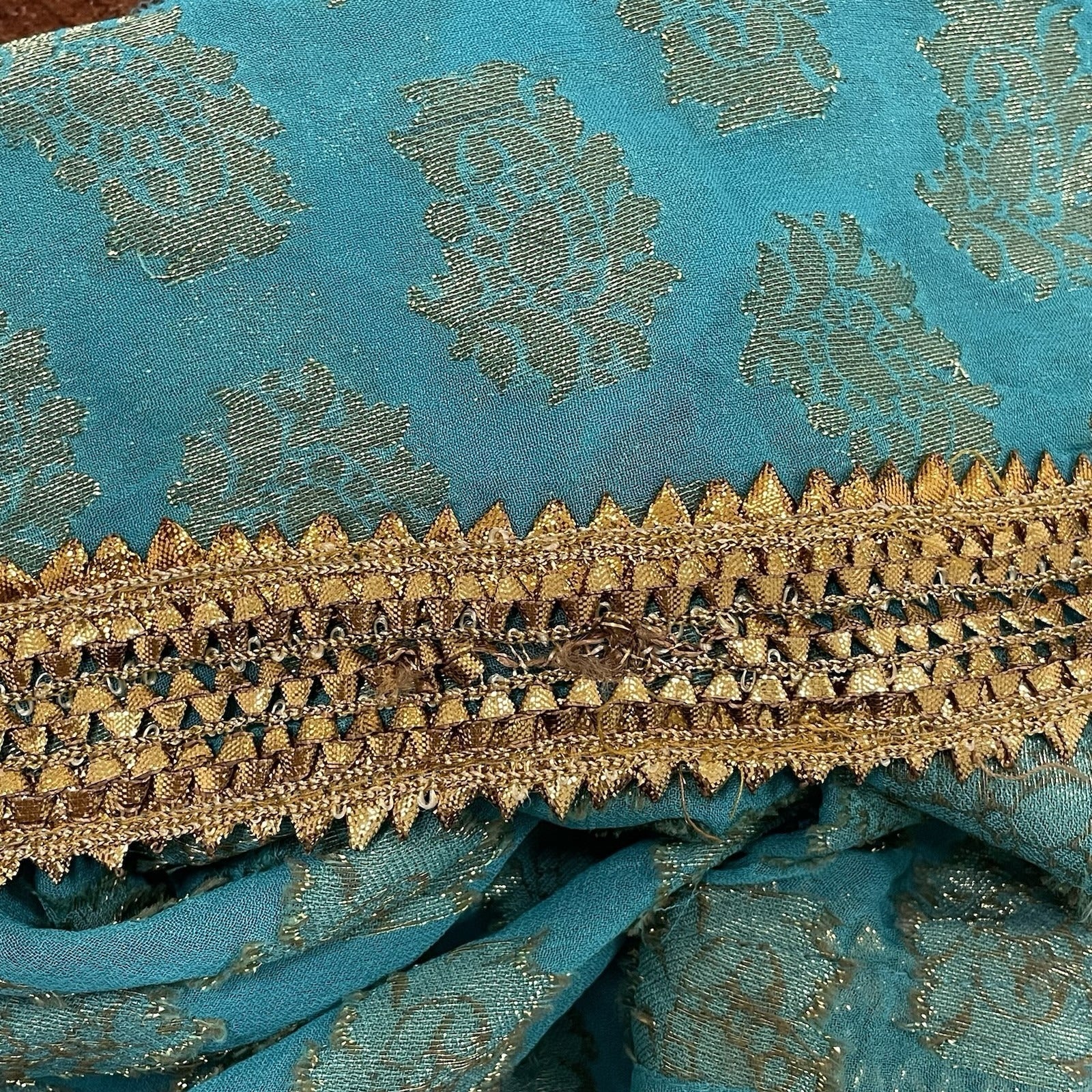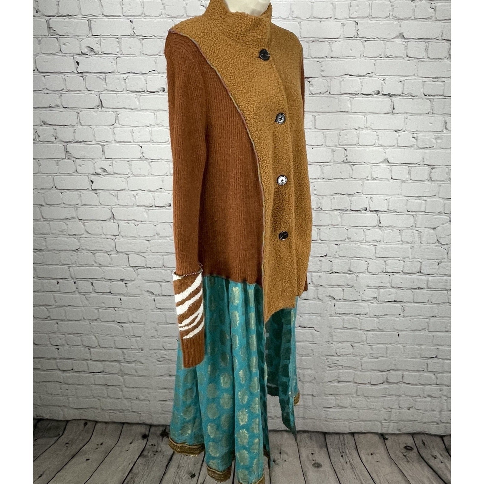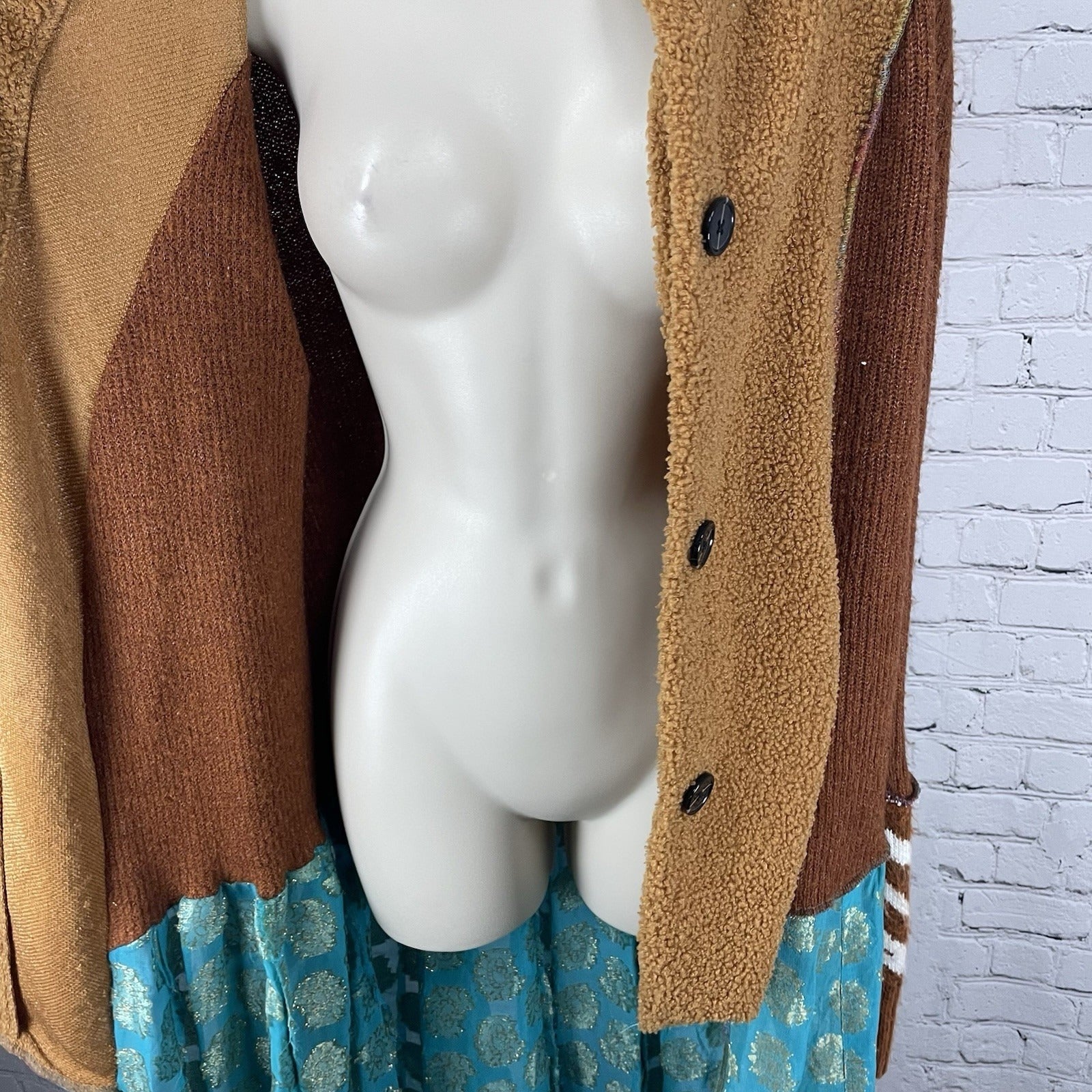 Upcycle By Jelbel Brown Blue Gold Trim Button Up Cardigan Duster Size Small S